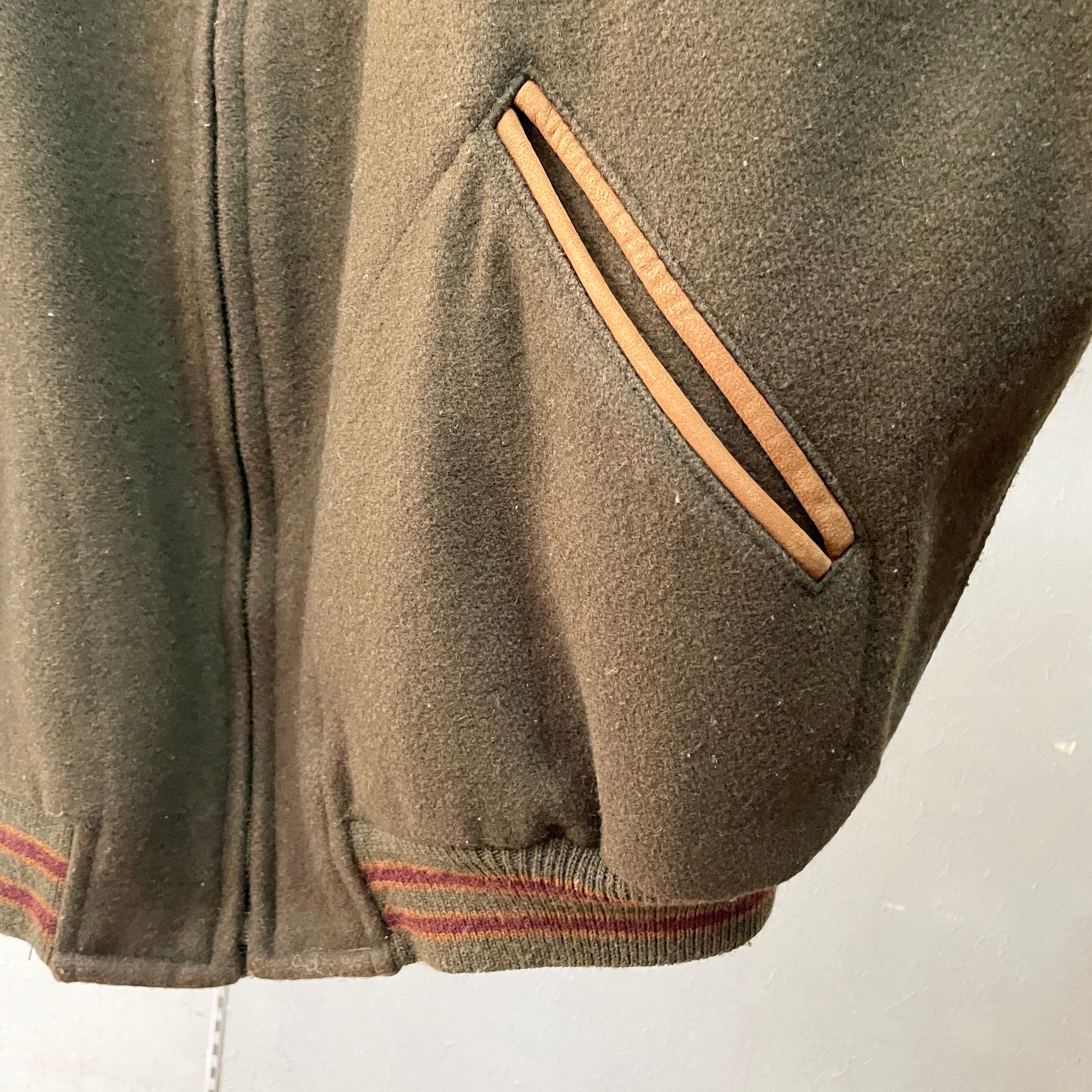 90s ラウンドツリー&ヨーク 襟付きスタジャン オリーブ×ブラウン ボンバージャケット USA製 XL