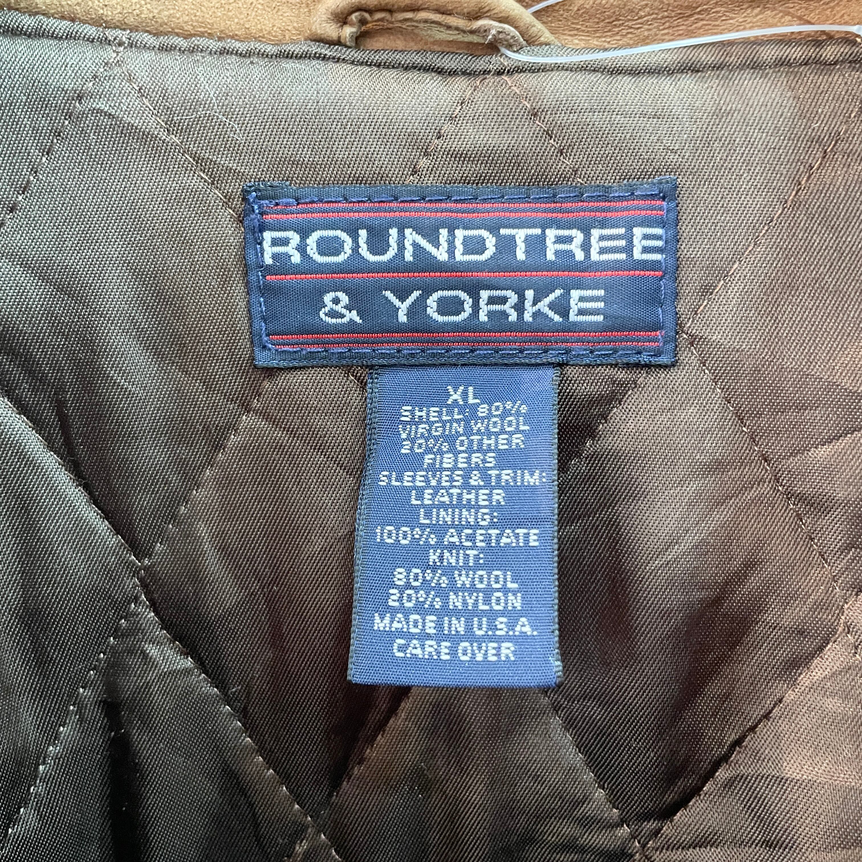 90s ラウンドツリー&ヨーク 襟付きスタジャン ボンバージャケット オリーブ×ブラウン USA製 XL