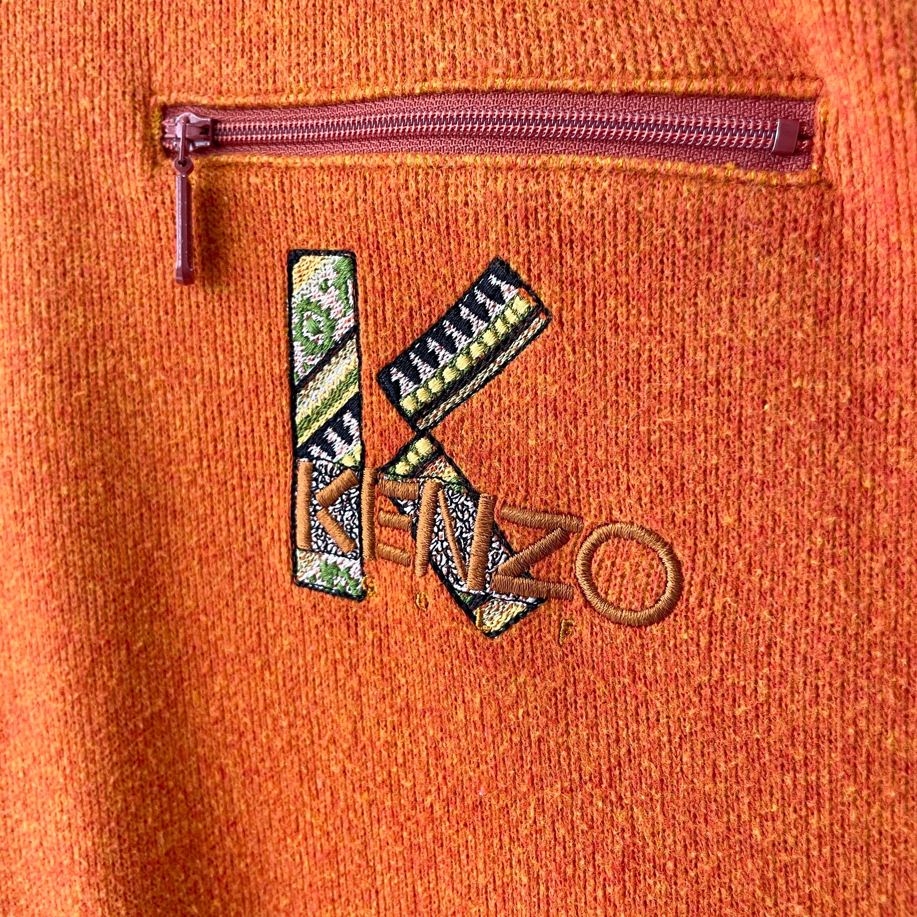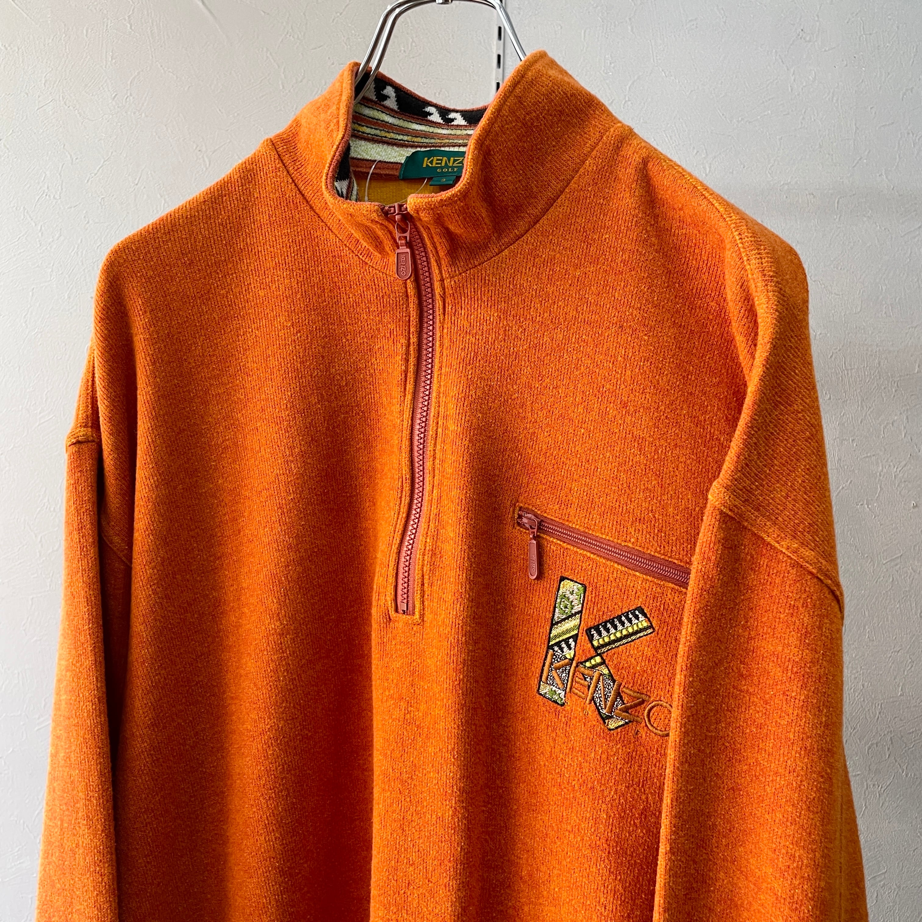 90s ケンゾー ハーフジップスエット コットン×アクリル オレンジ L程度
