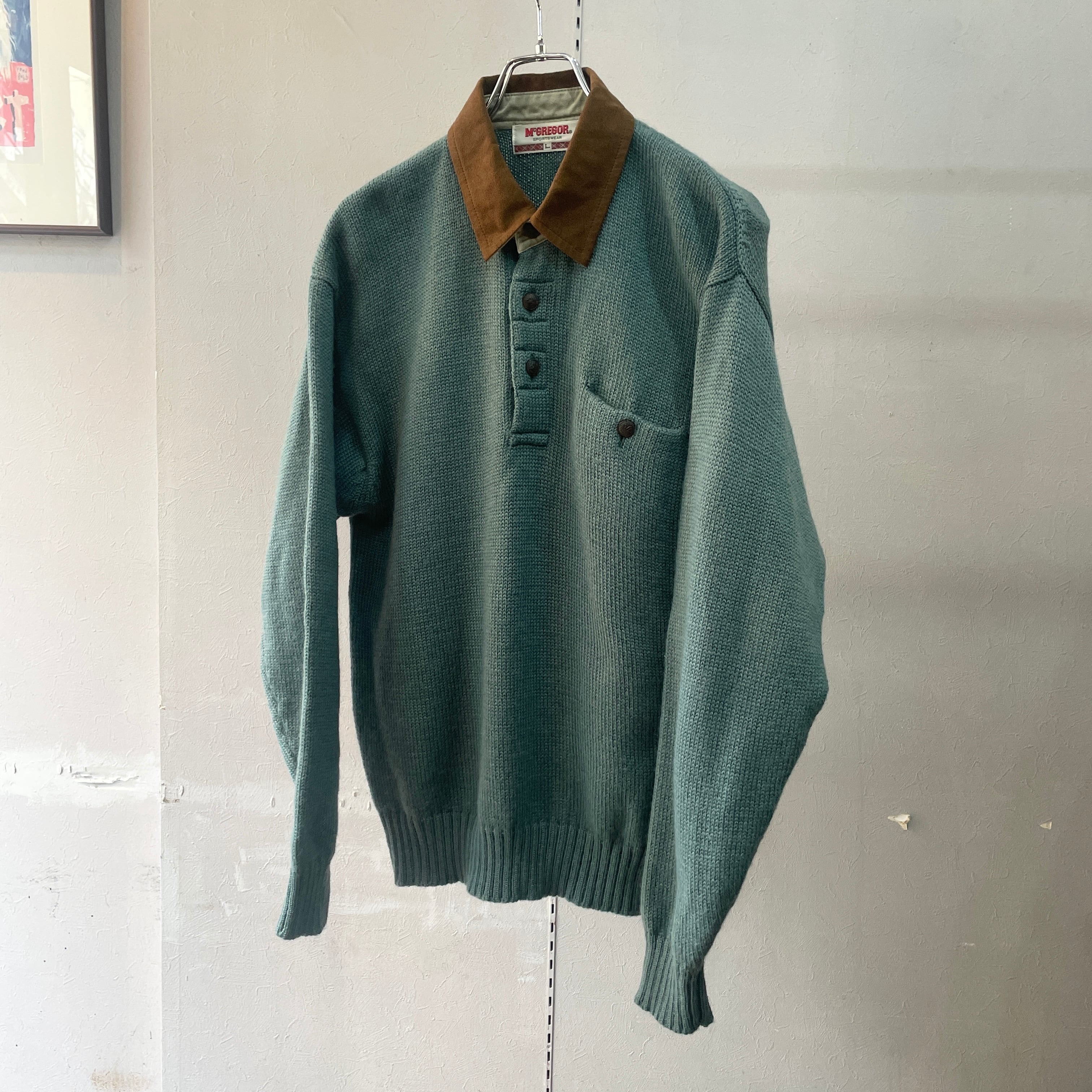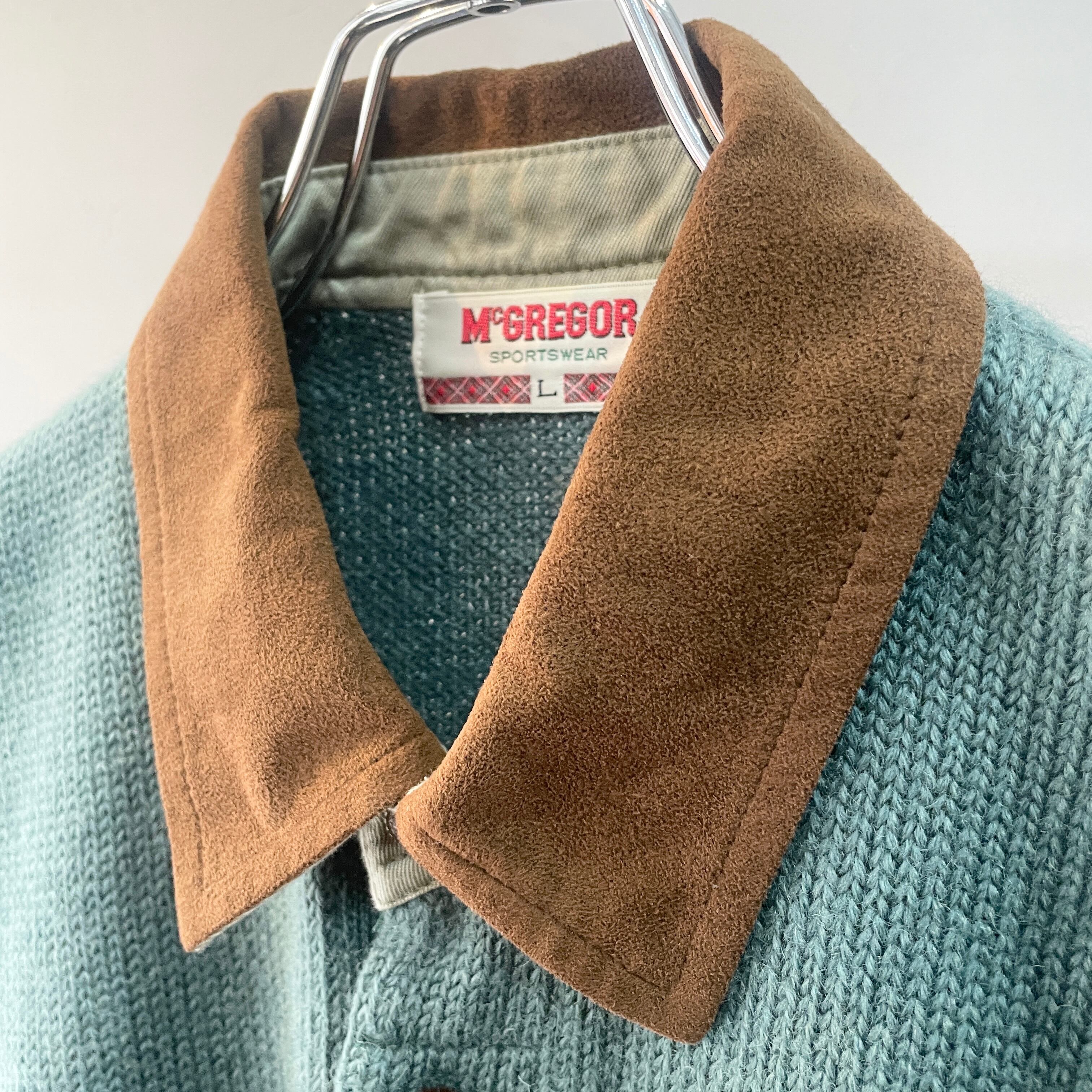 90s マクレガー ニットポロシャツ 襟スエード グリーン L