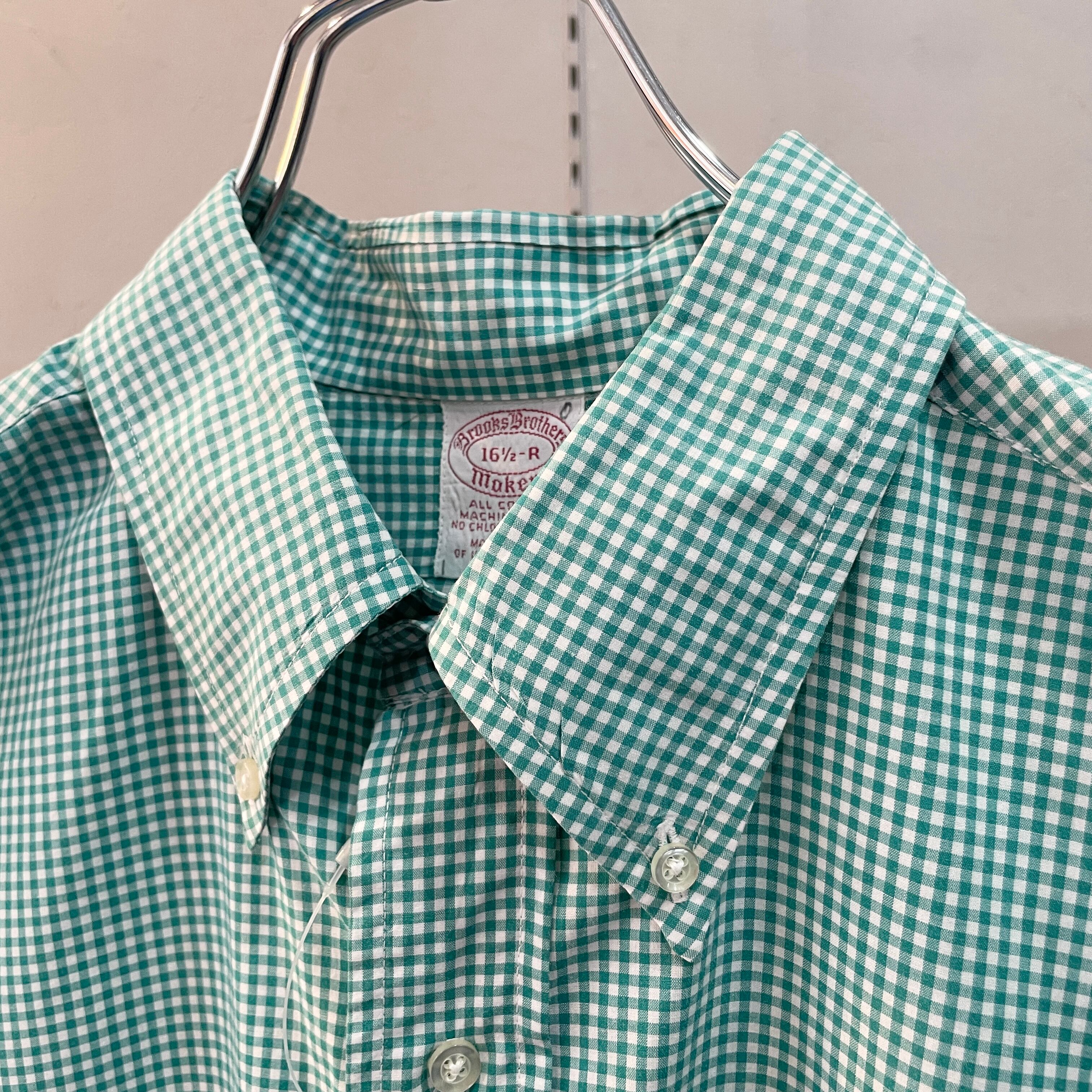80s ブルックスブラザーズ ギンガムチェックB.Dシャツ グリーン×ホワイト USA製 16ハーフ