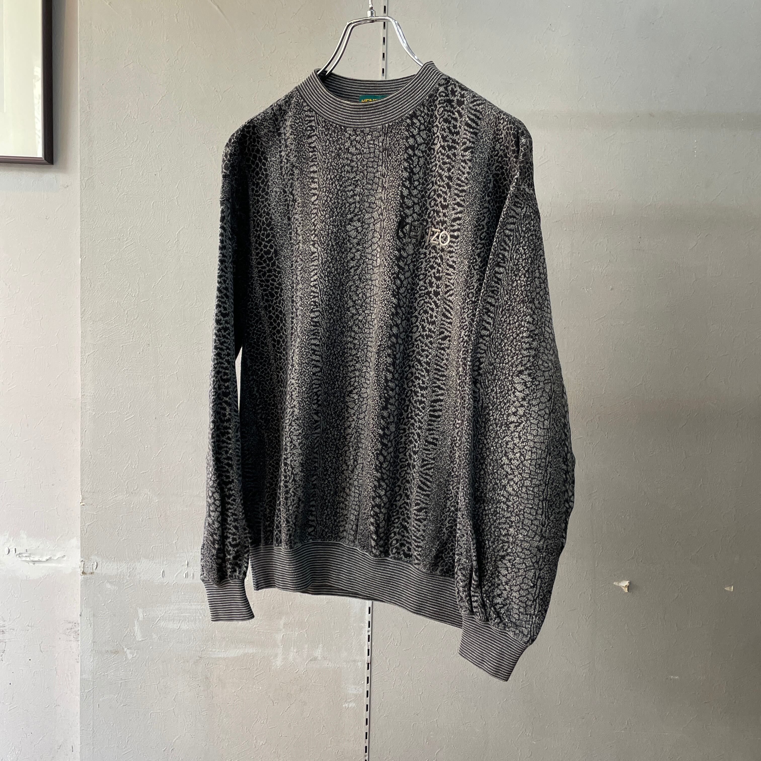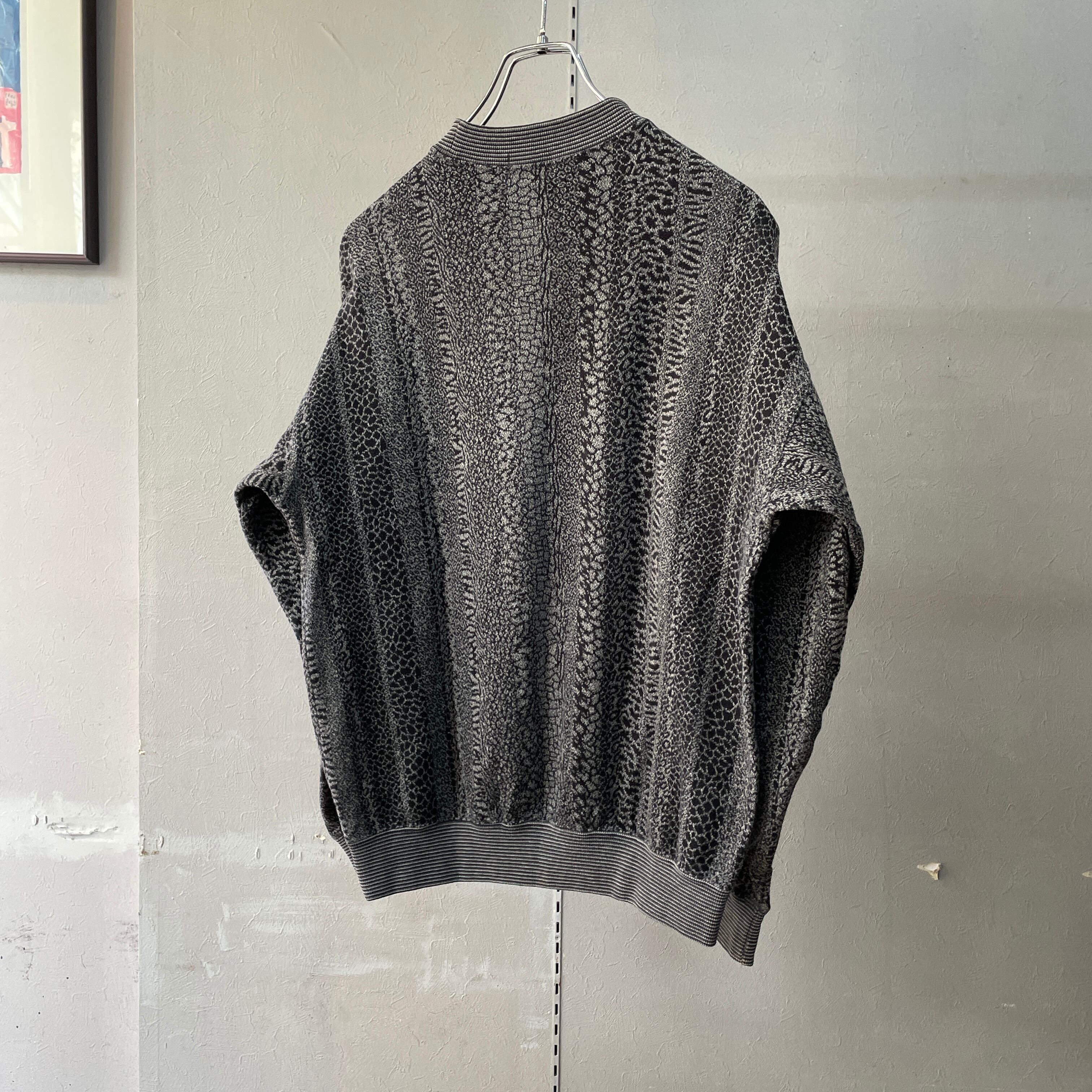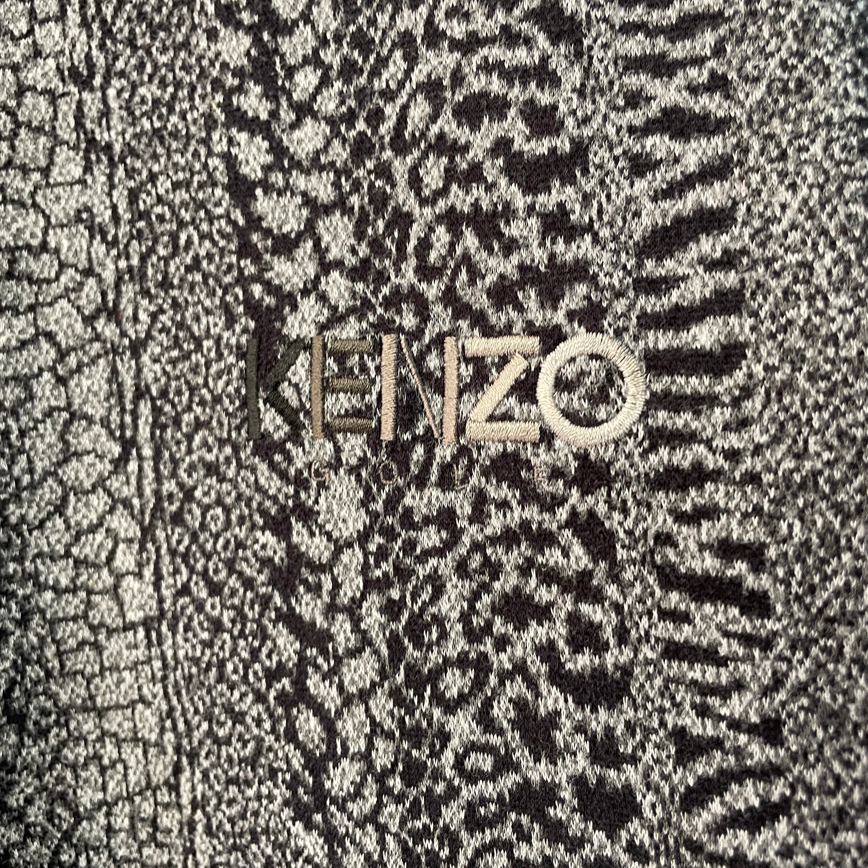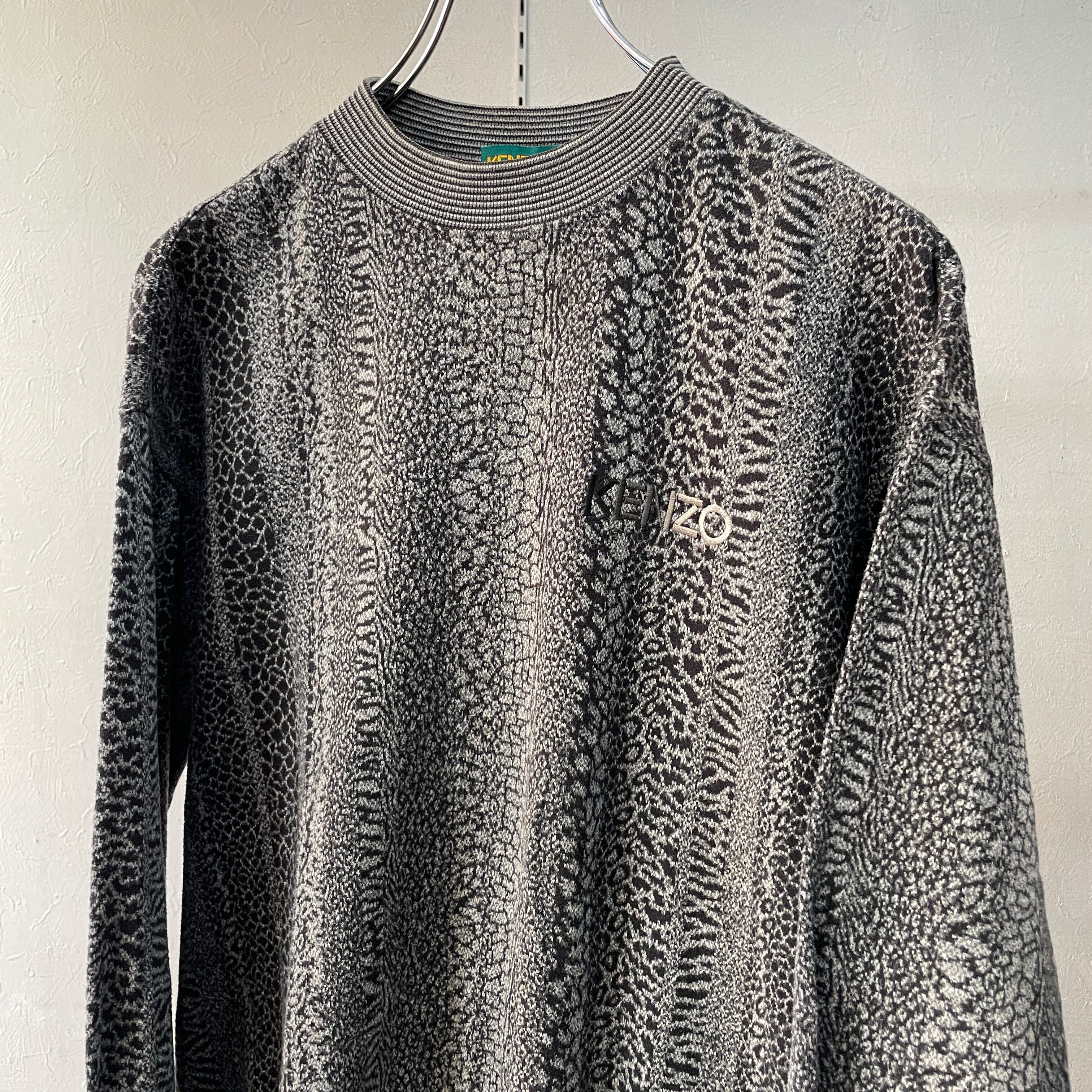 90s ケンゾー アニマルパターンニット 刺繍ロゴ グレー×ブラック M程度