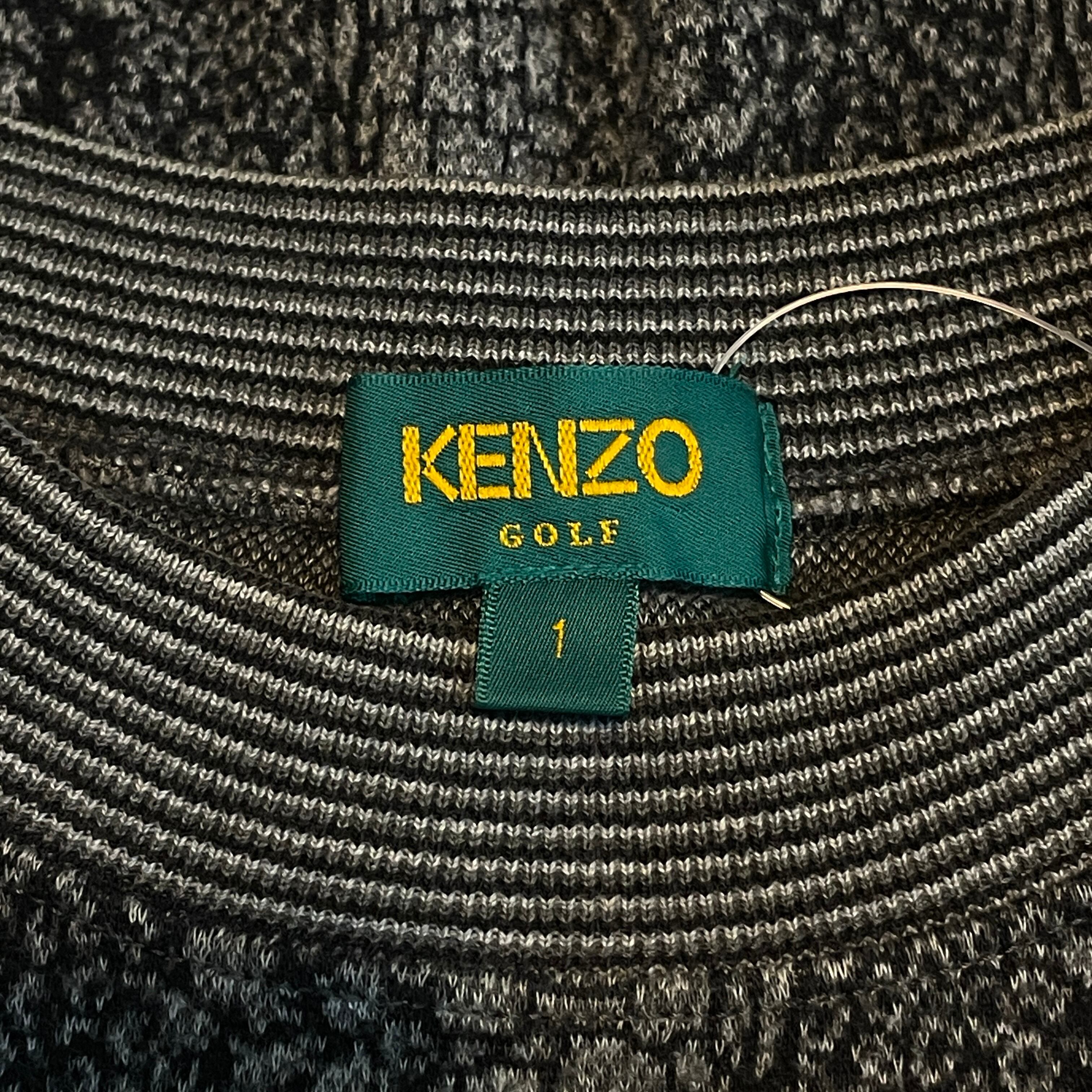90s ケンゾー アニマルパターンニット コットンニット 刺繍ロゴ ブラック×グレー M程度