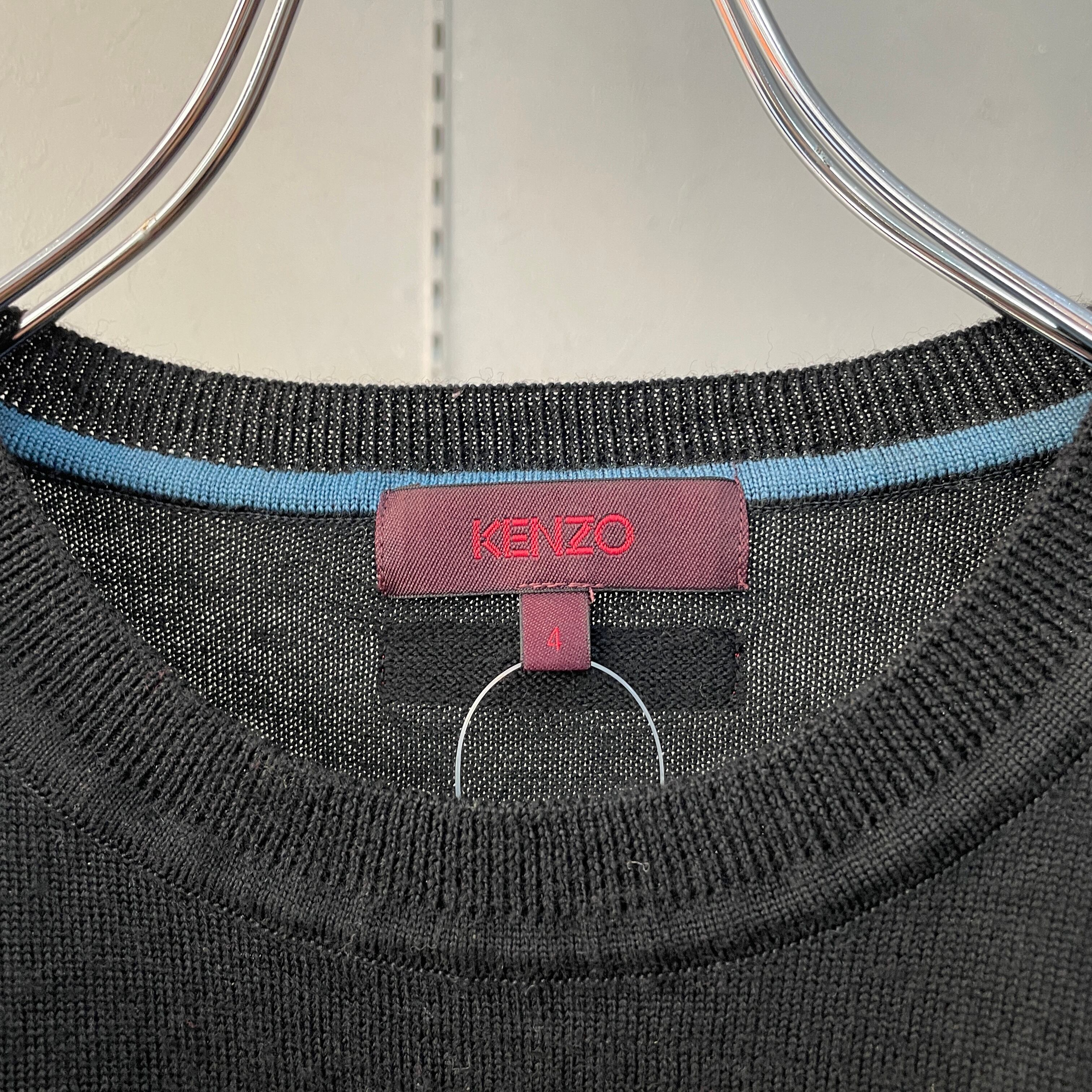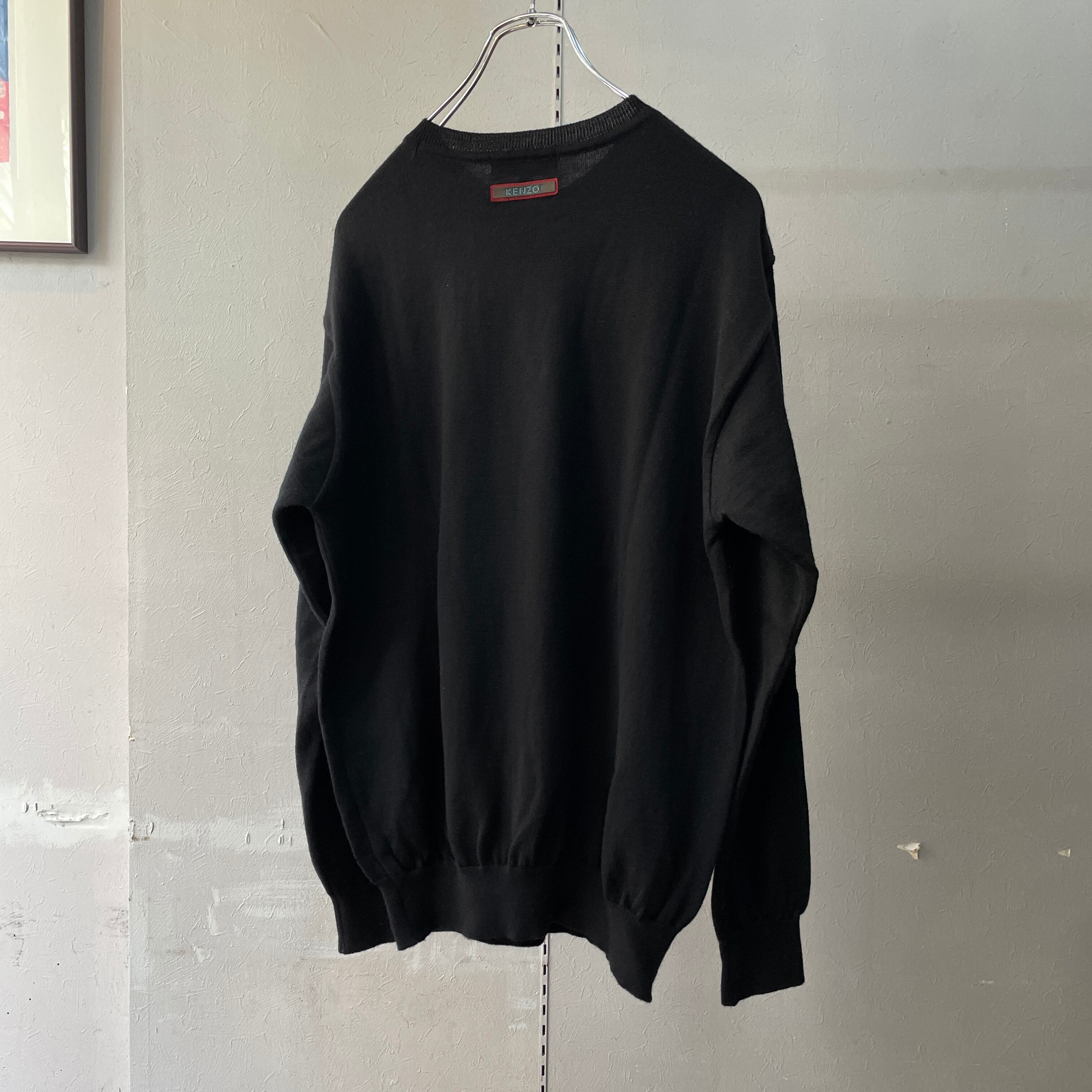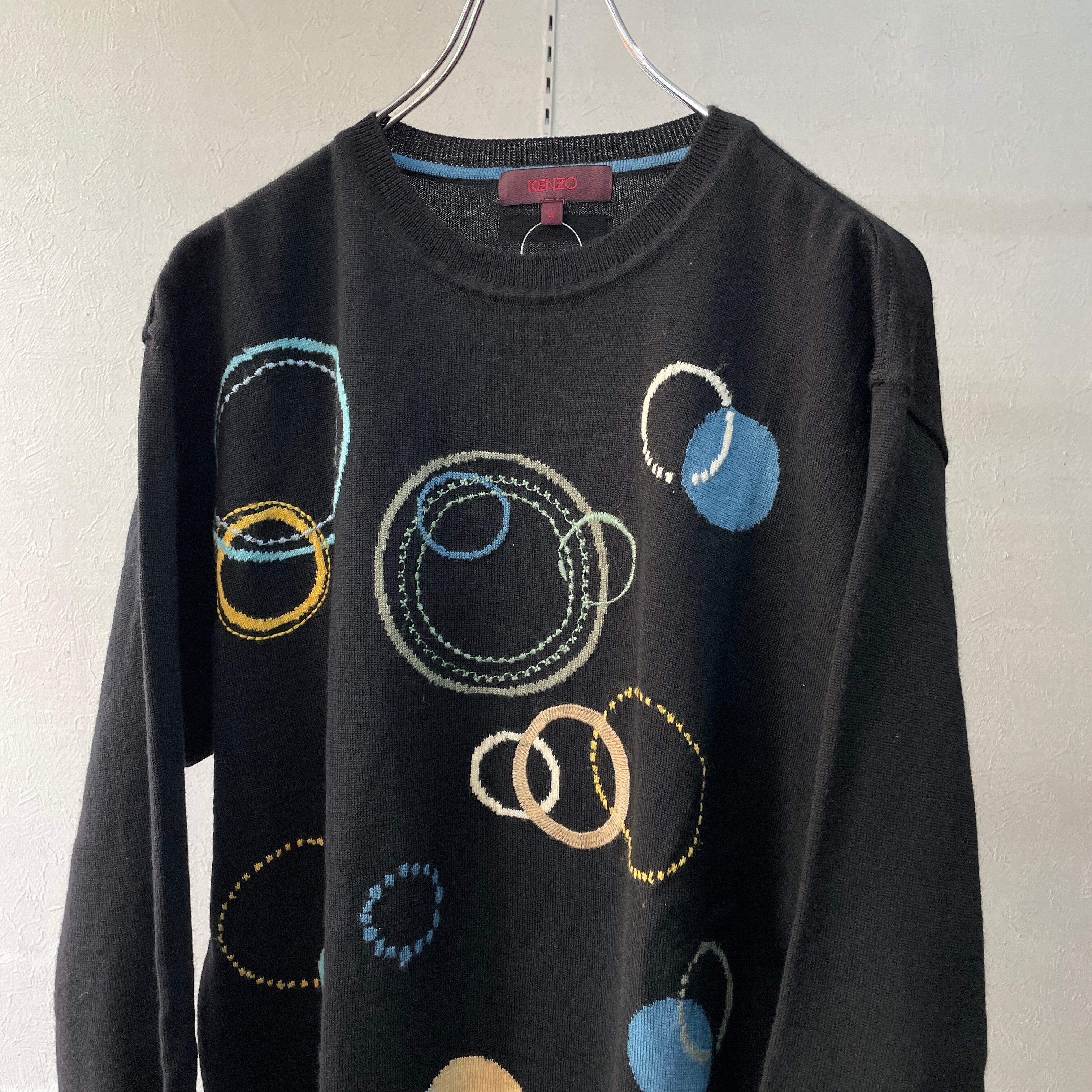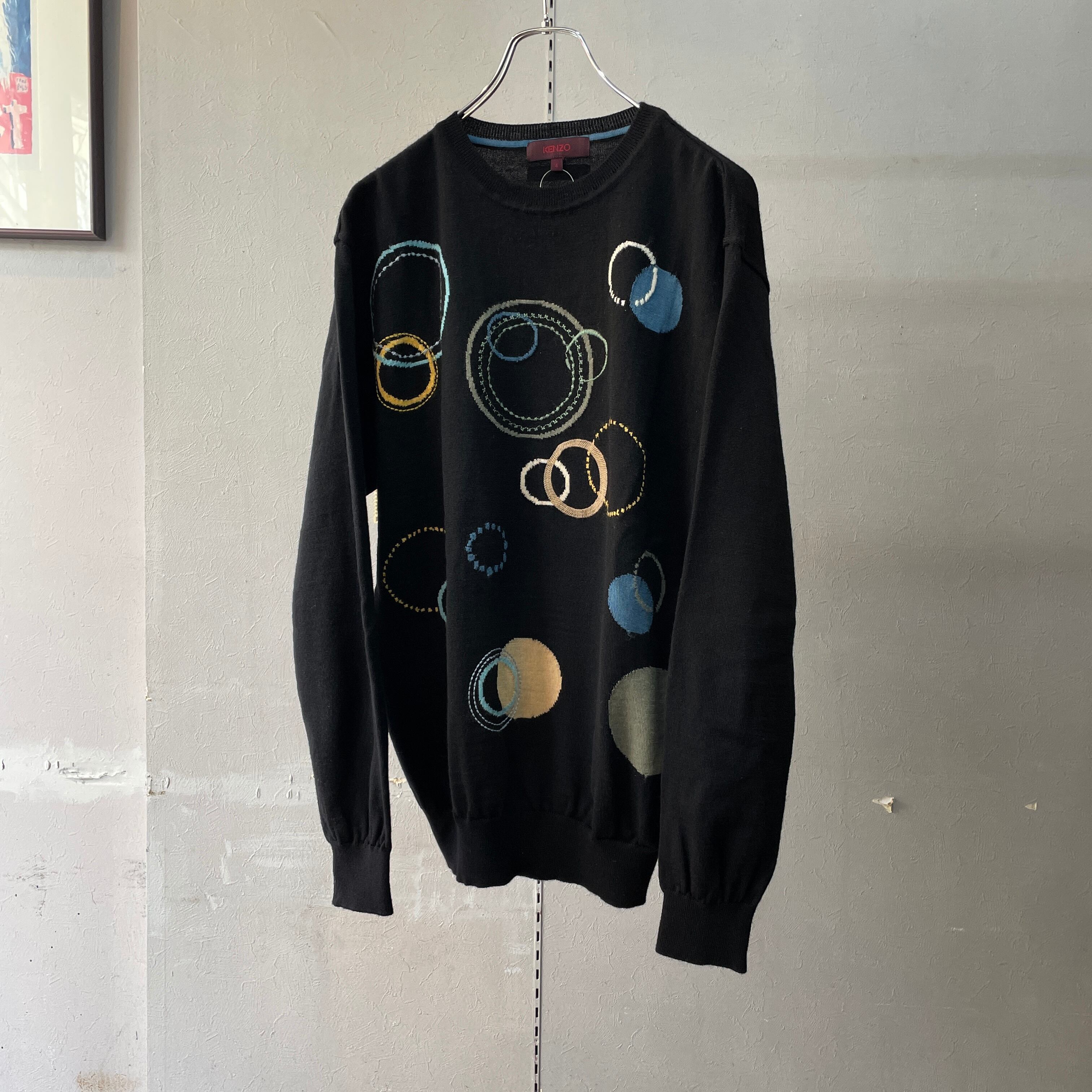 90s ケンゾー マルチドットニット 刺繍ロゴ ブラック L程度