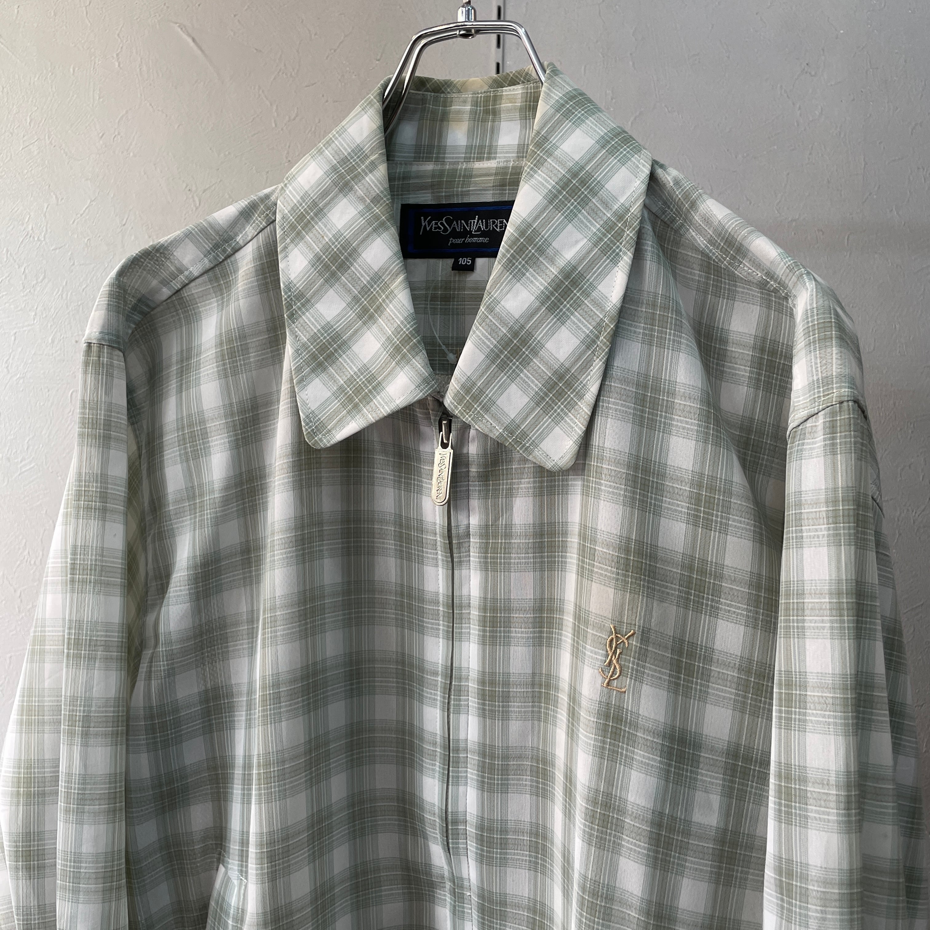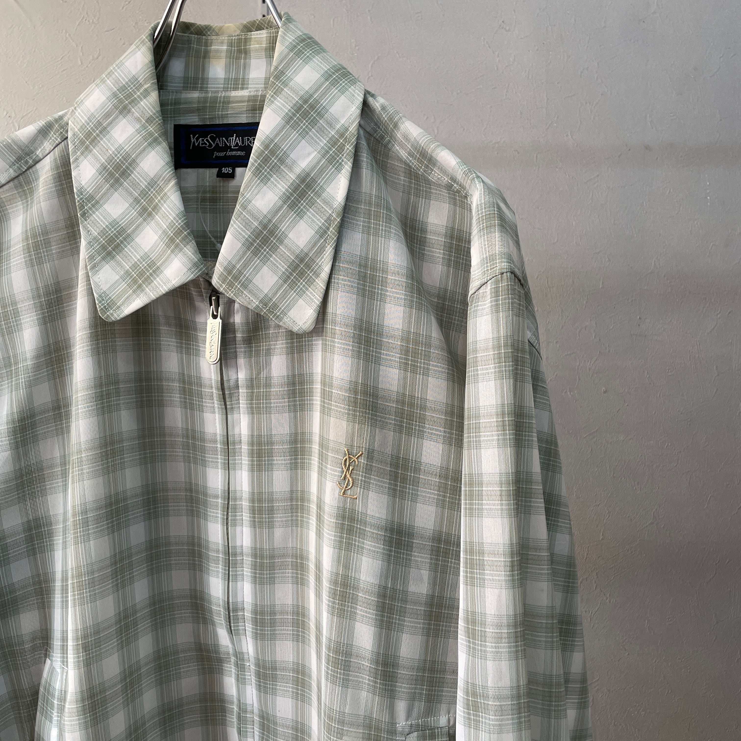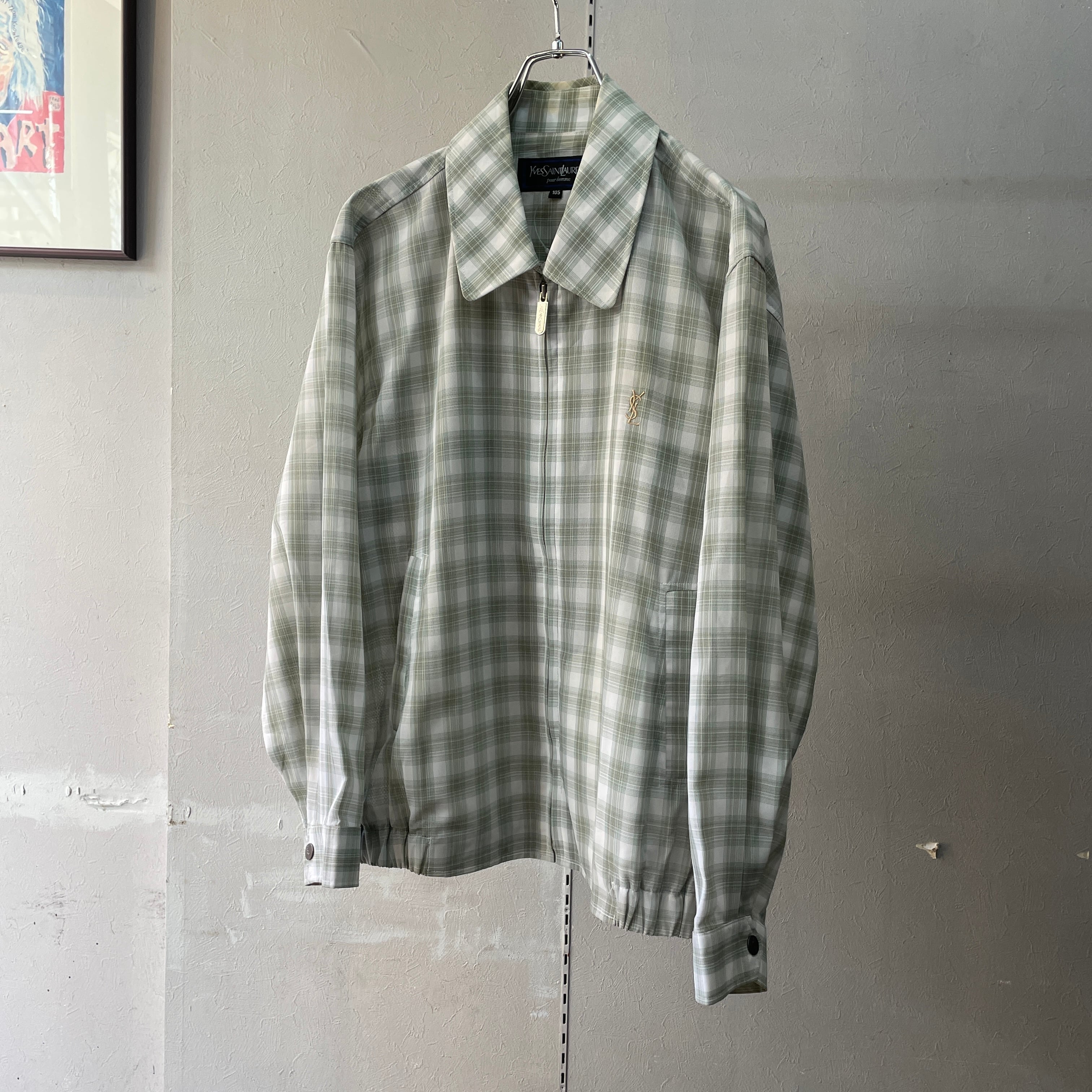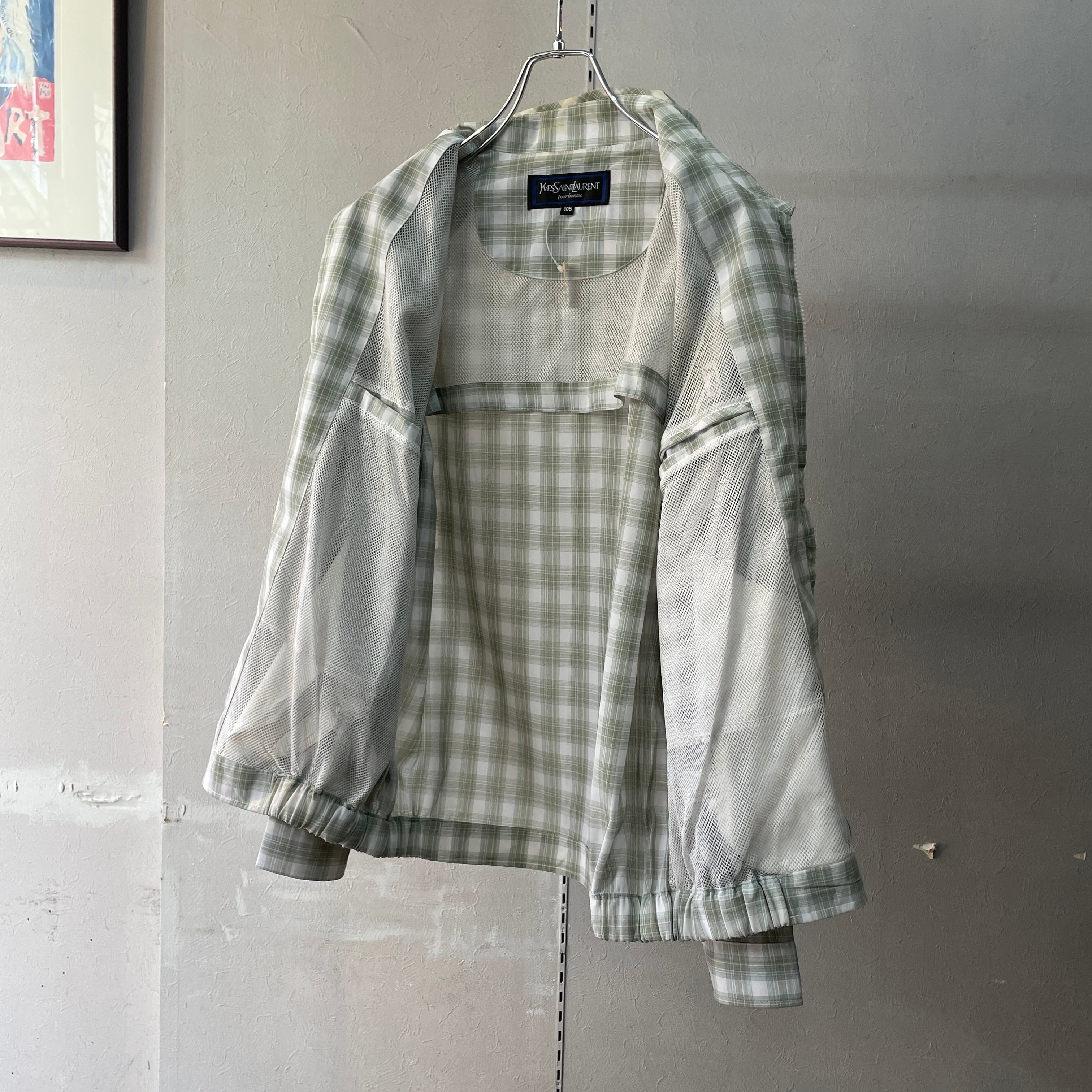 90s イヴサンローラン チェックドリズラージャケット グリーンオンブレ L