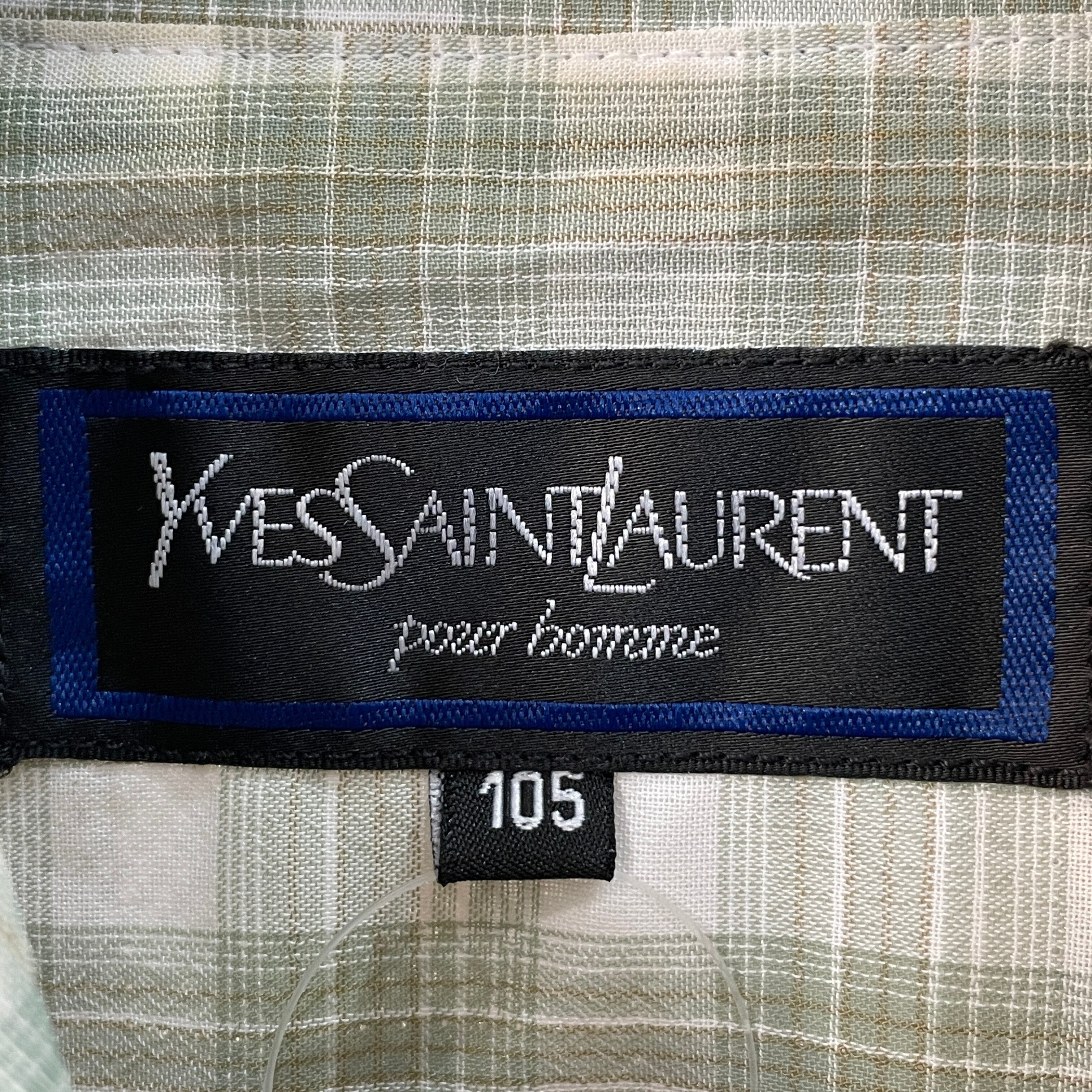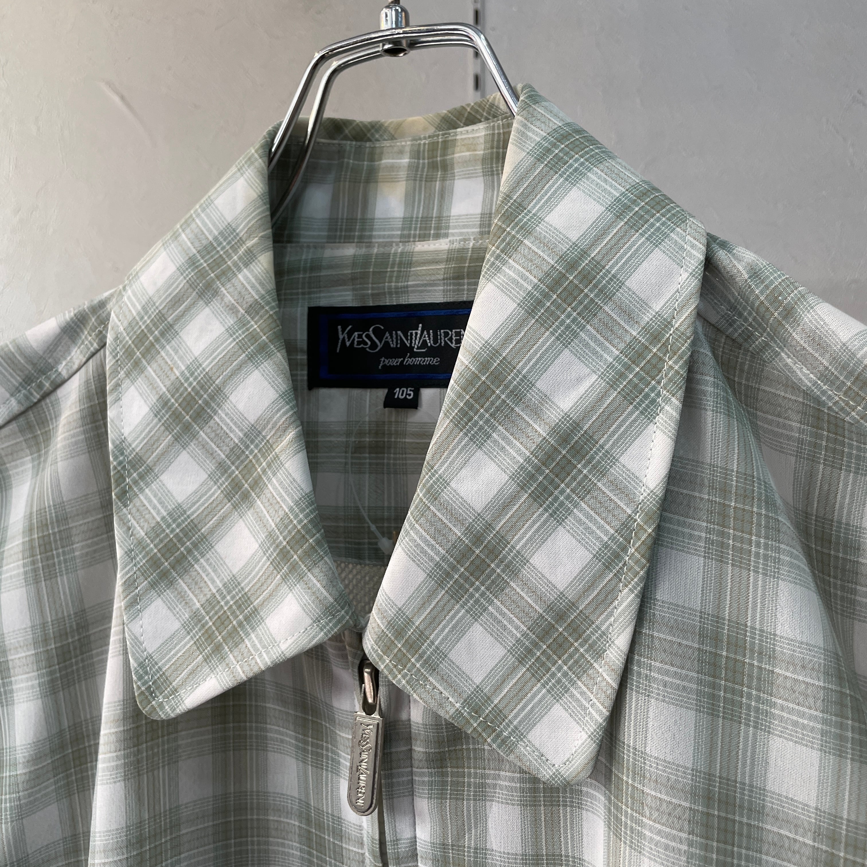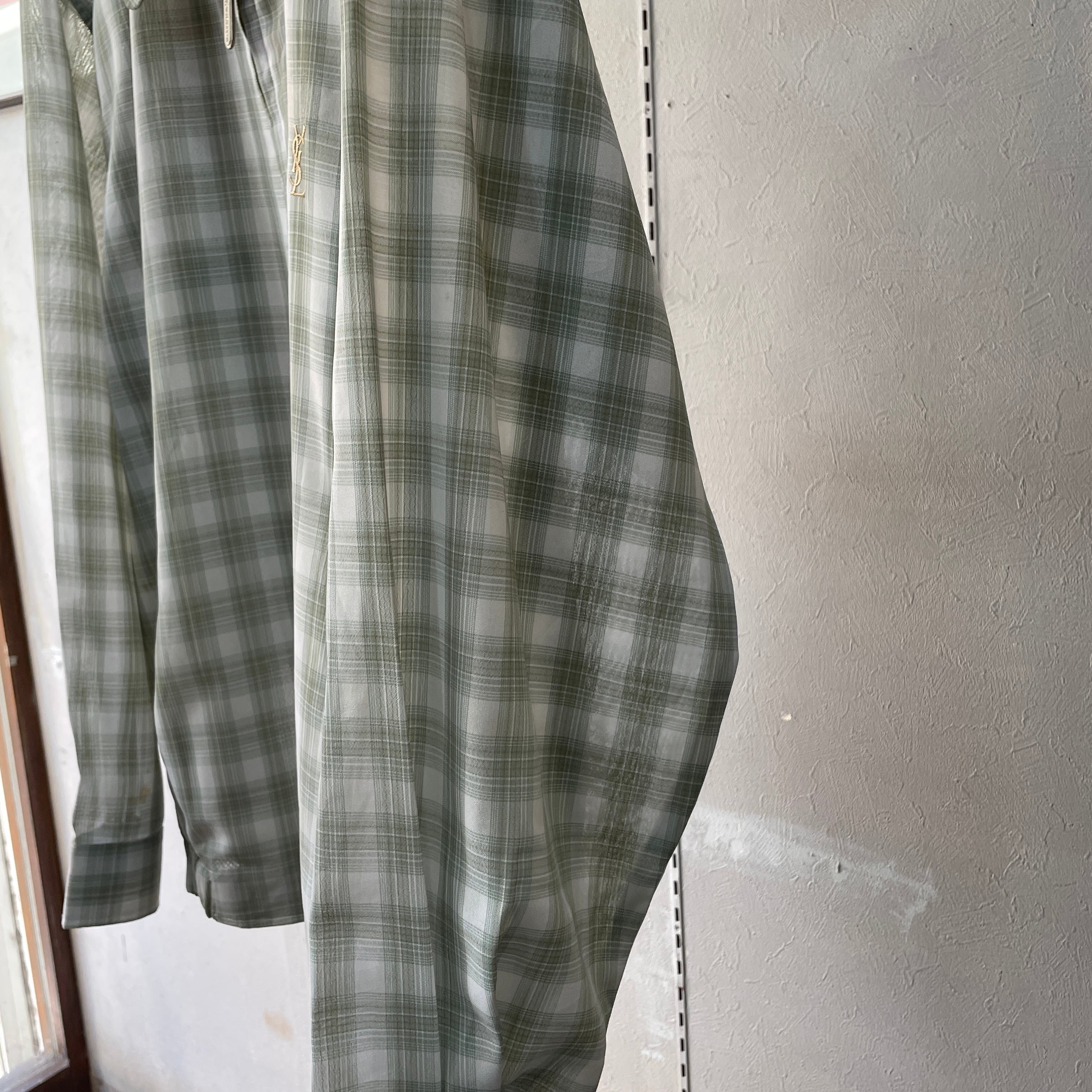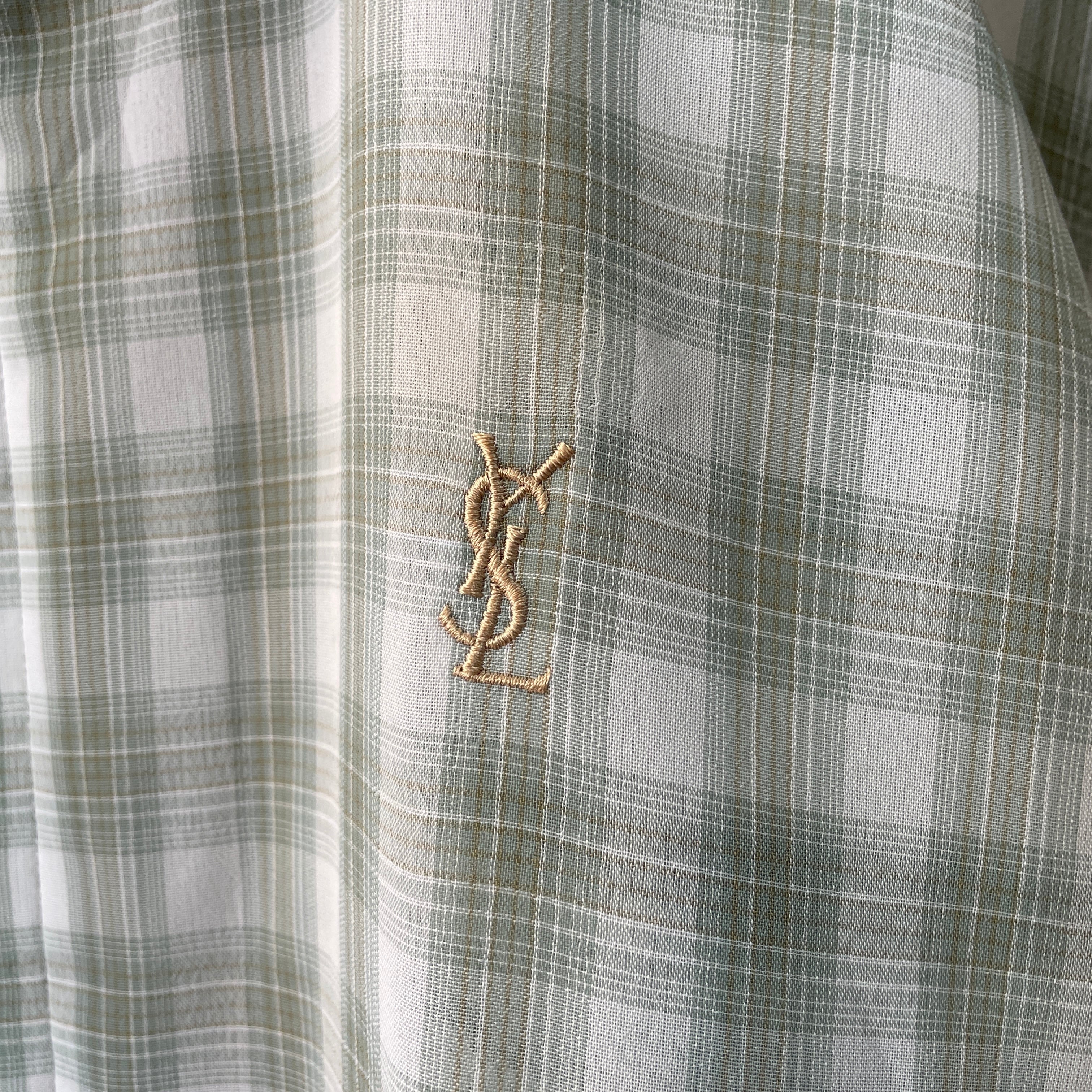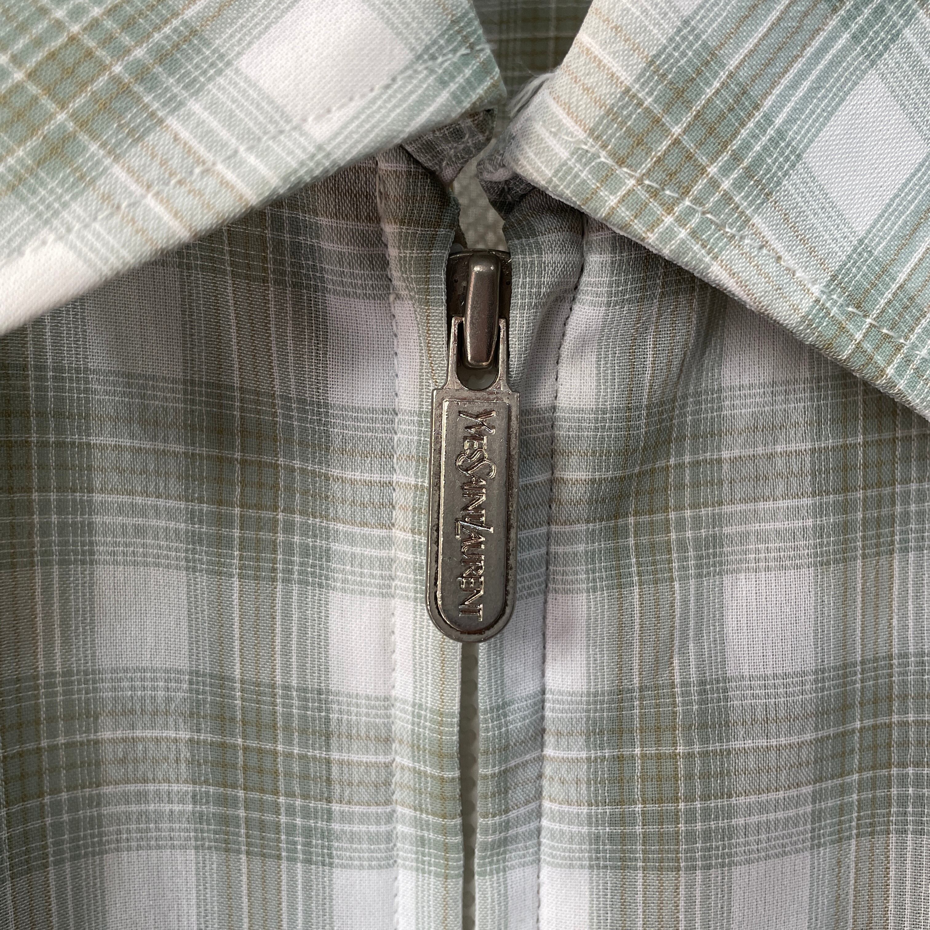 90s イヴサンローラン チェックドリズラージャケット グリーンオンブレ L