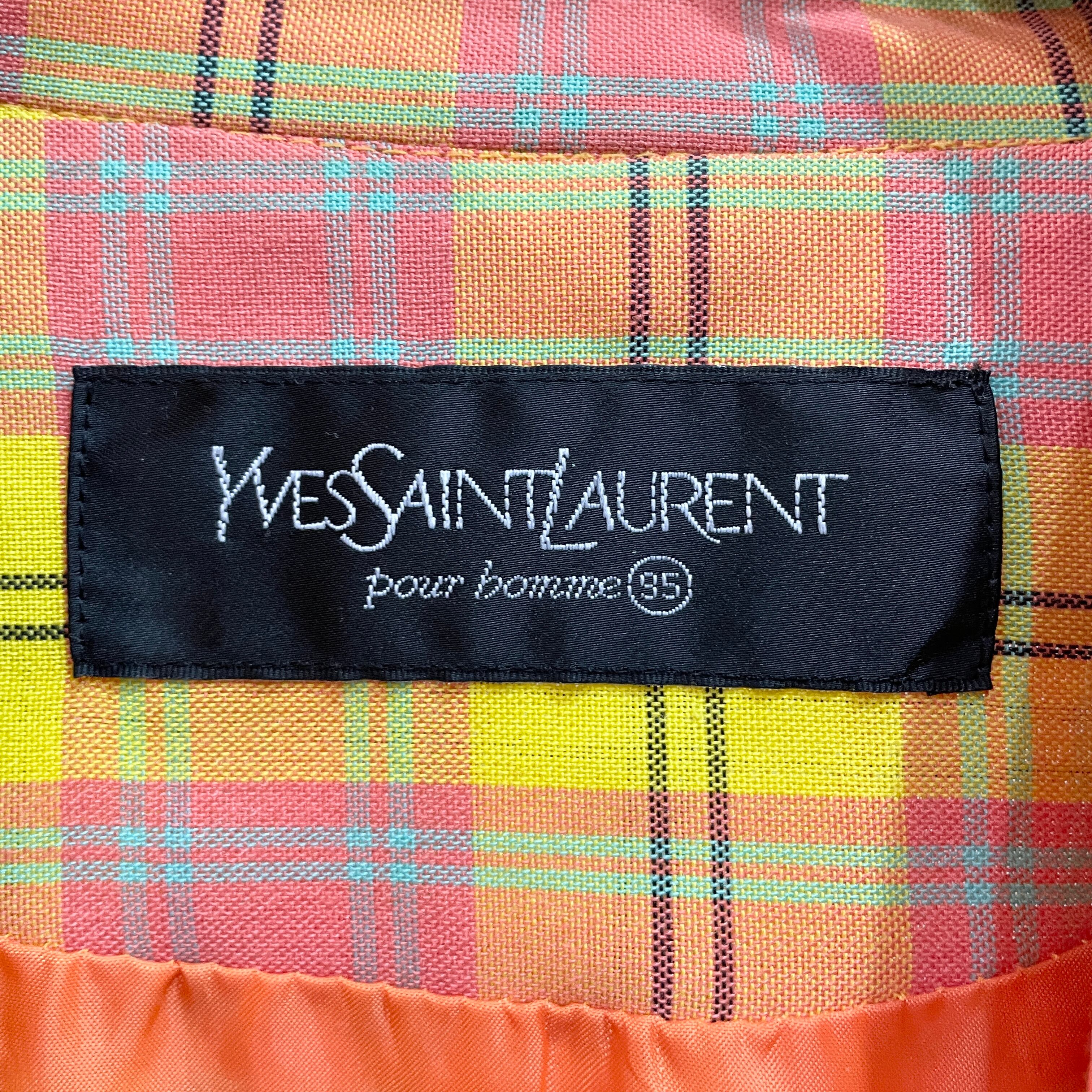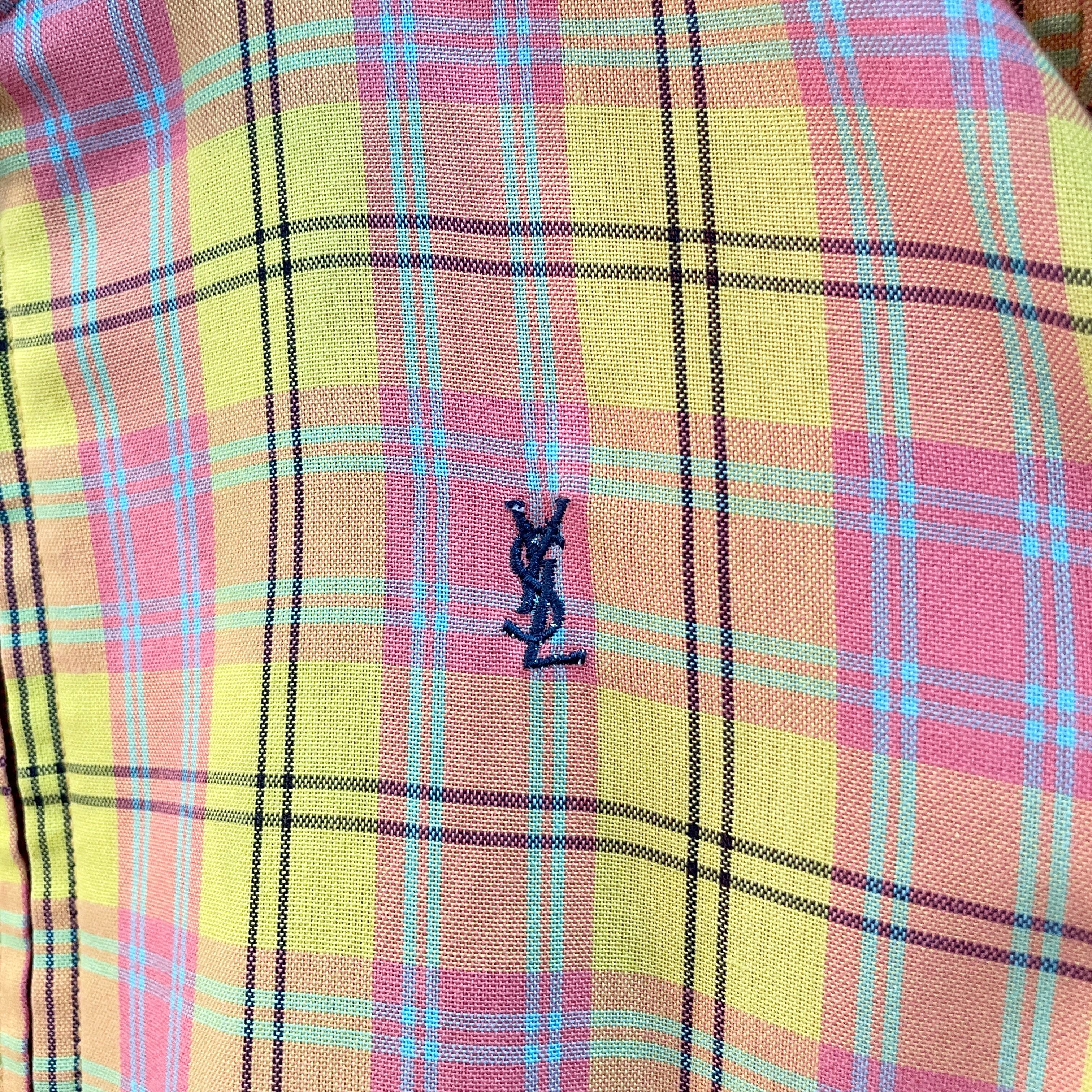 90s イヴサンローラン チェックトラックジャケット イエロー×ピンク L程度