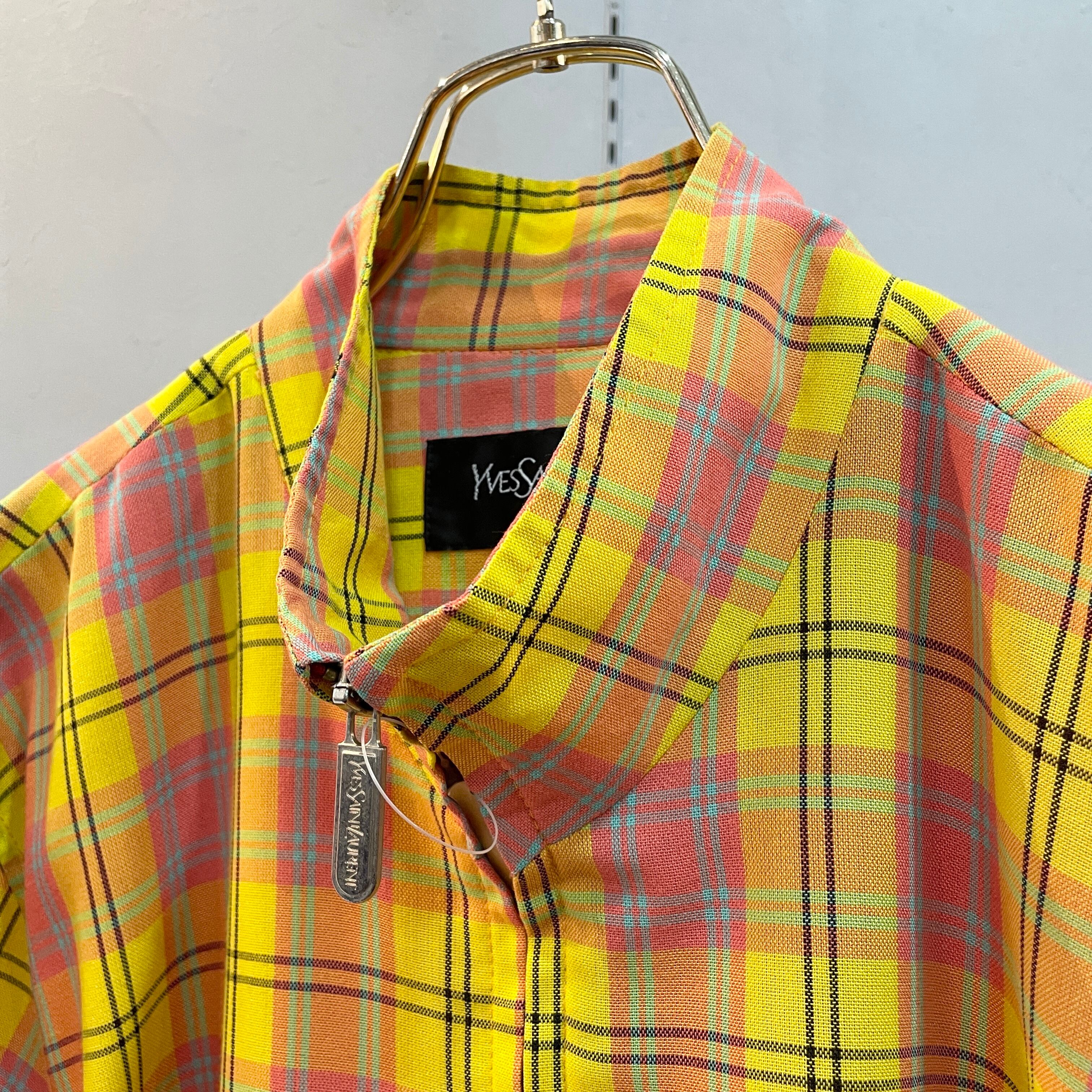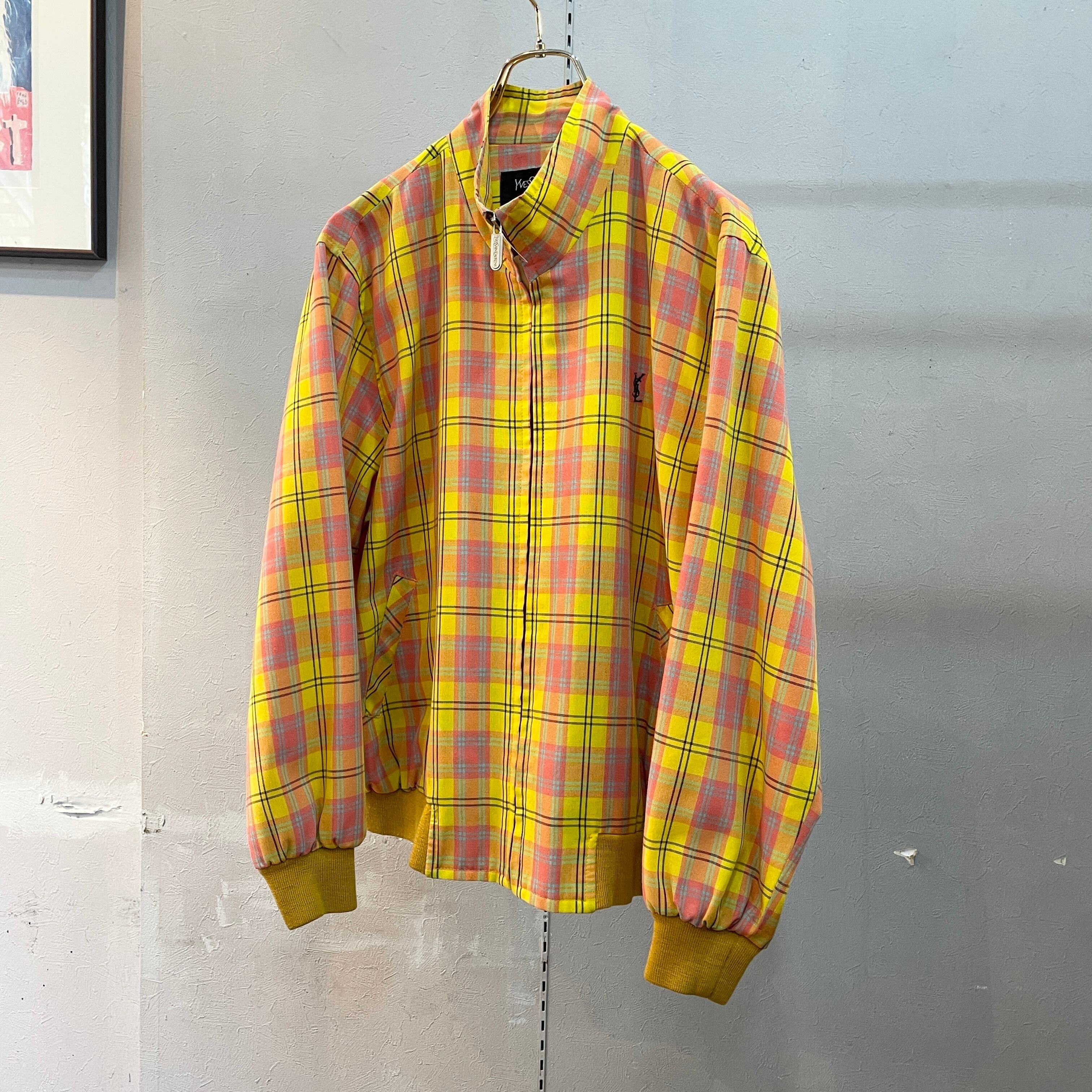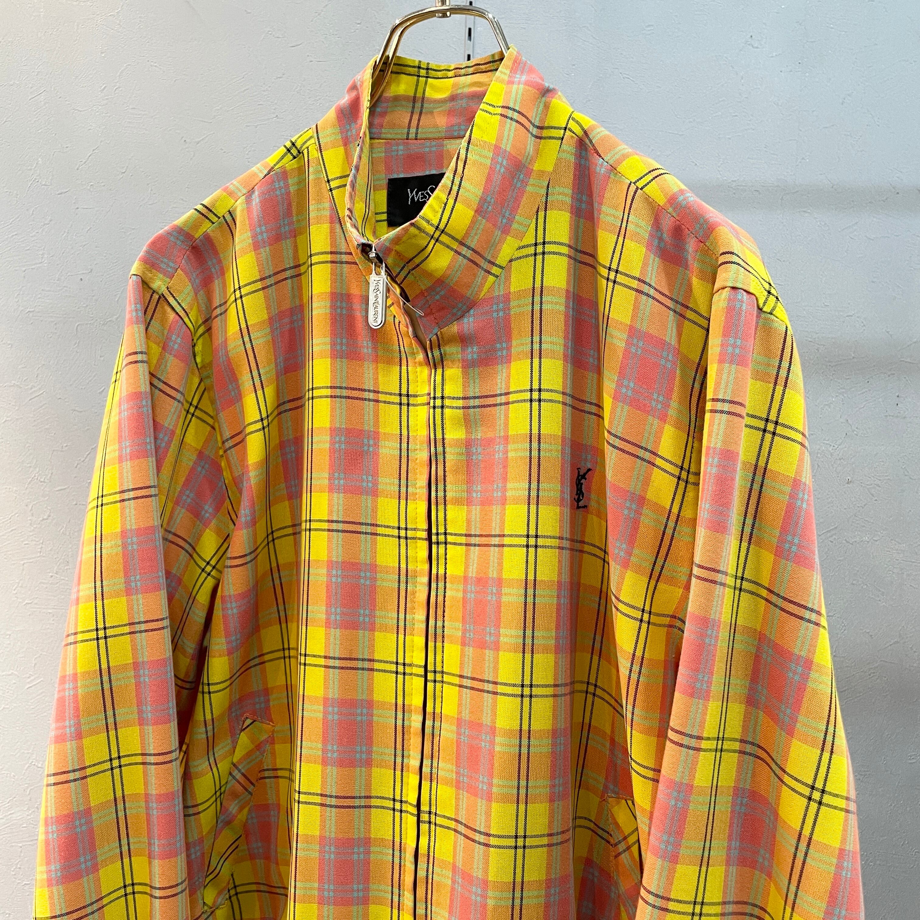 90s イヴサンローラン チェックトラックジャケット イエロー×ピンク L