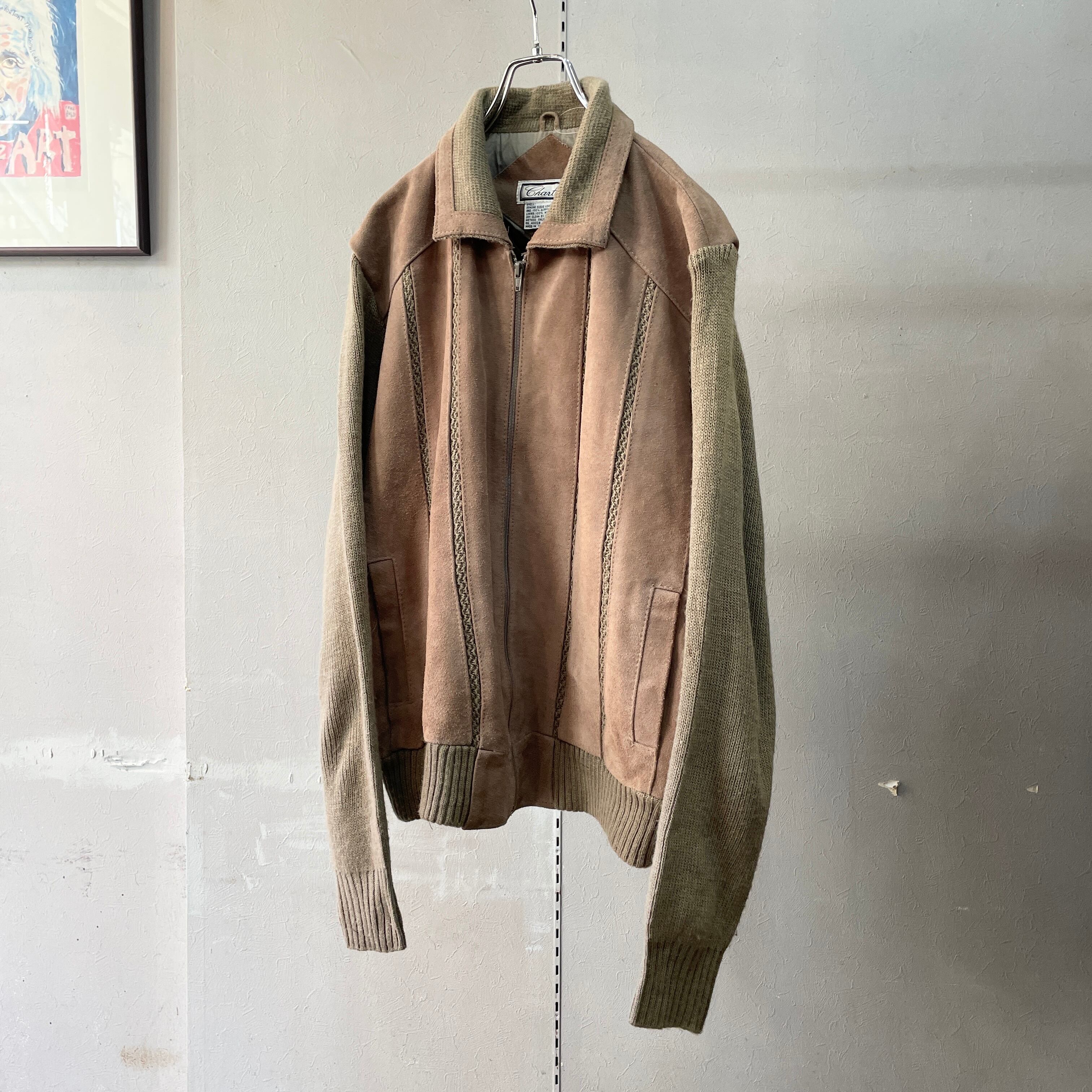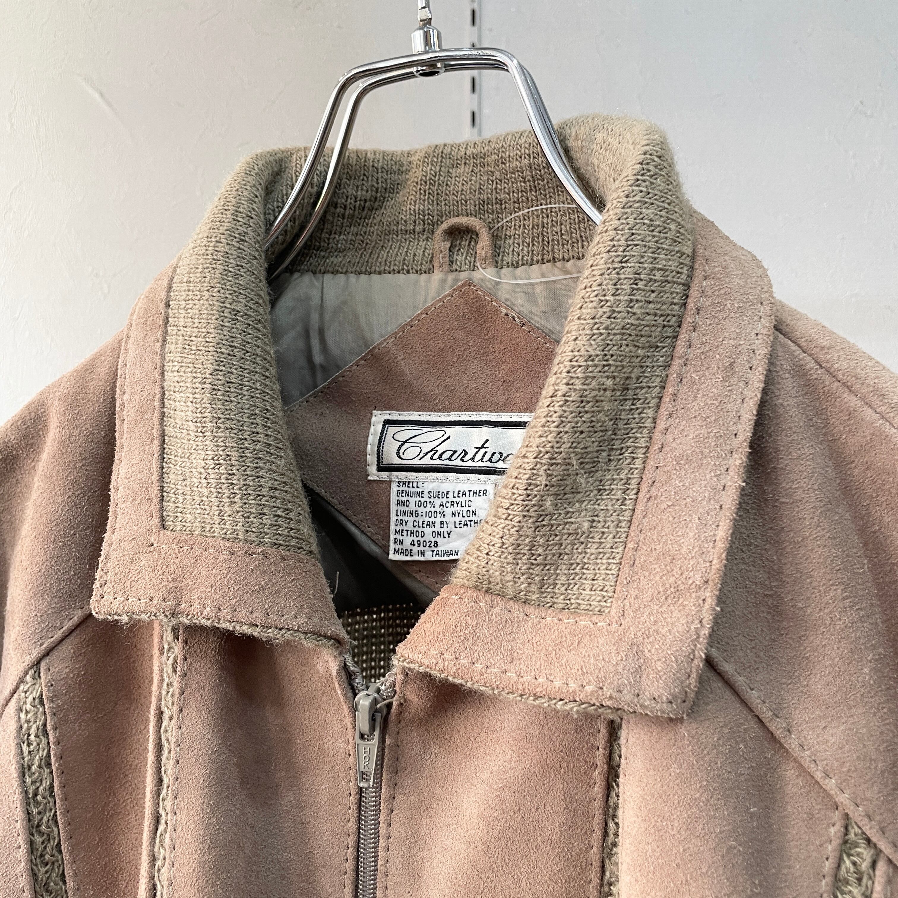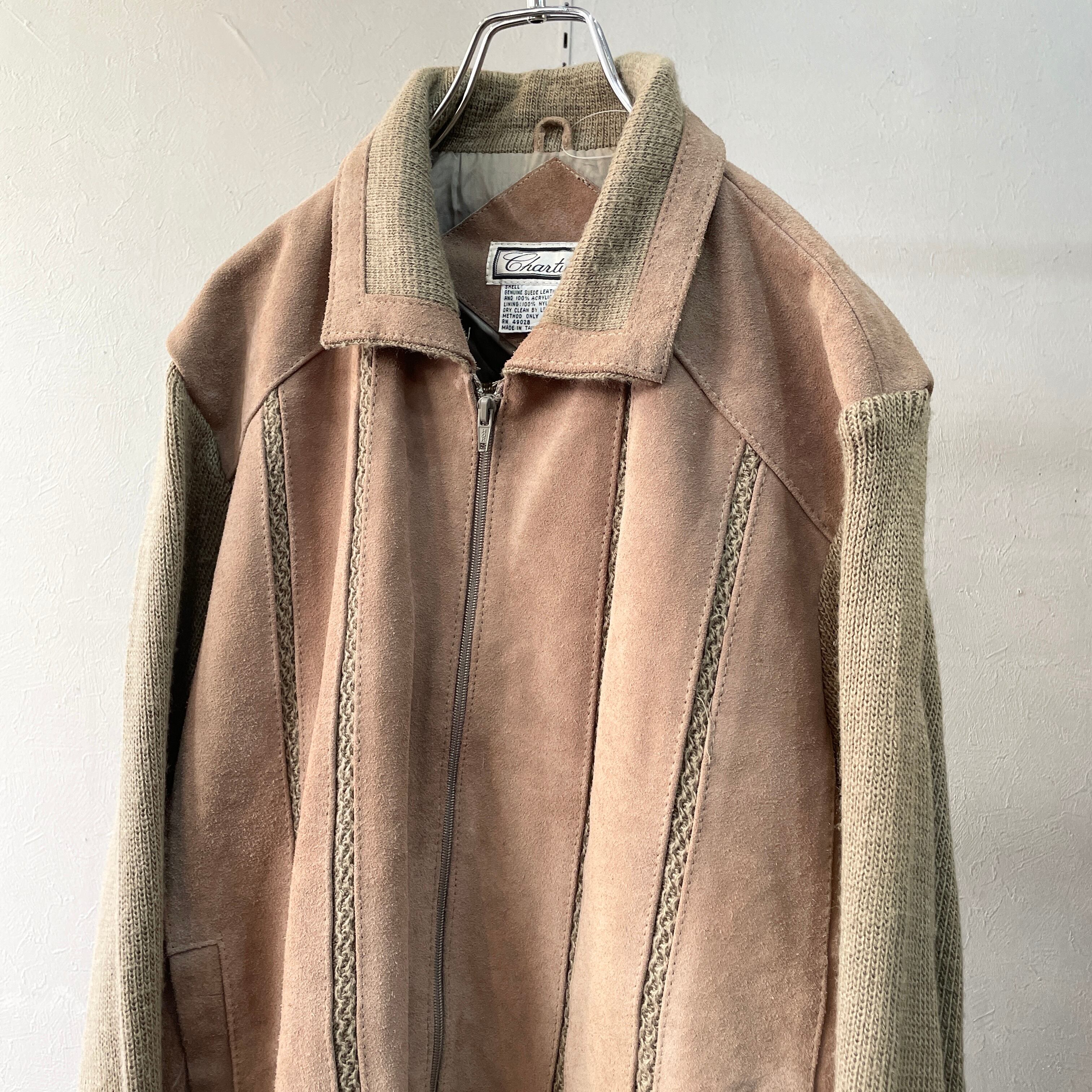 90s スエードレザージャケット ニット切替 ピンクベージュ XL