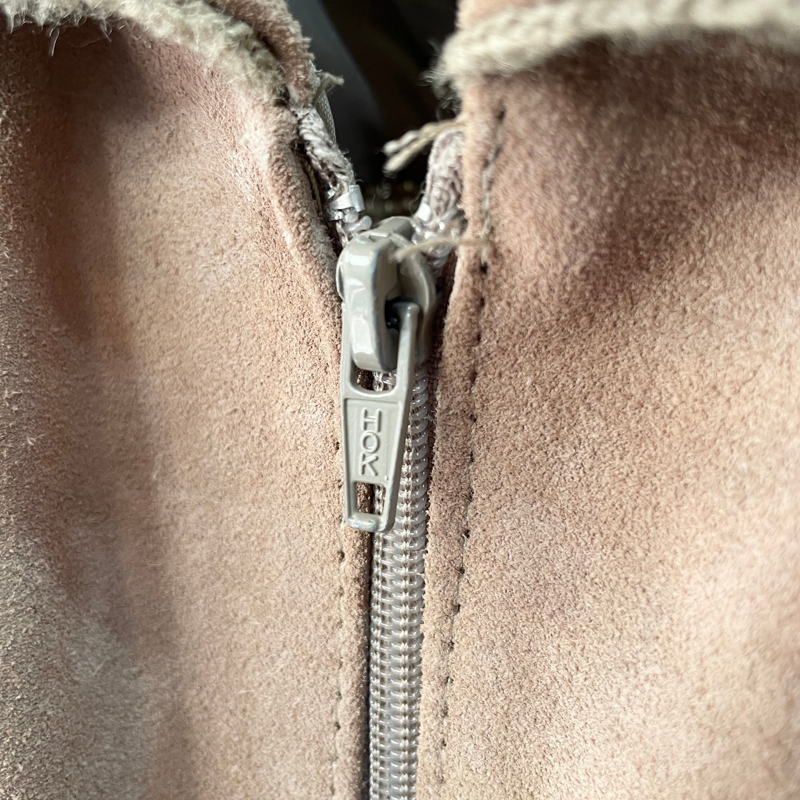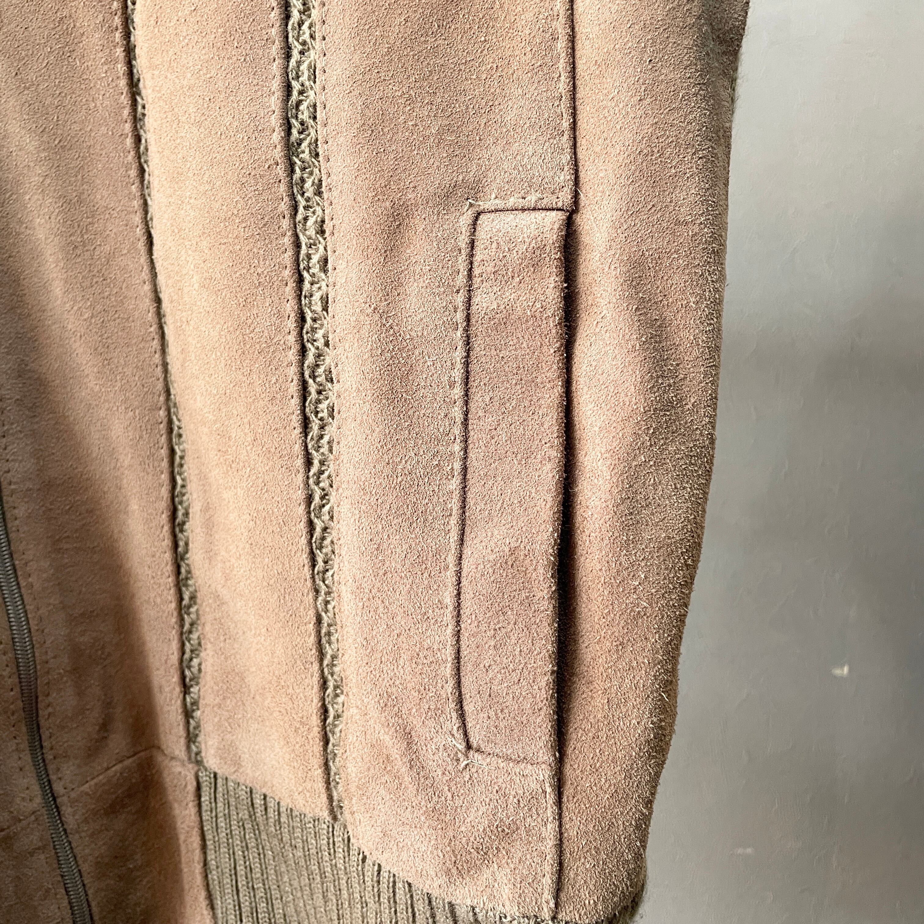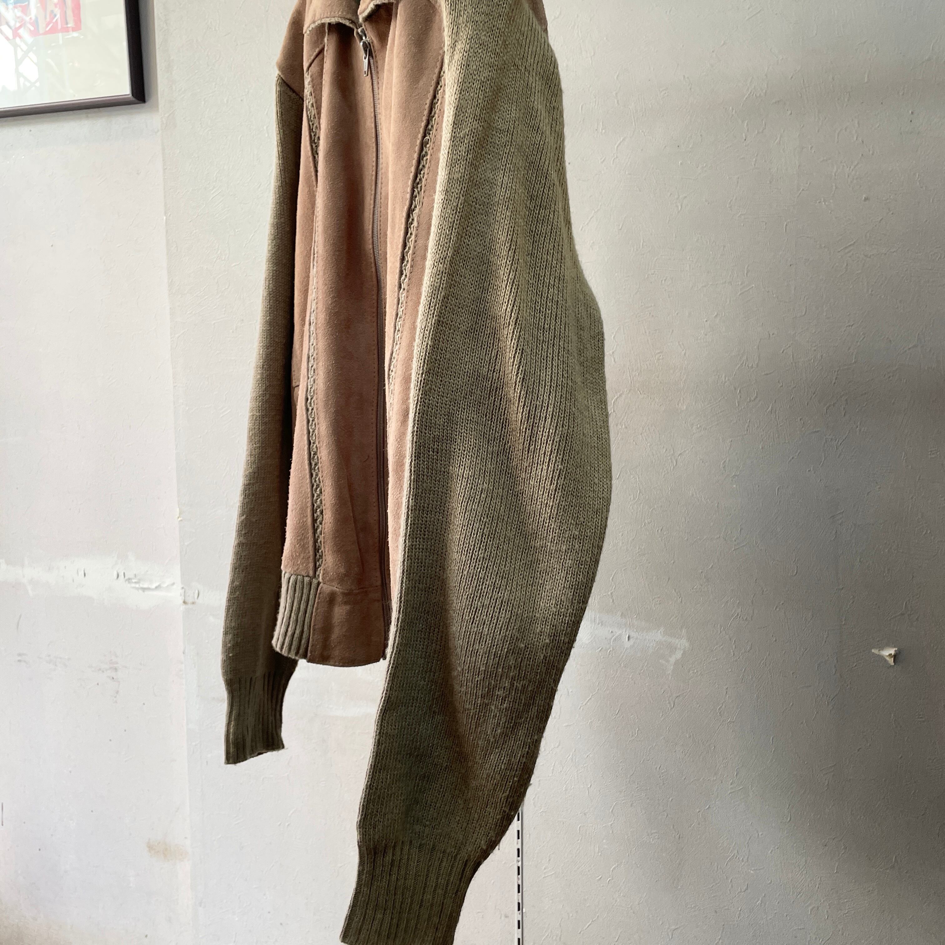 90s スエードレザージャケット ニット切替 ピンクベージュ XL