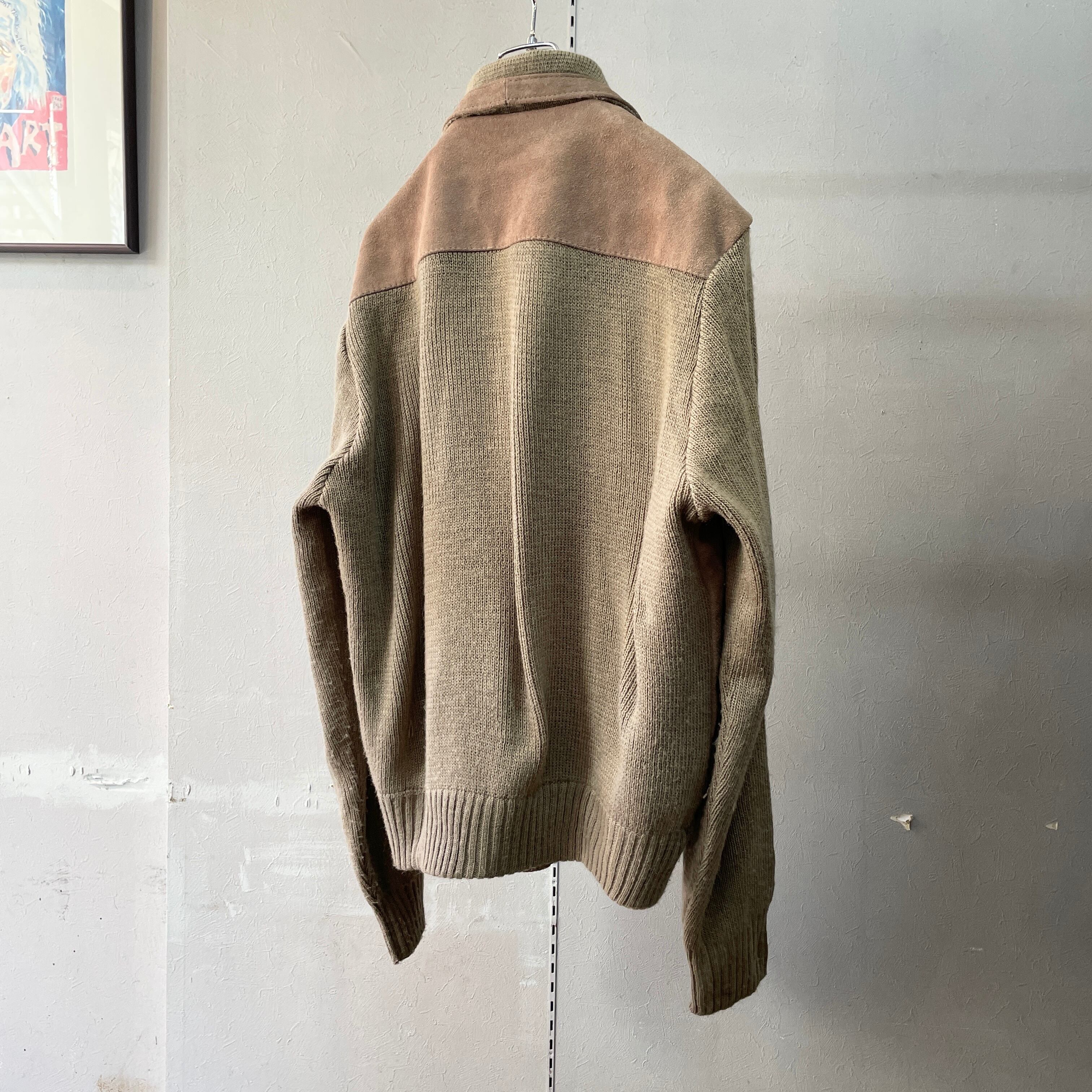 90s ニット切替スエードレザージャケット ピンクベージュ XL