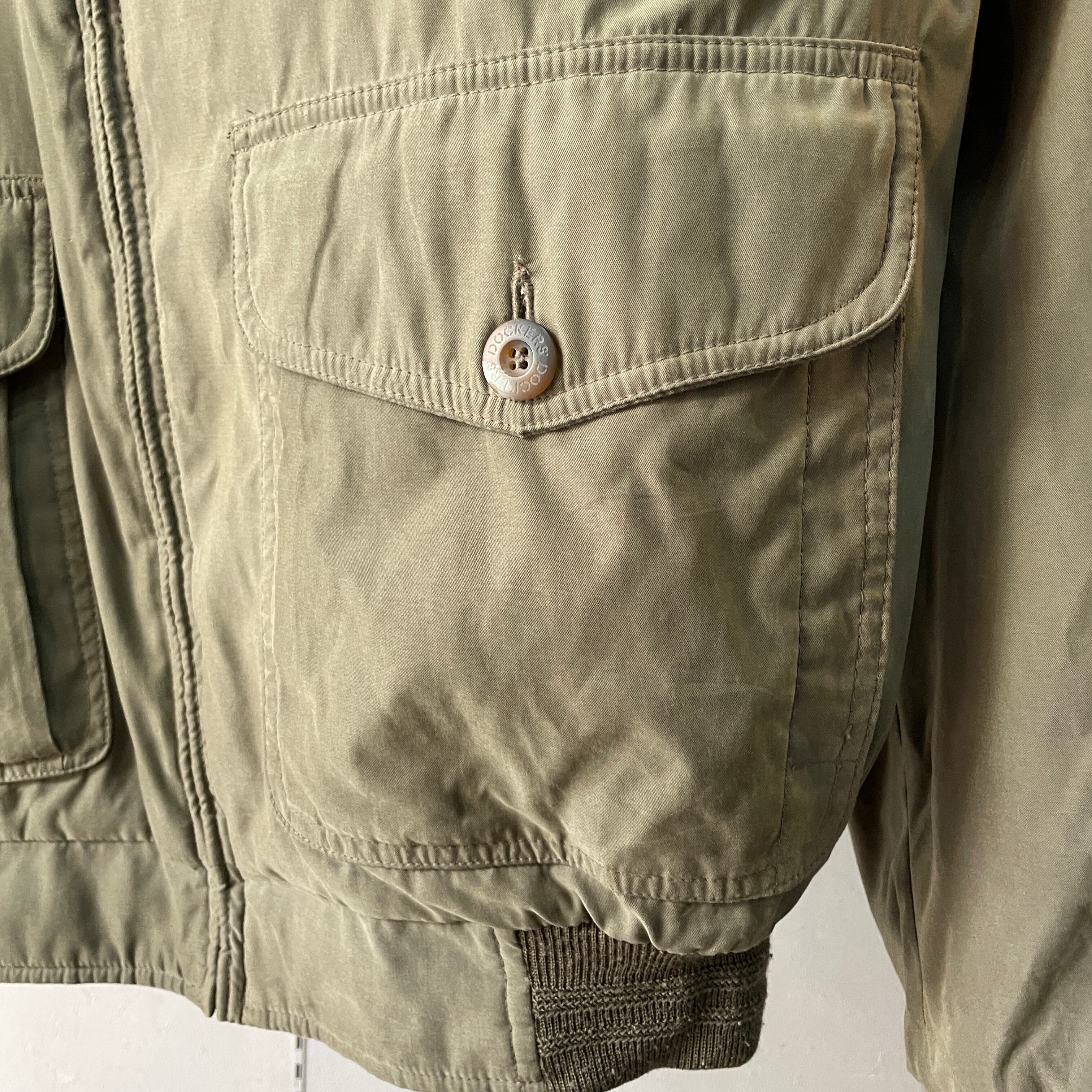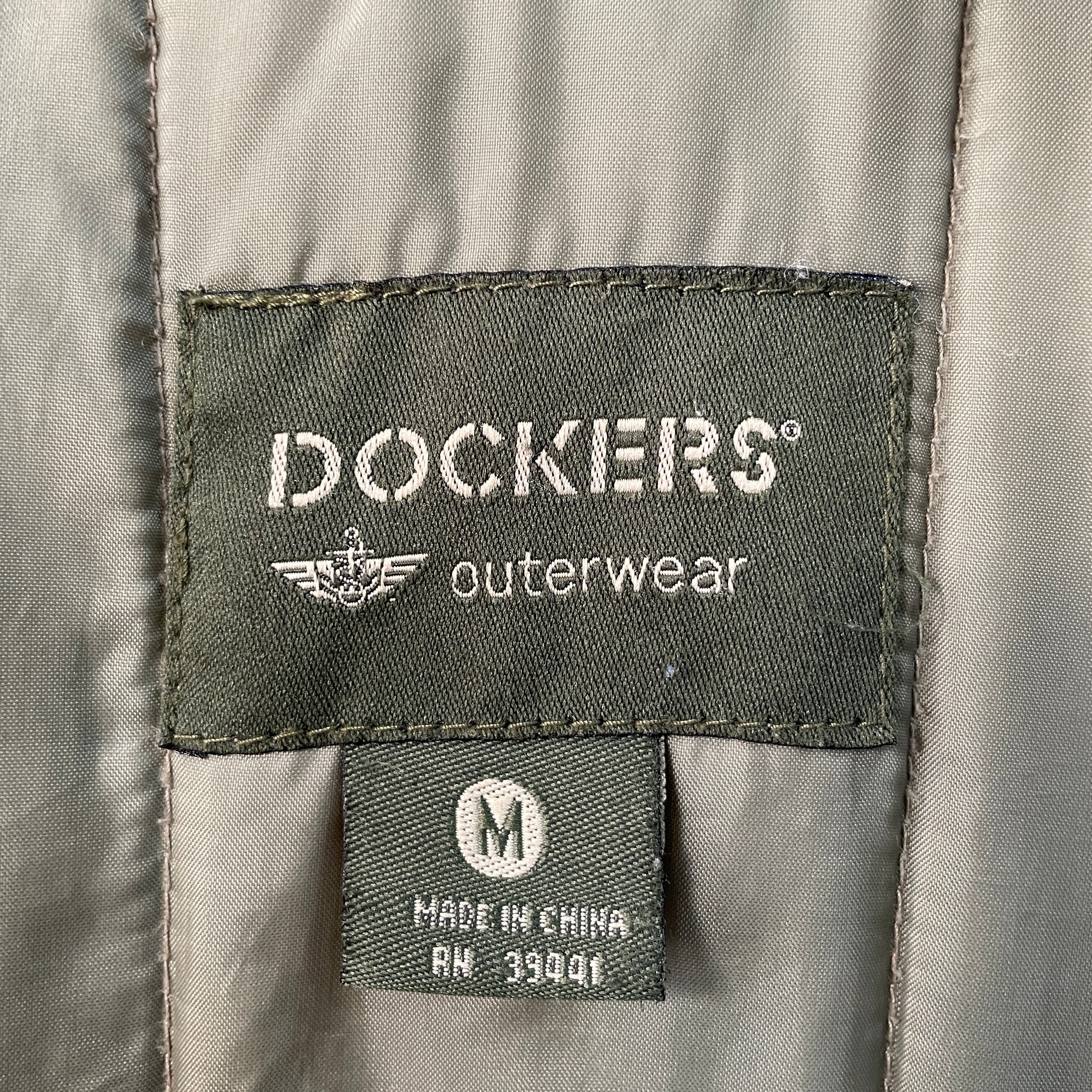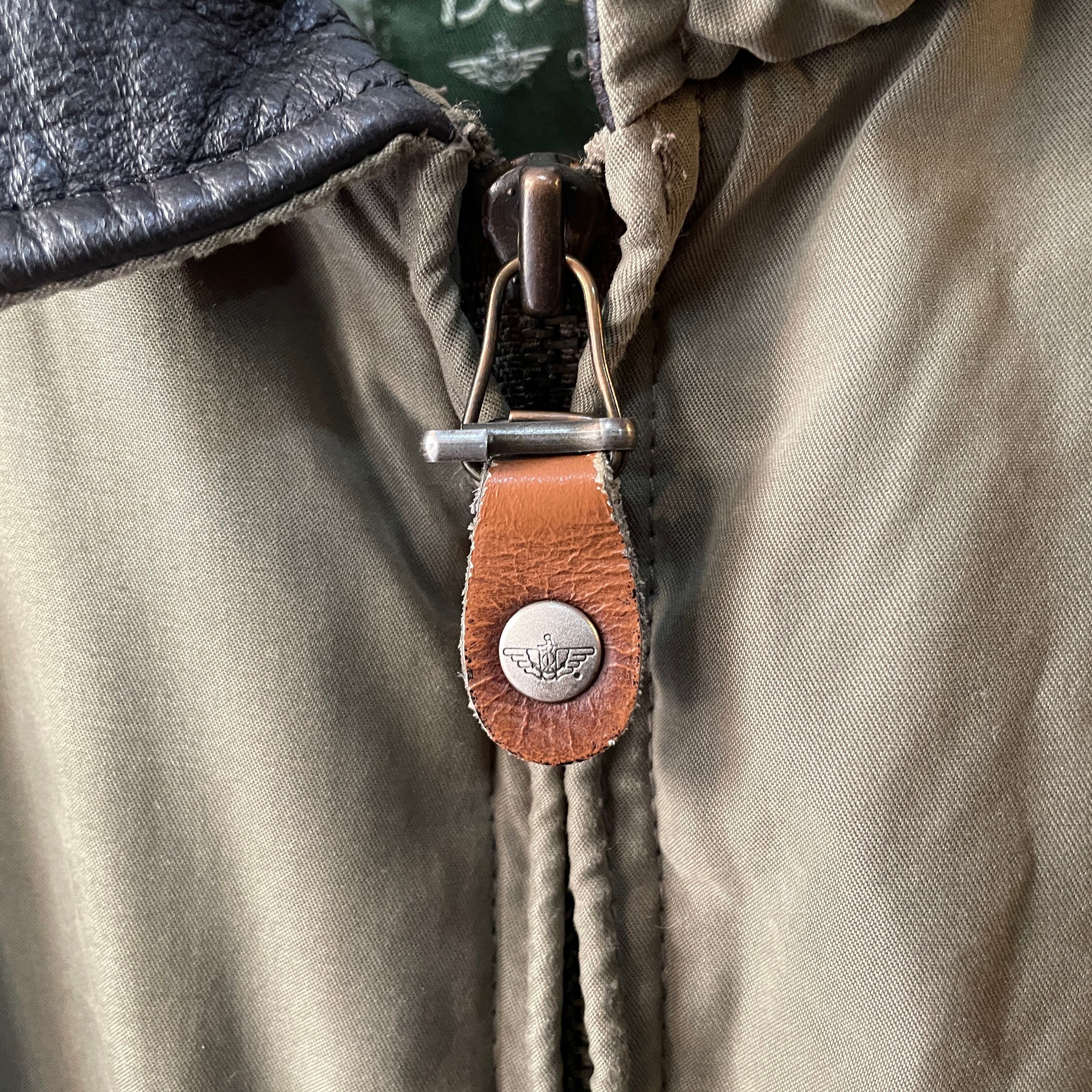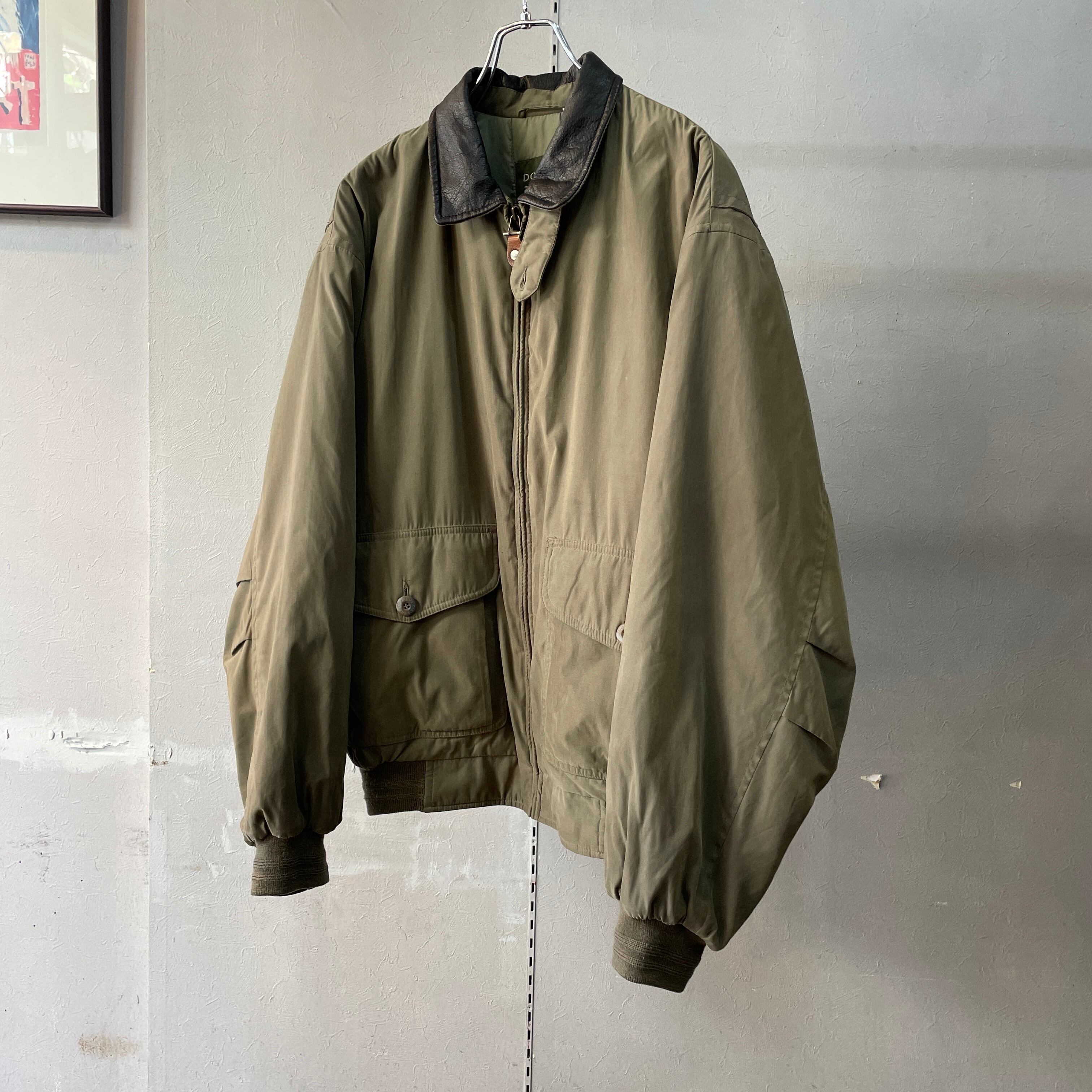 90s ドッカーズ A-2フライトジャケット型 襟レザー切替 スムーススイングトップ オリーブ×ブラック M