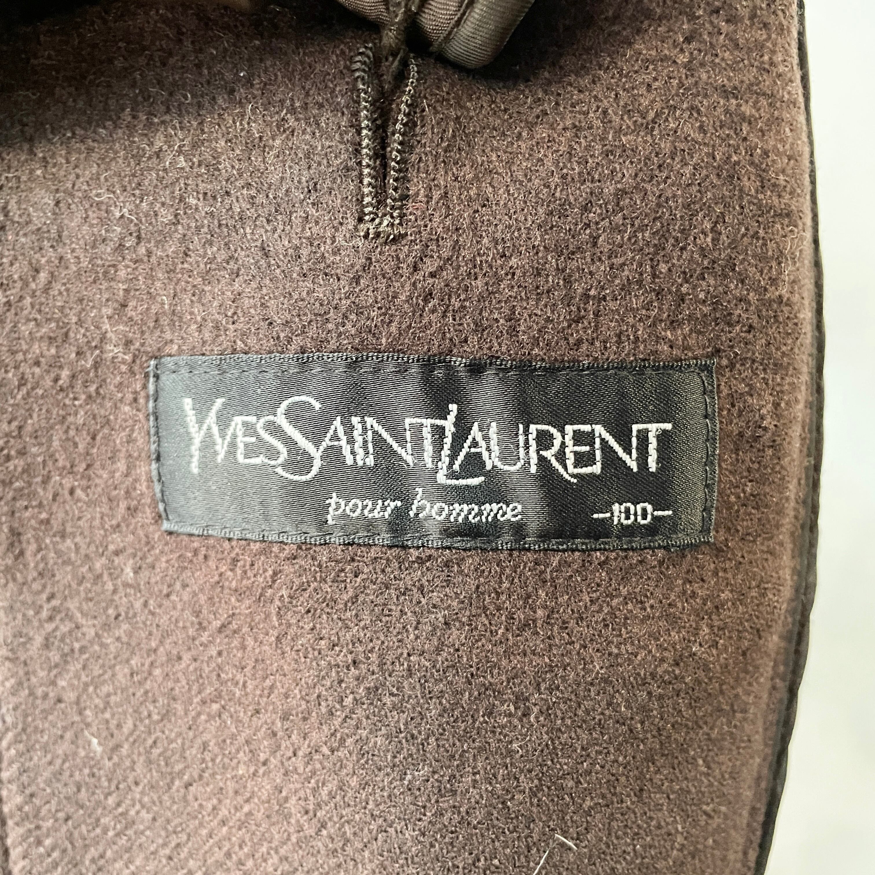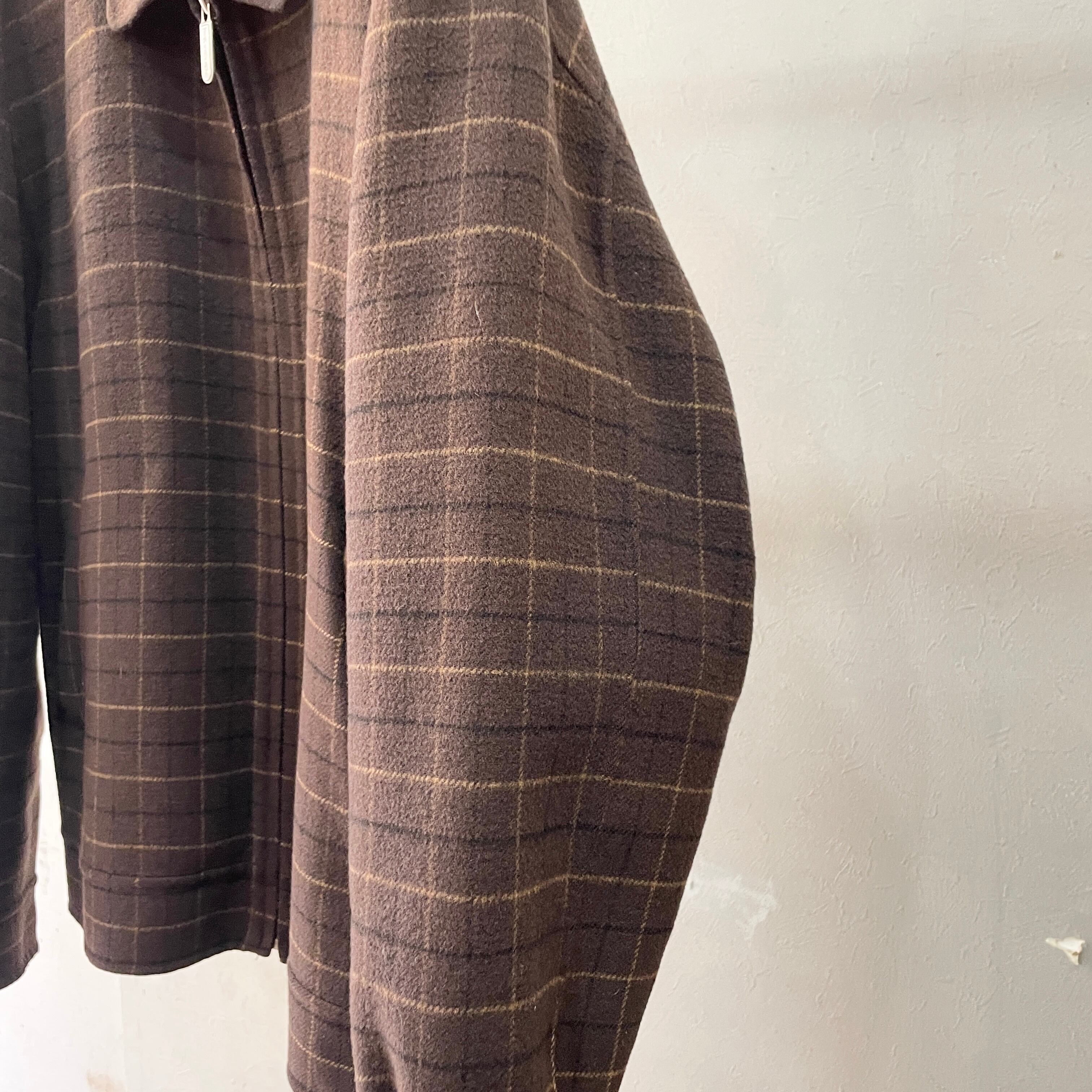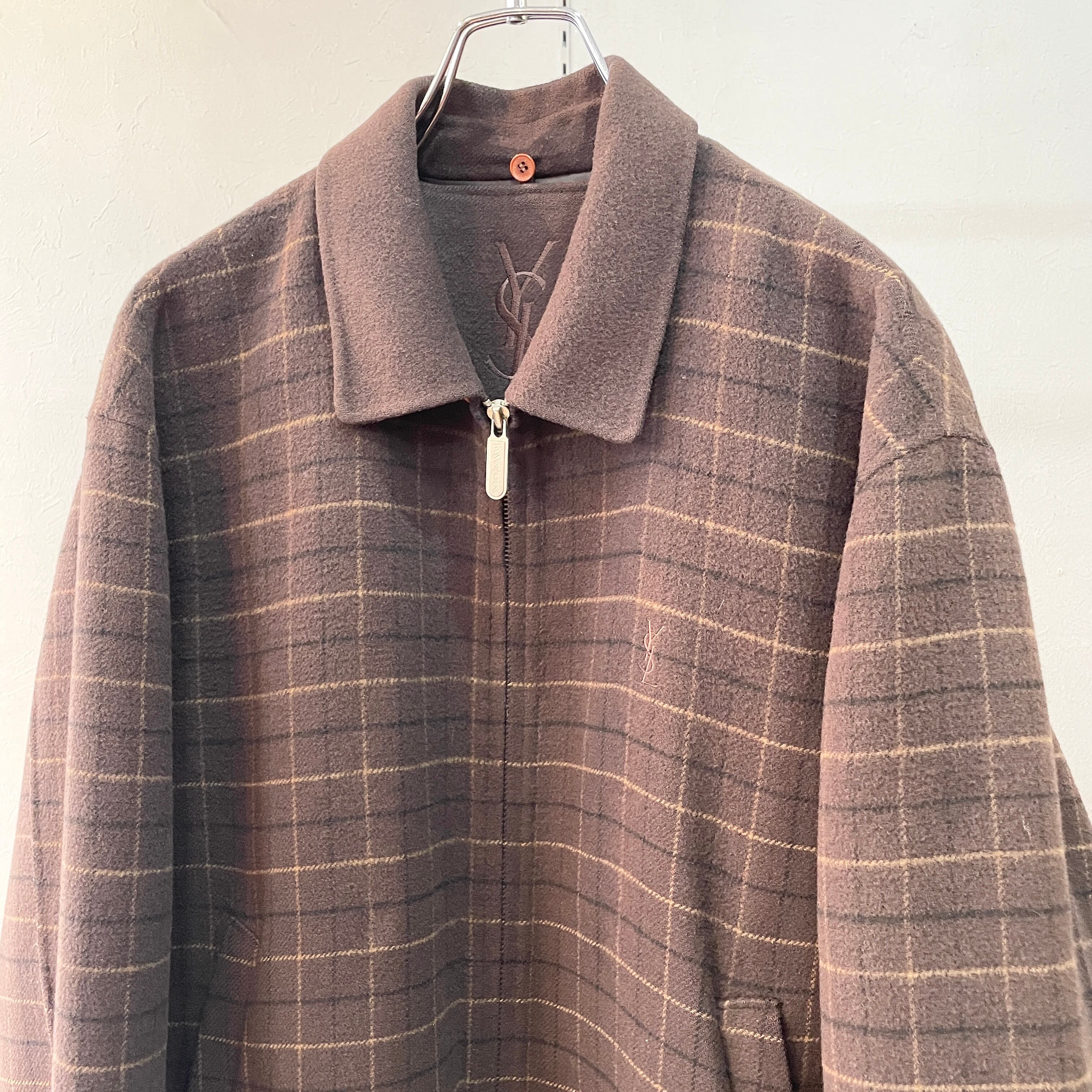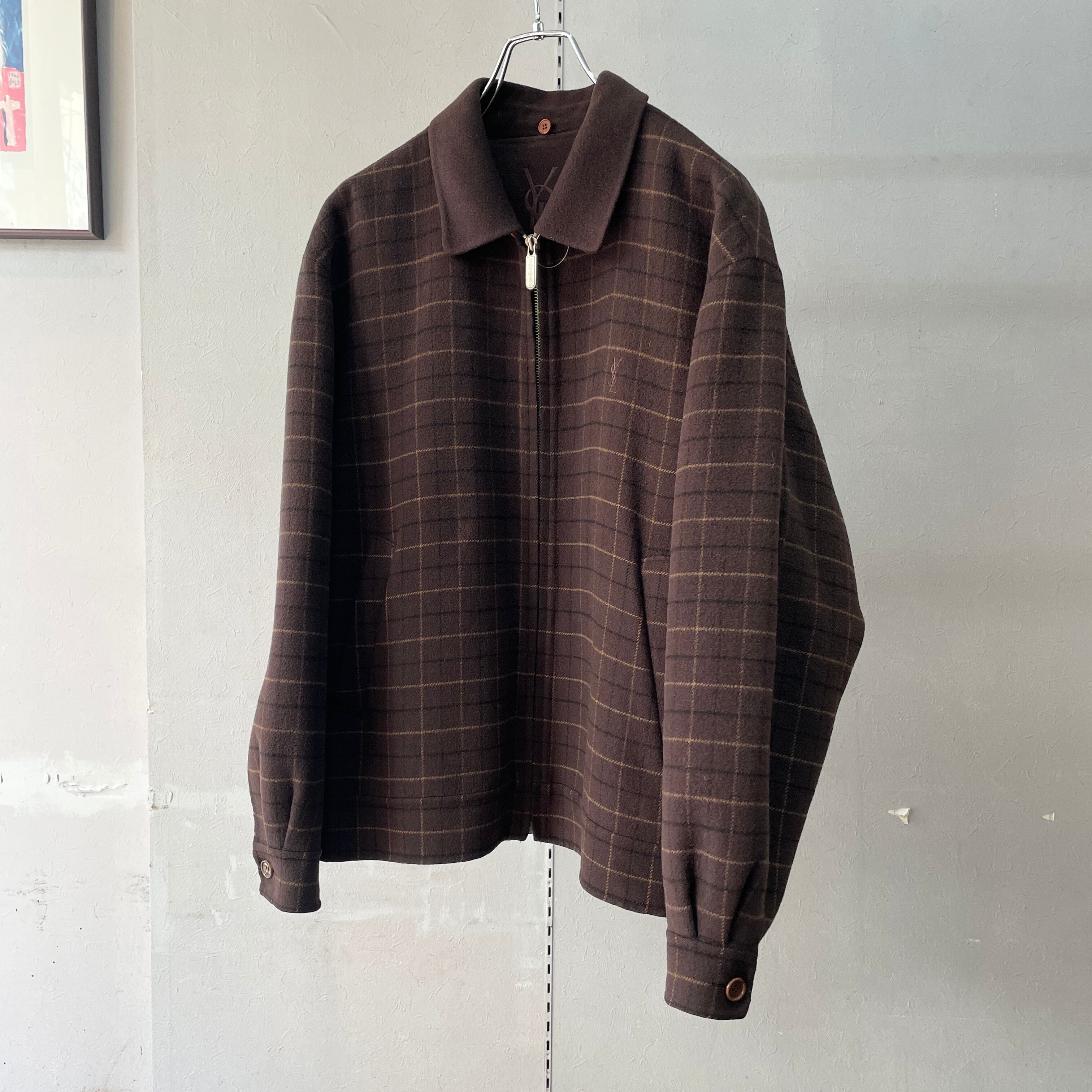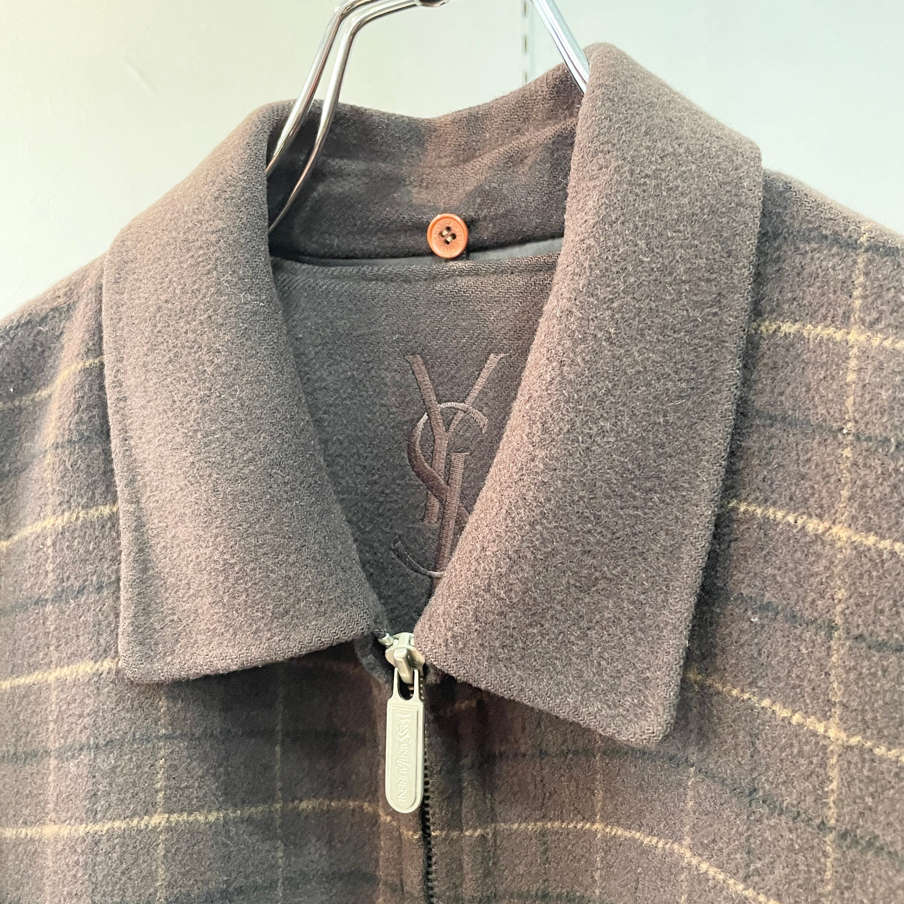 90s イヴサンローラン チェック柄ウールドリズラージャケット 中綿入り ブラウン L