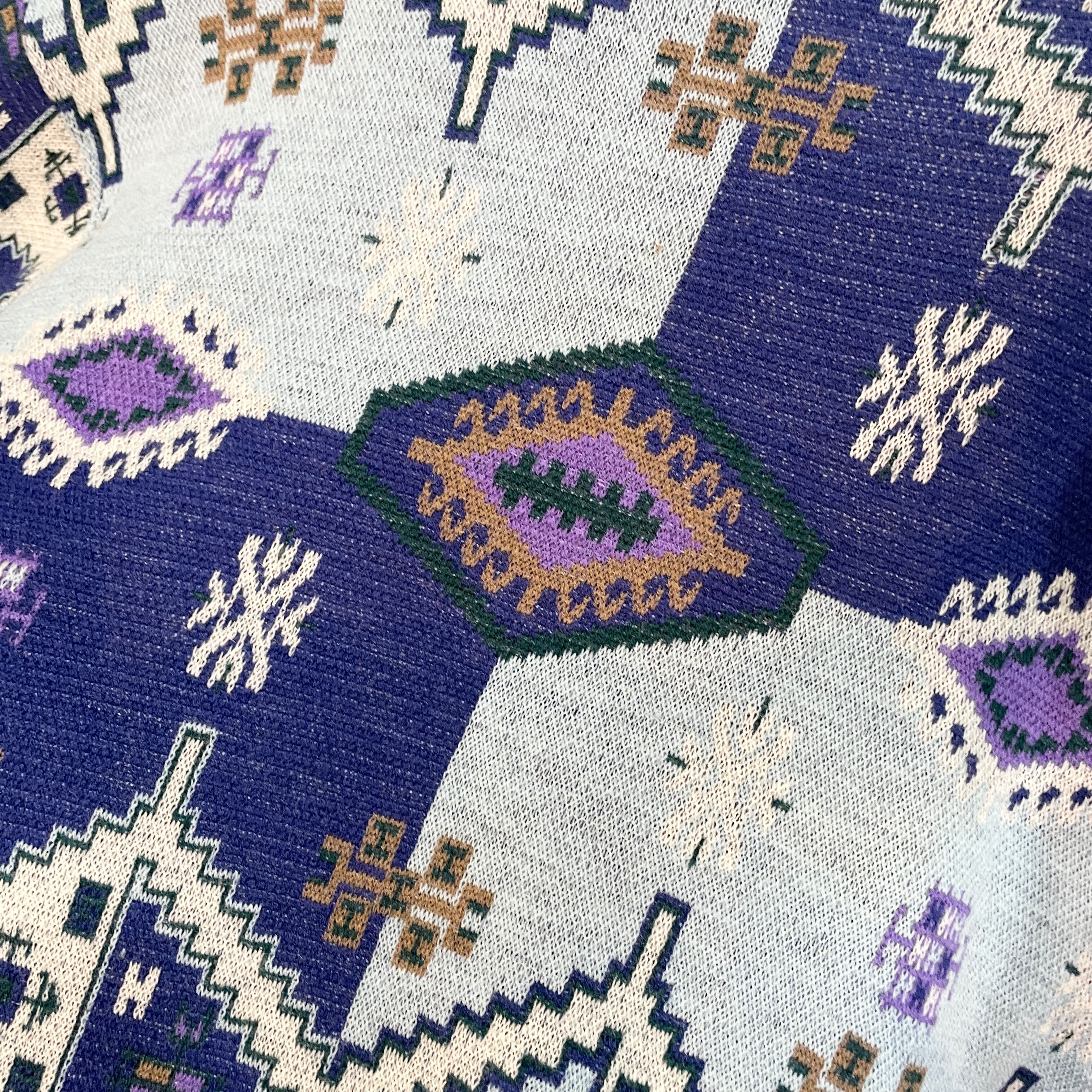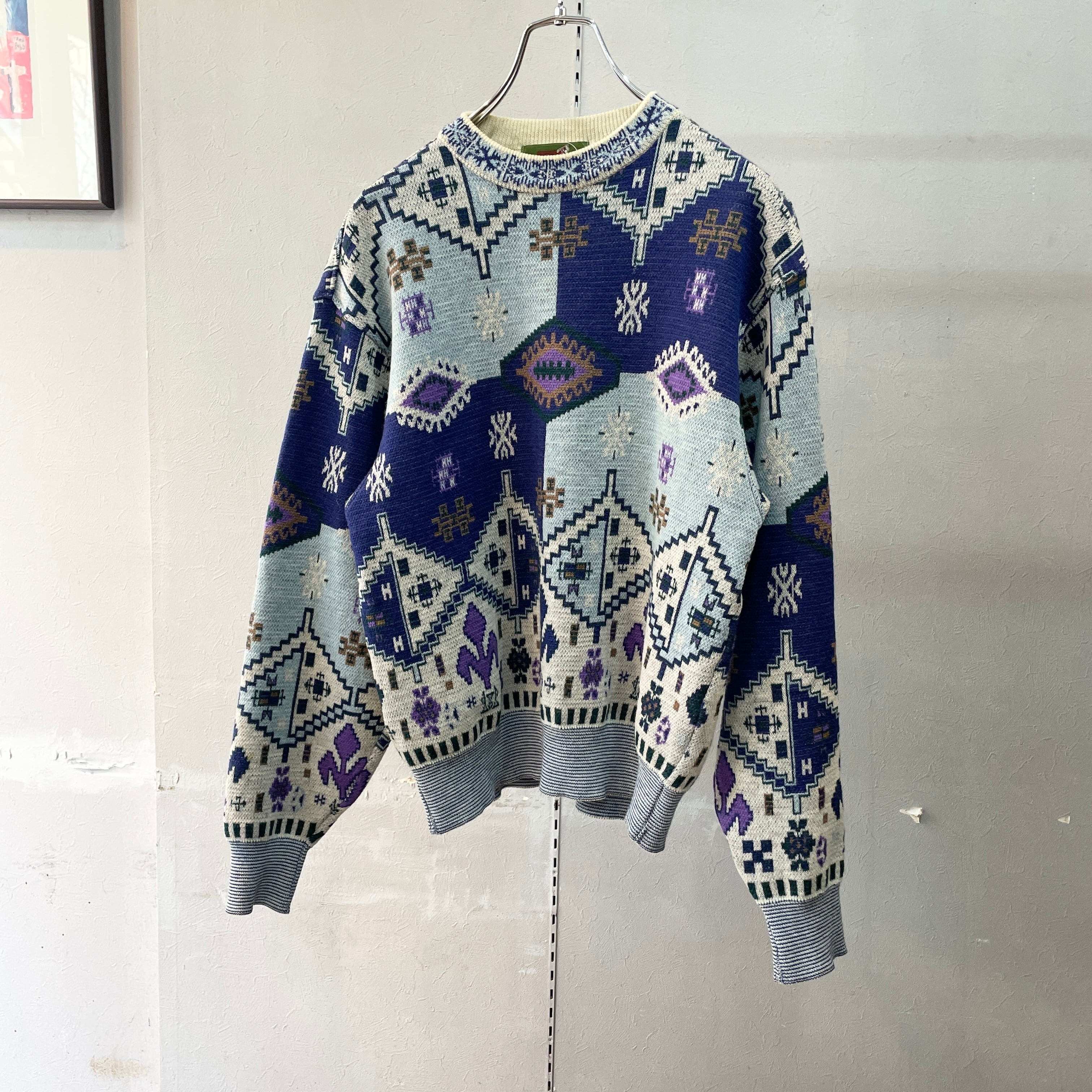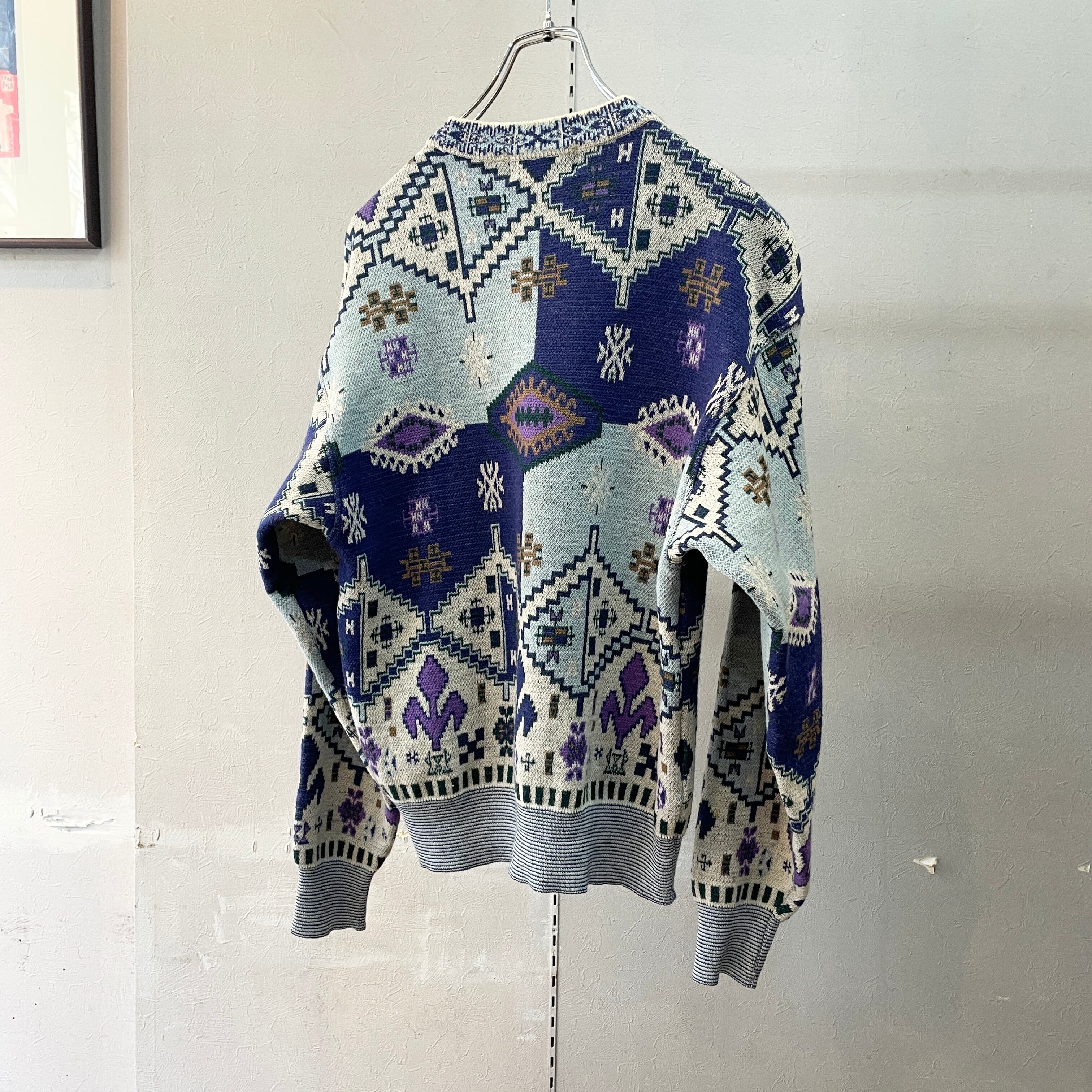 90s ケンゾー 総柄ウールニット ブルーベース M程度