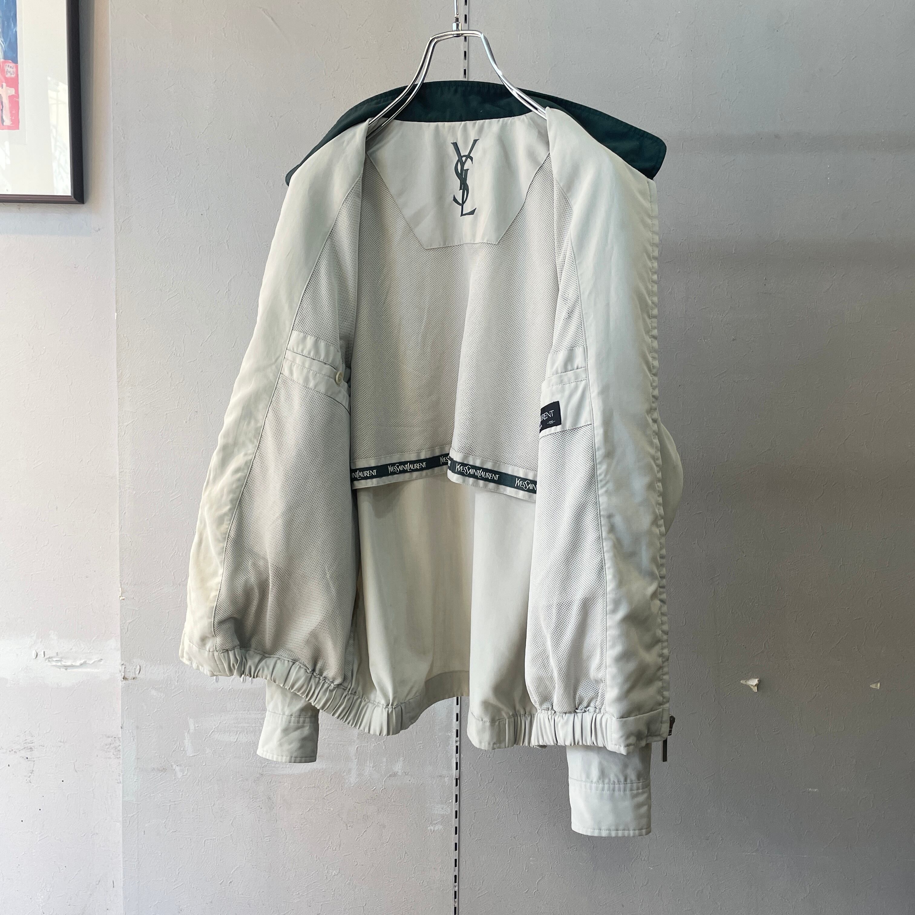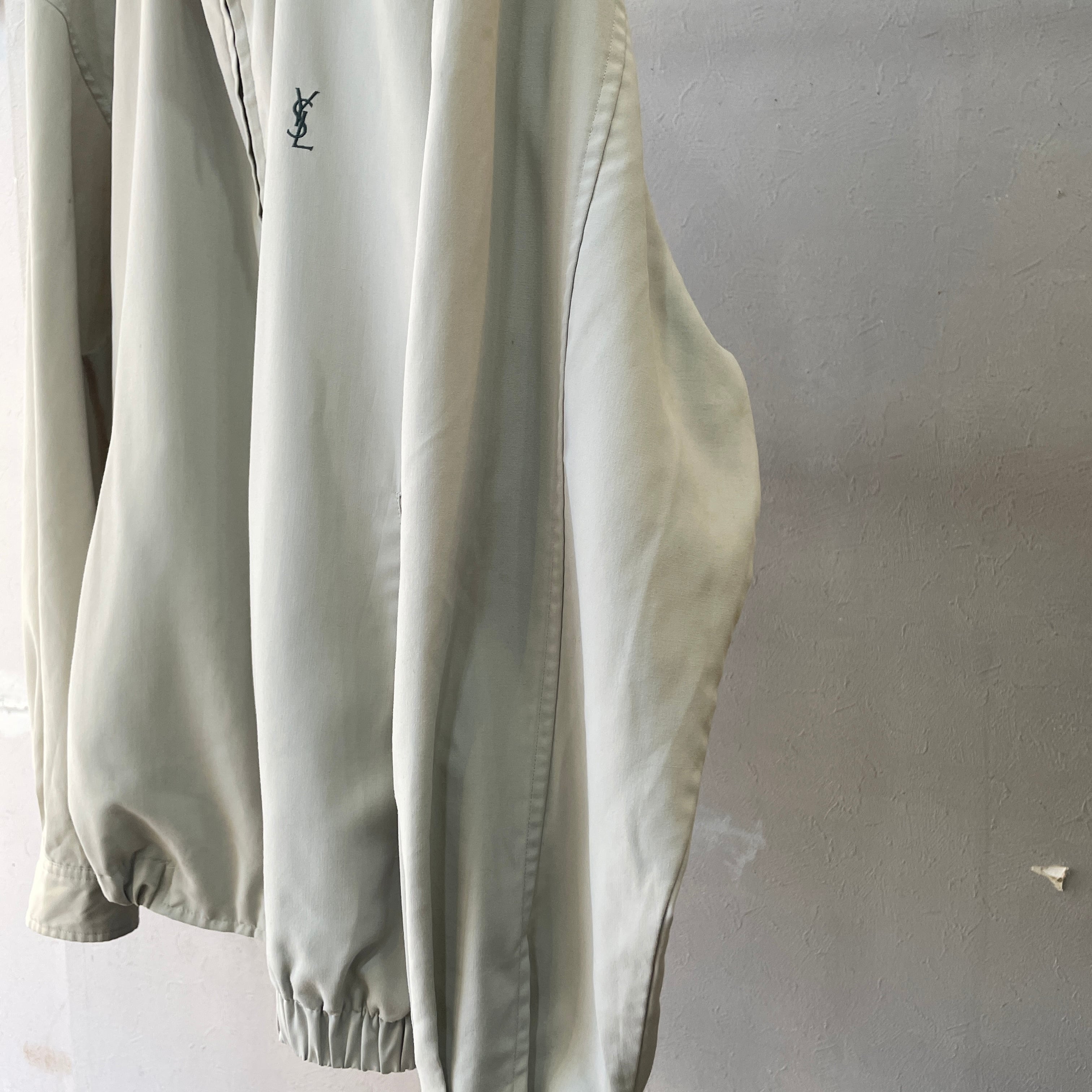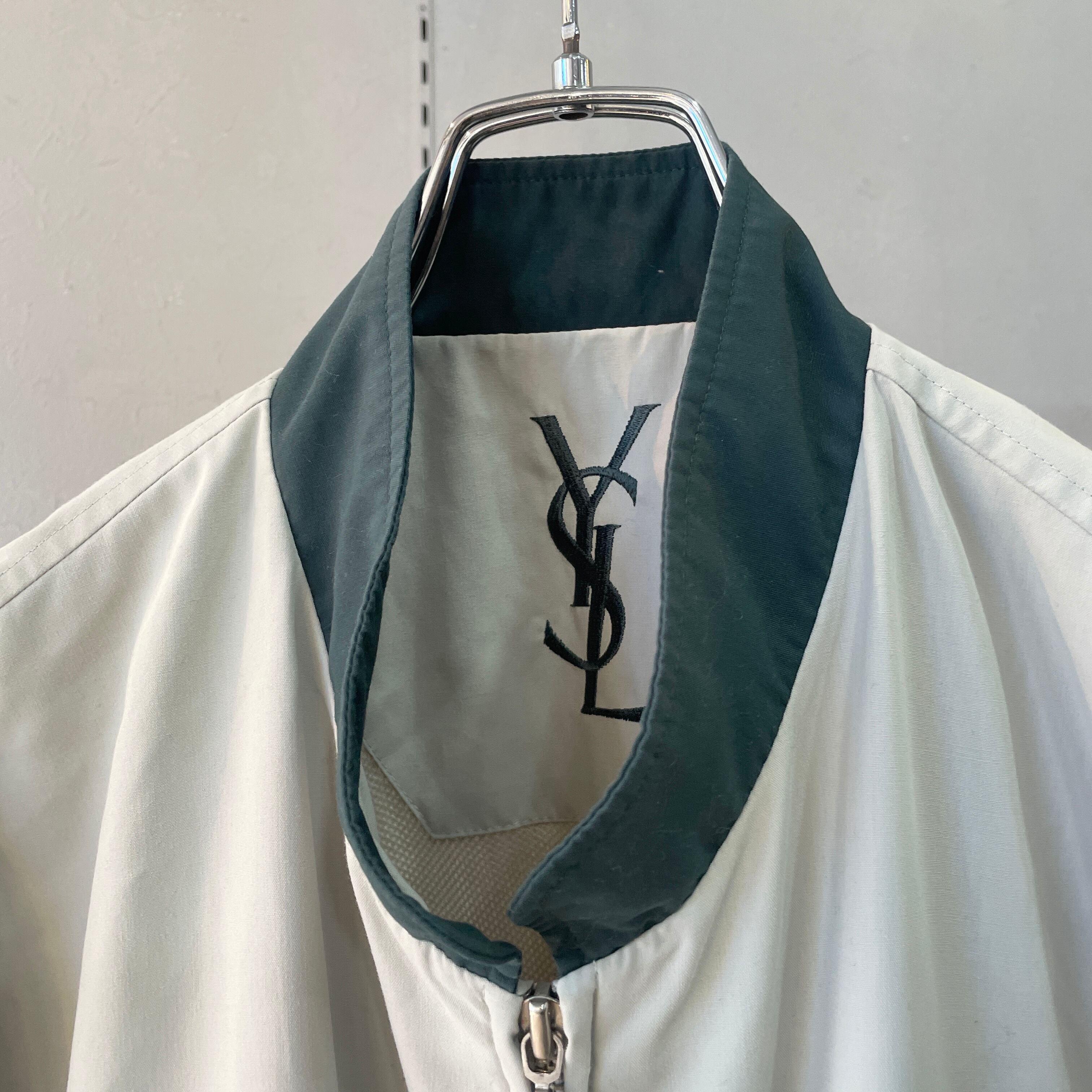 90s イヴサンローラン 2トーントラックジャケット スイングトップ アイボリー×グリーン L程度
