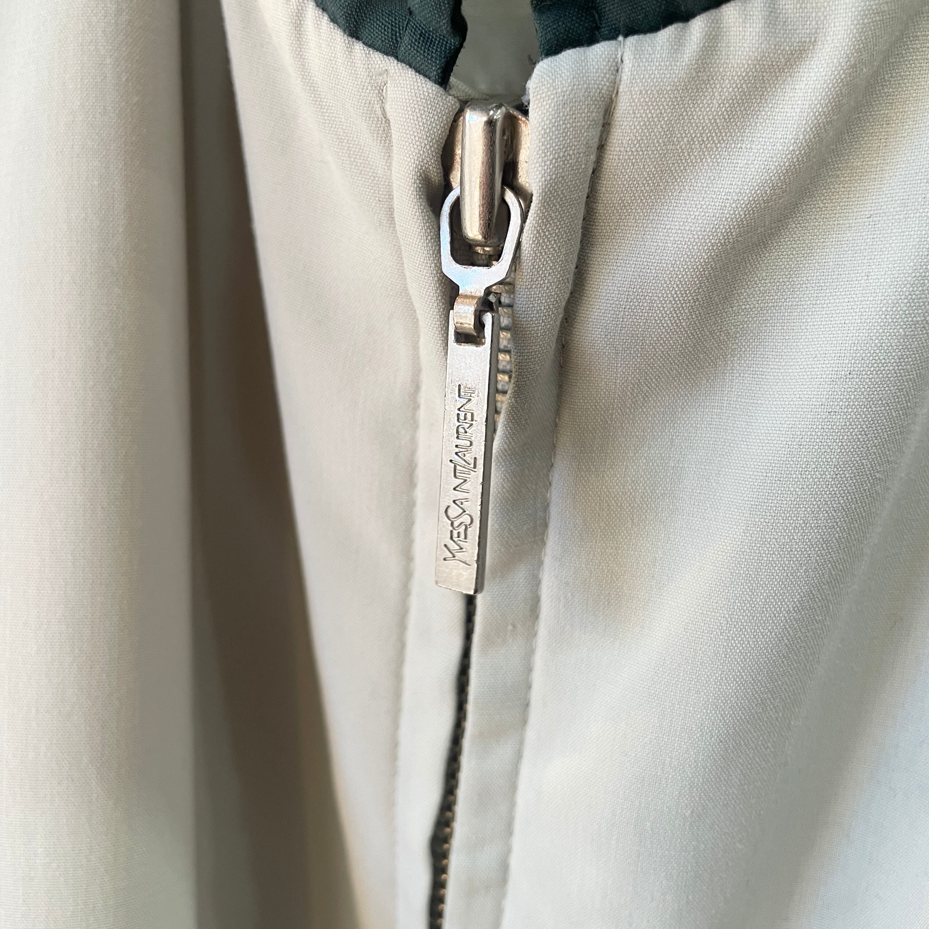 90s イヴサンローラン 2トーントラックジャケット スイングトップ アイボリー×グリーン L