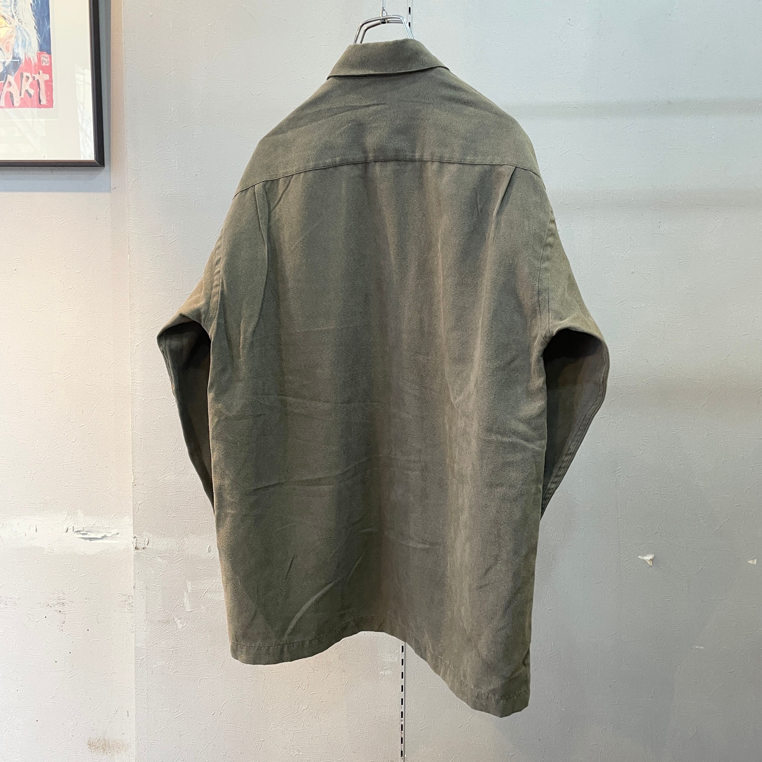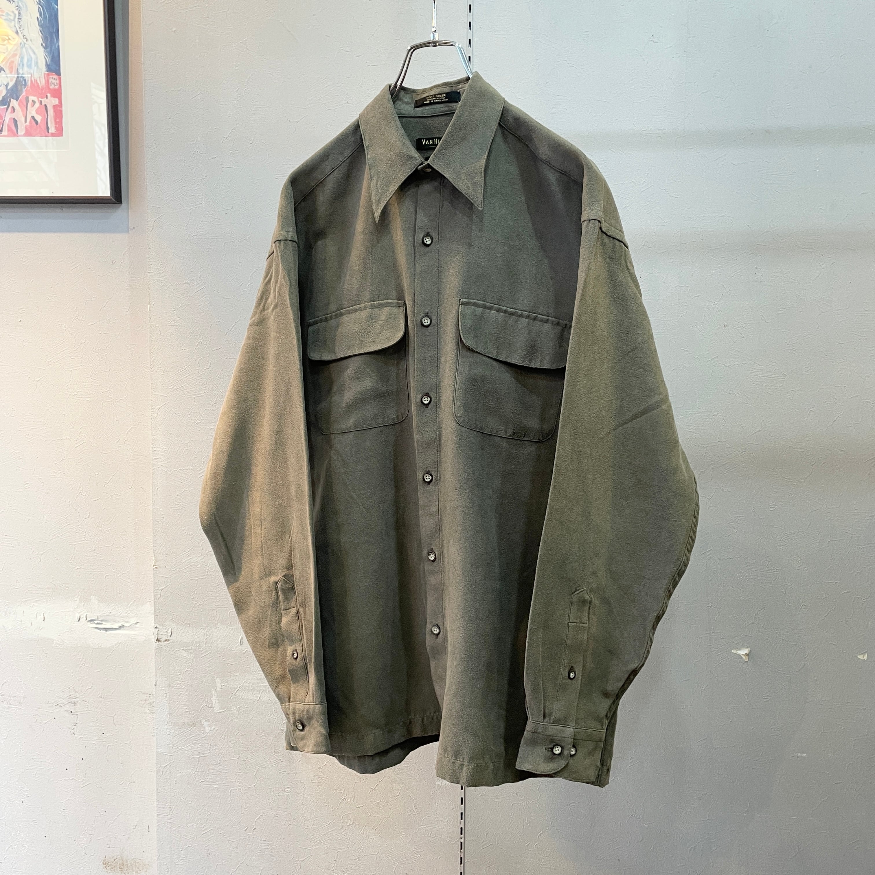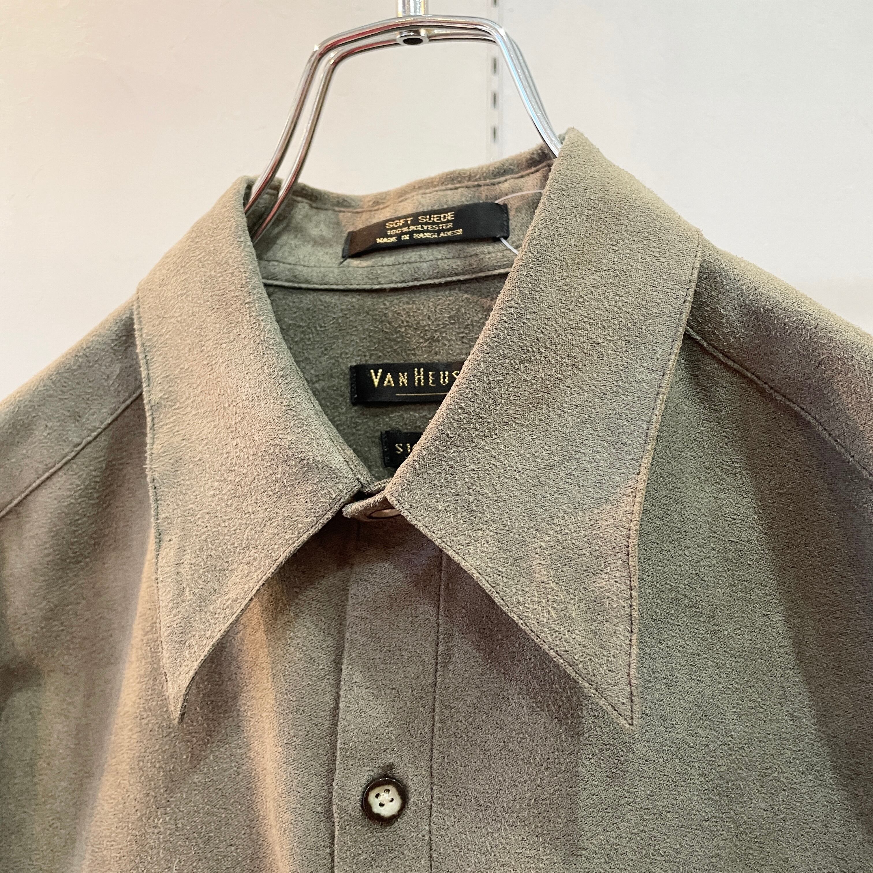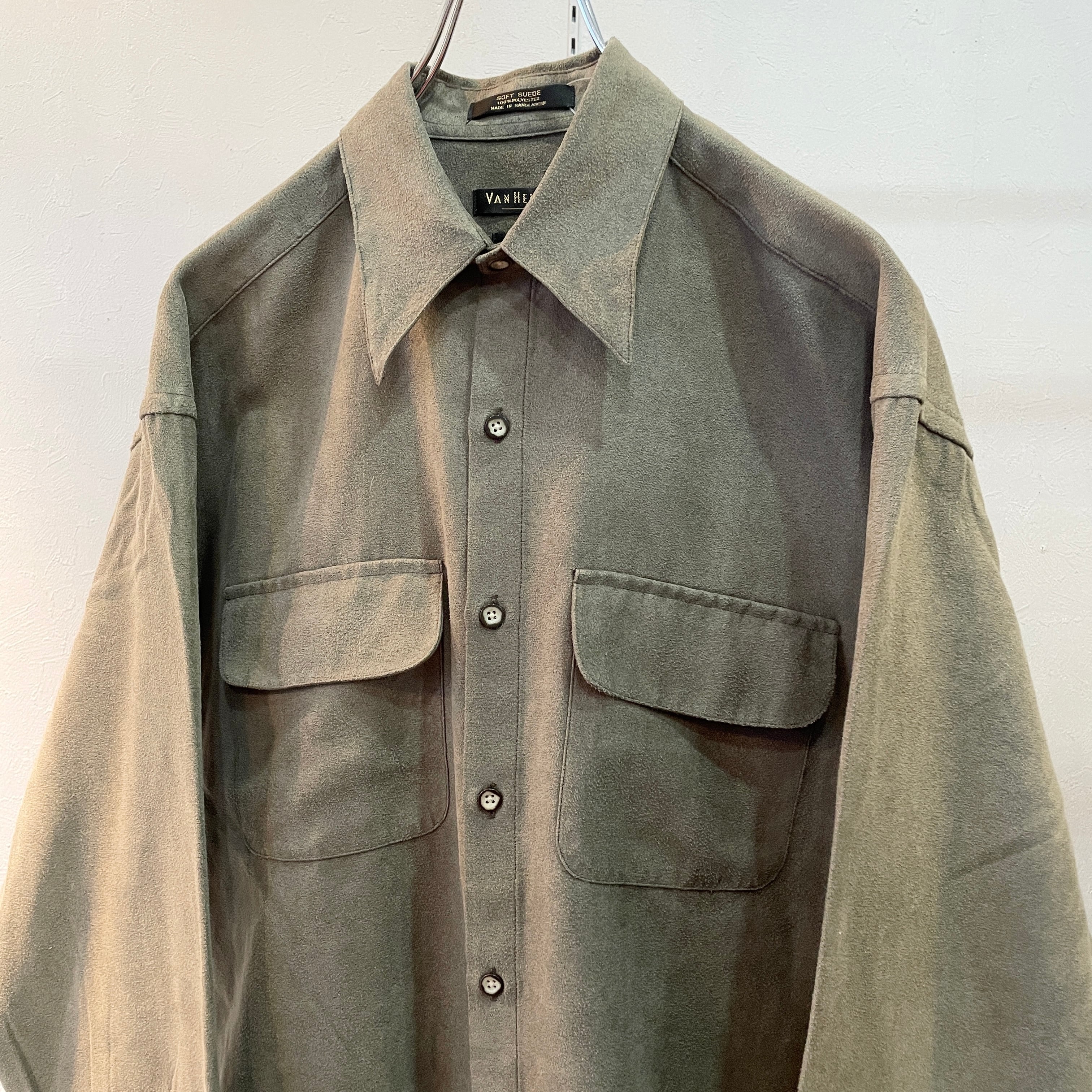 90s ヴァンヒューゼン フェイクスエードシャツ オリーブ S