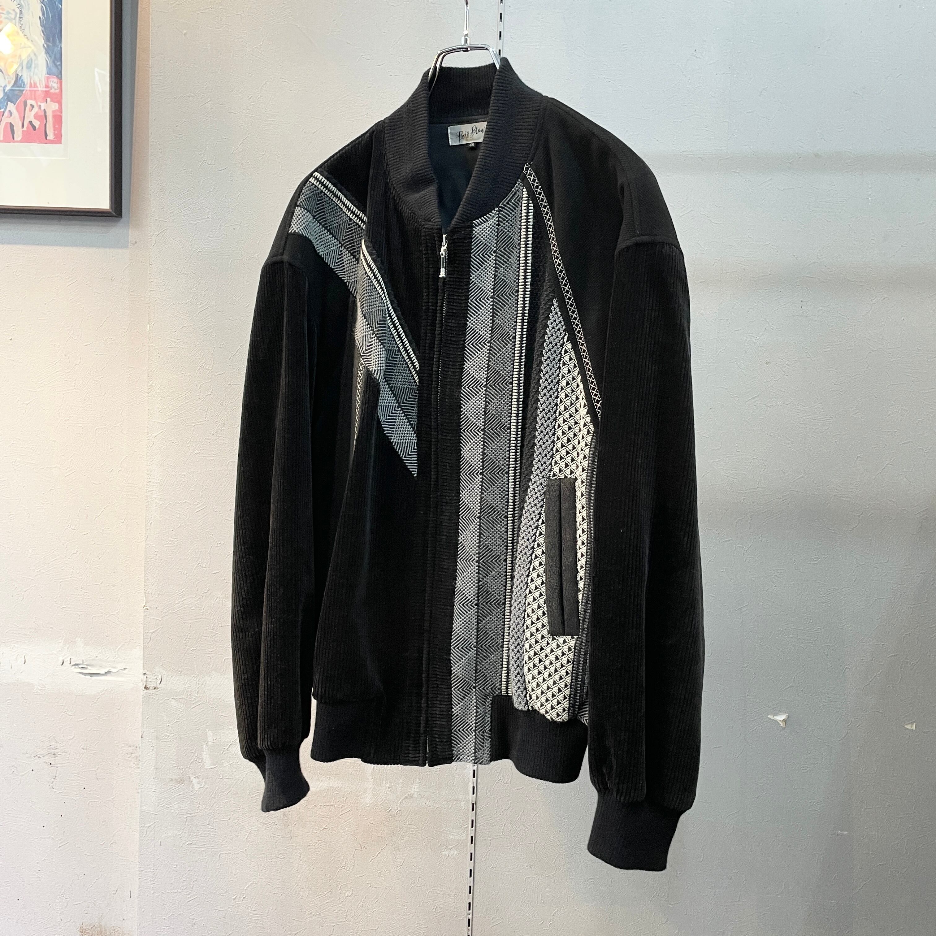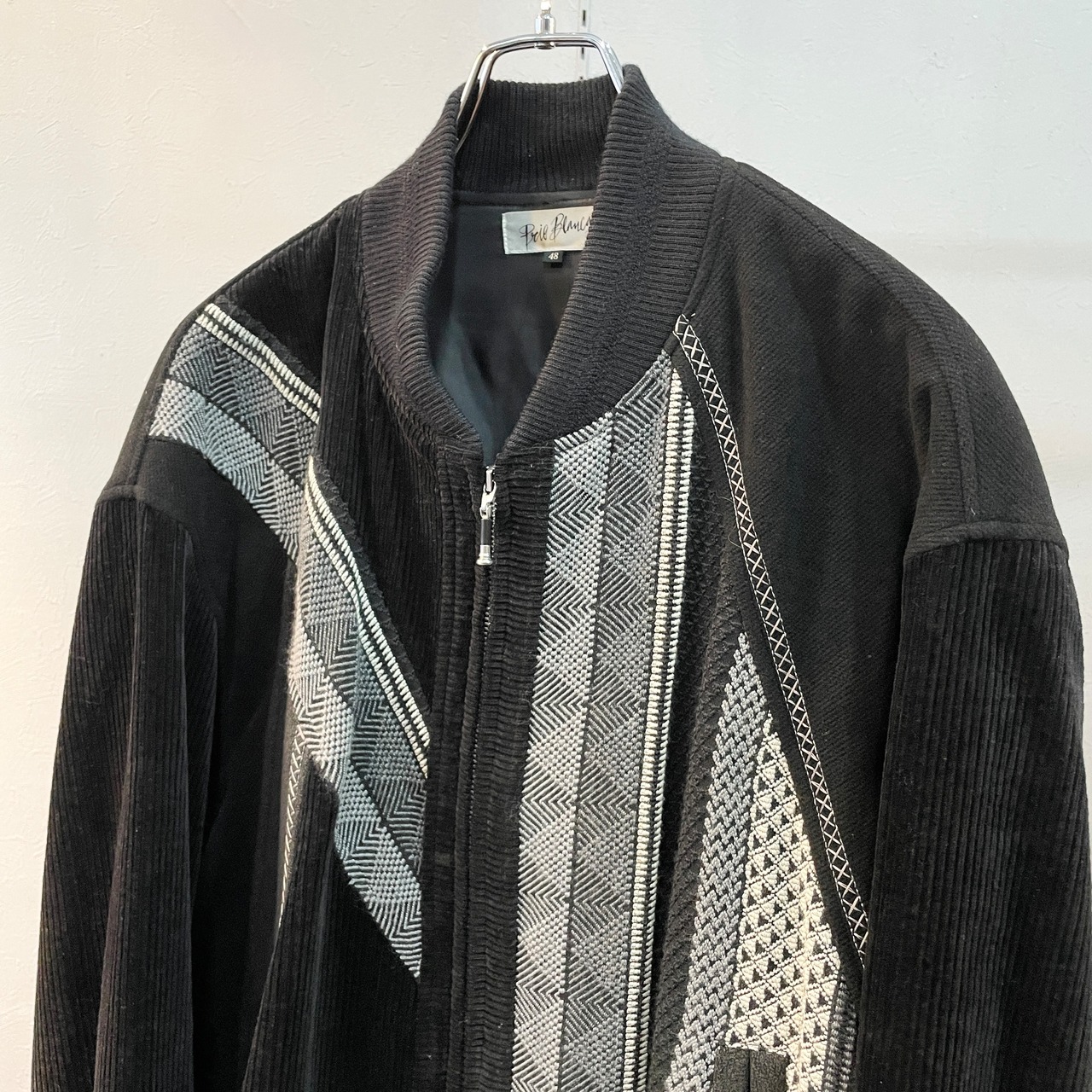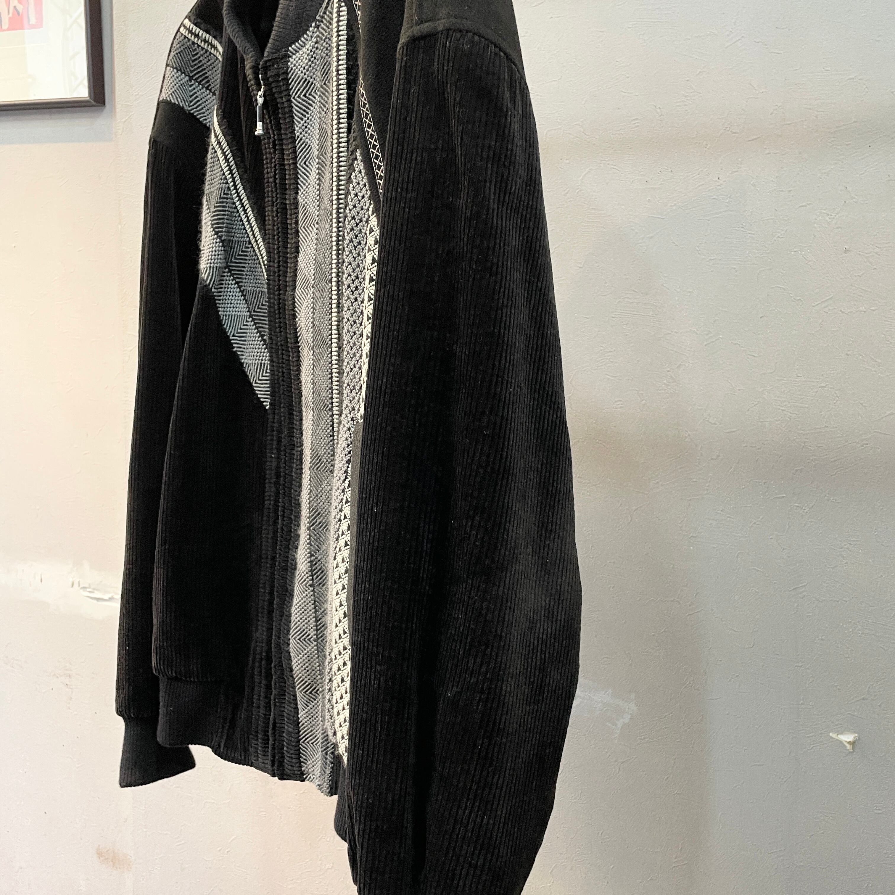 90s コーデュロイ切替ニットブルゾン ブラック L程度