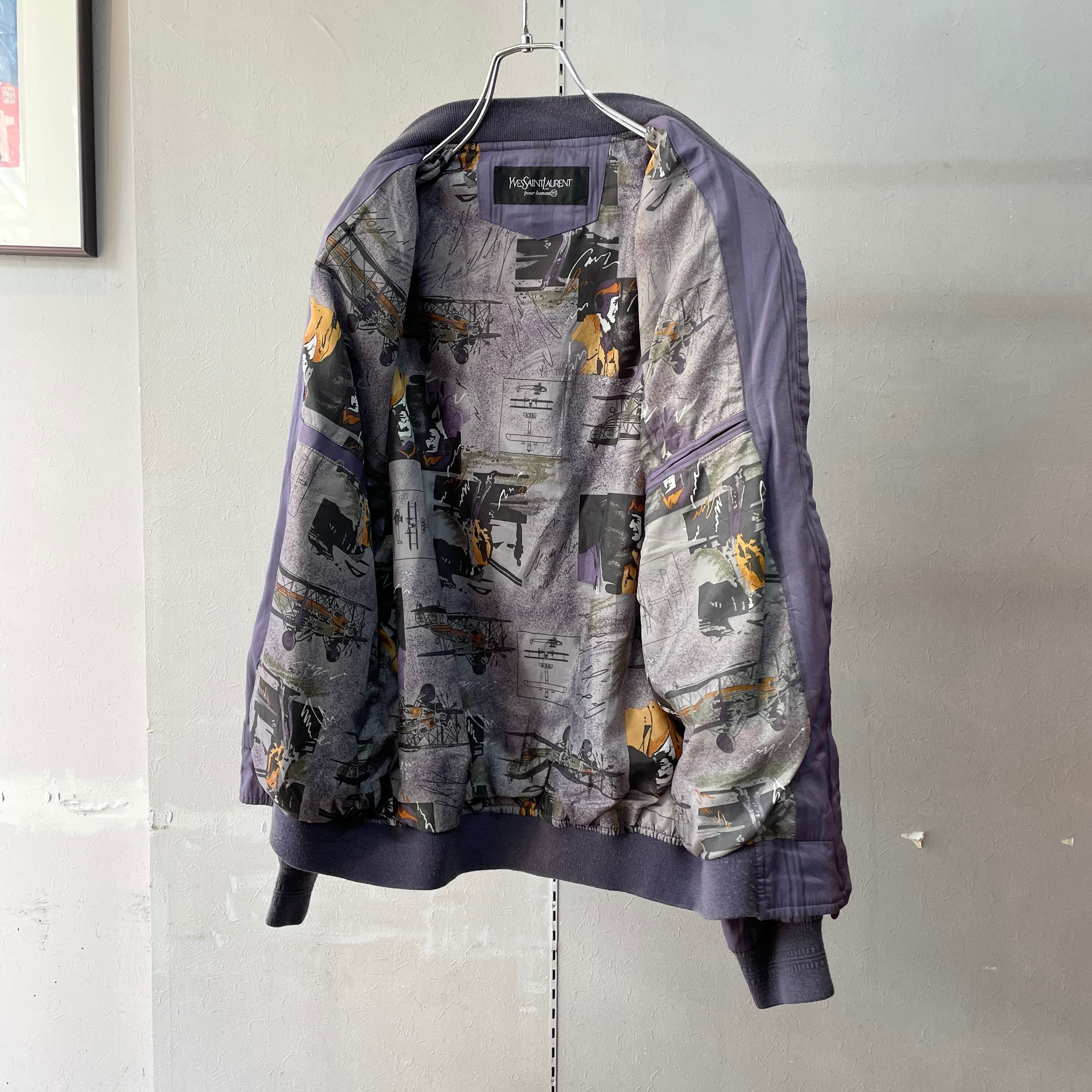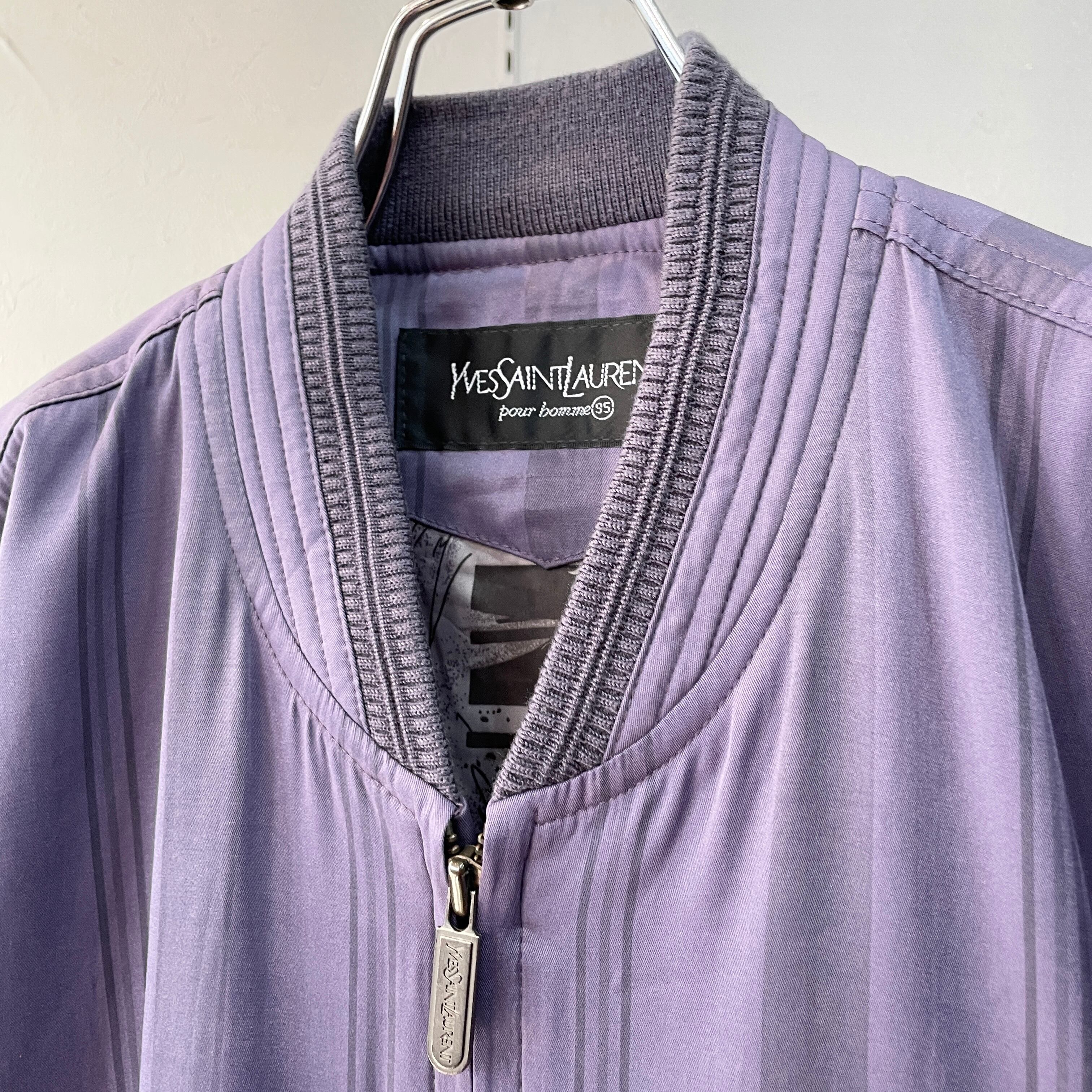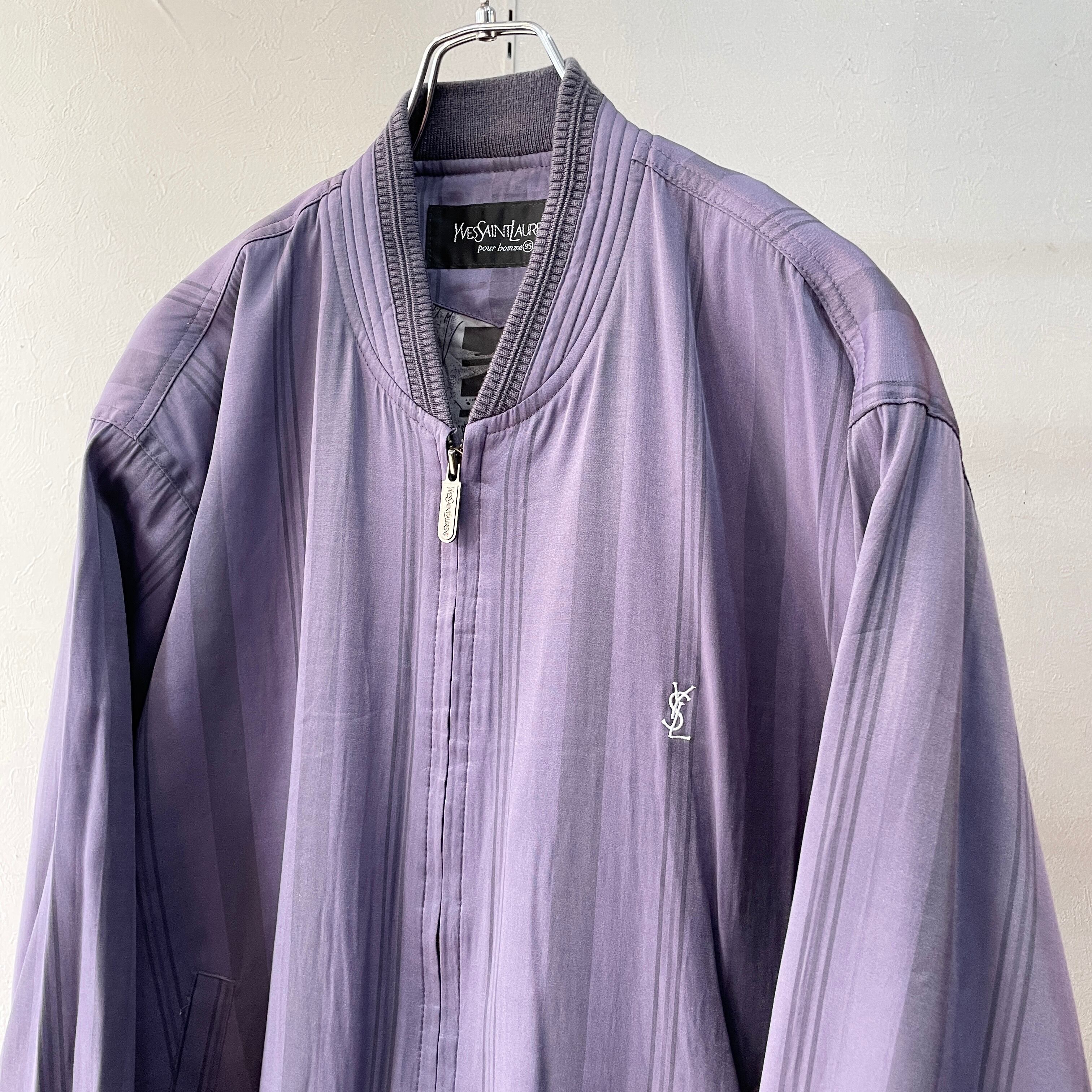 90s イヴサンローラン ストライプボンバージャケット パープル L程度