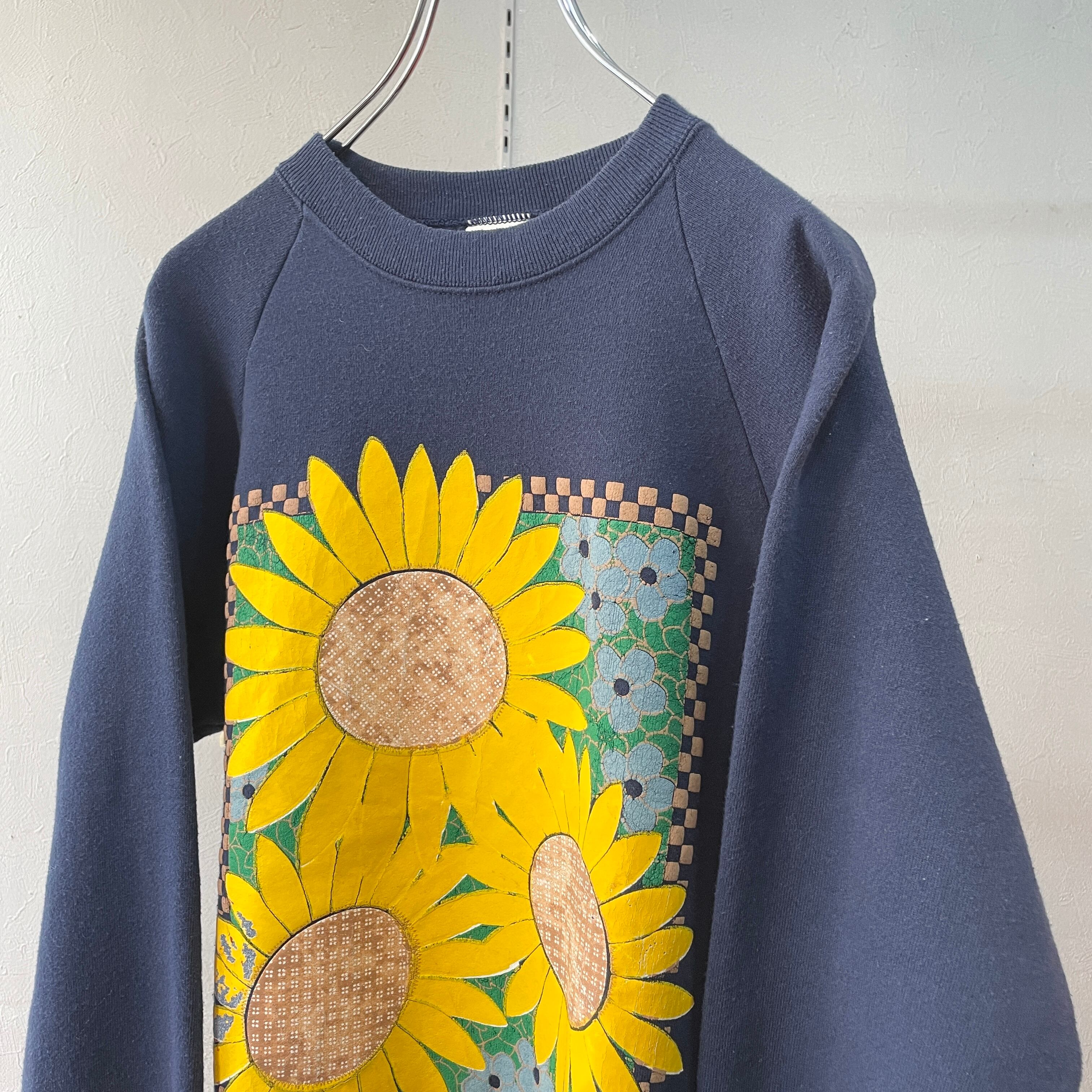 80s サンフラワースエット フルーツオブザルーム ネイビー M