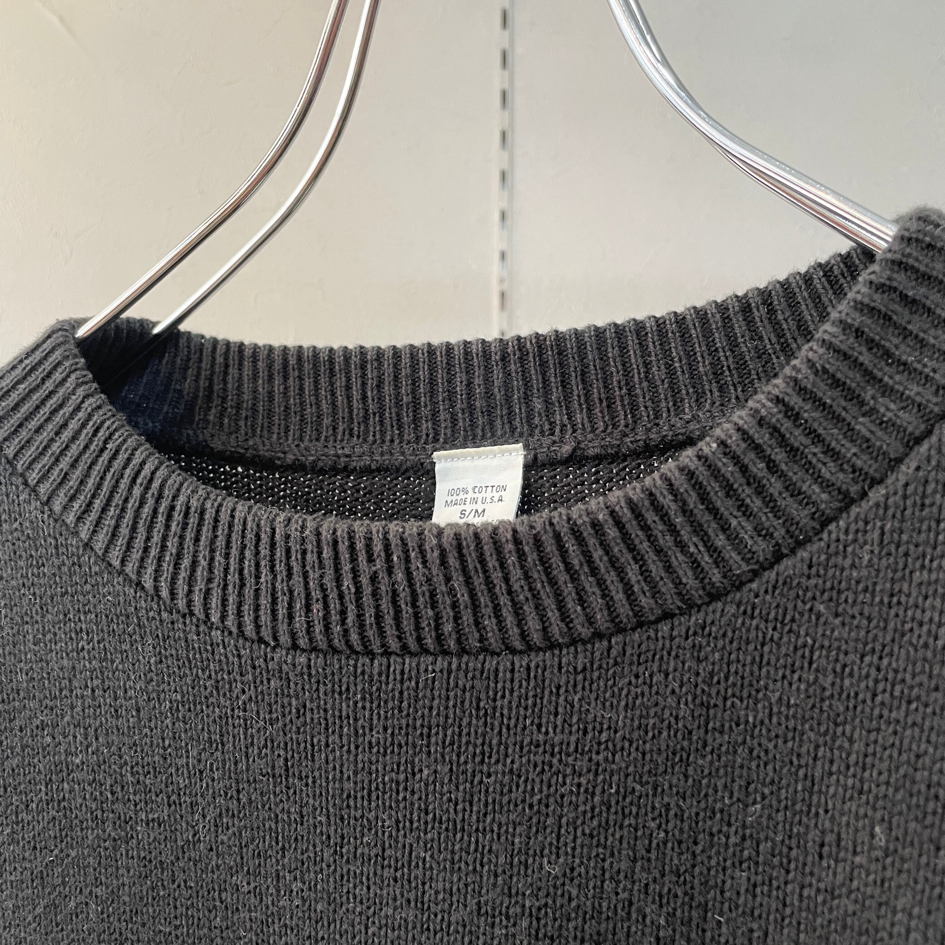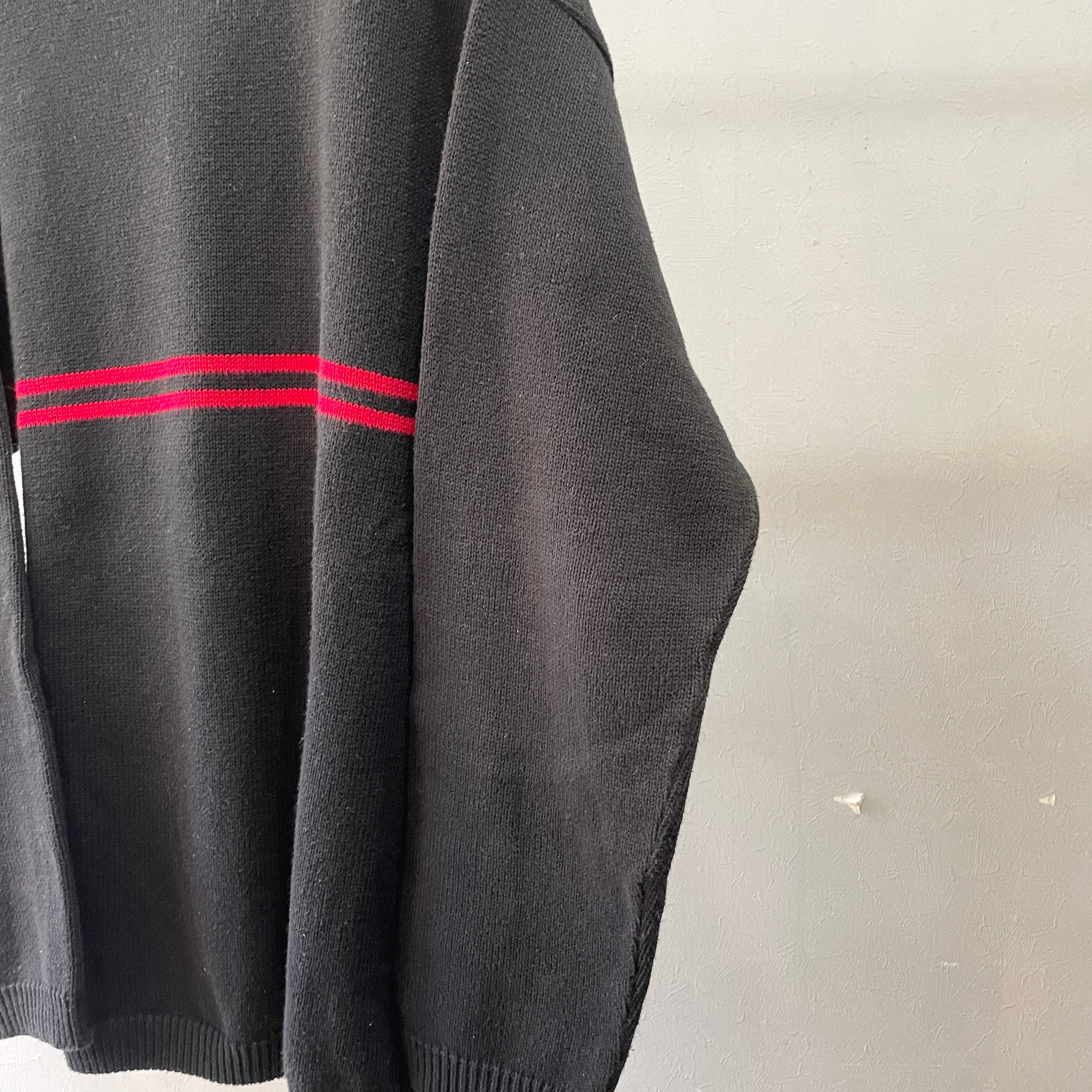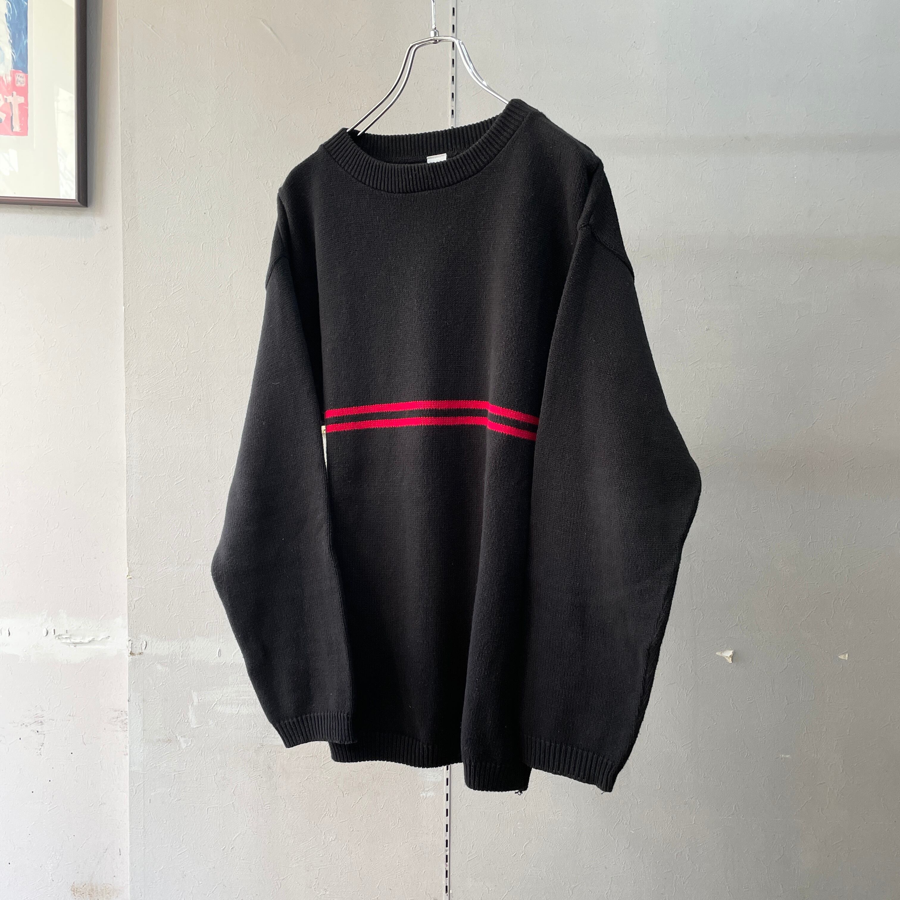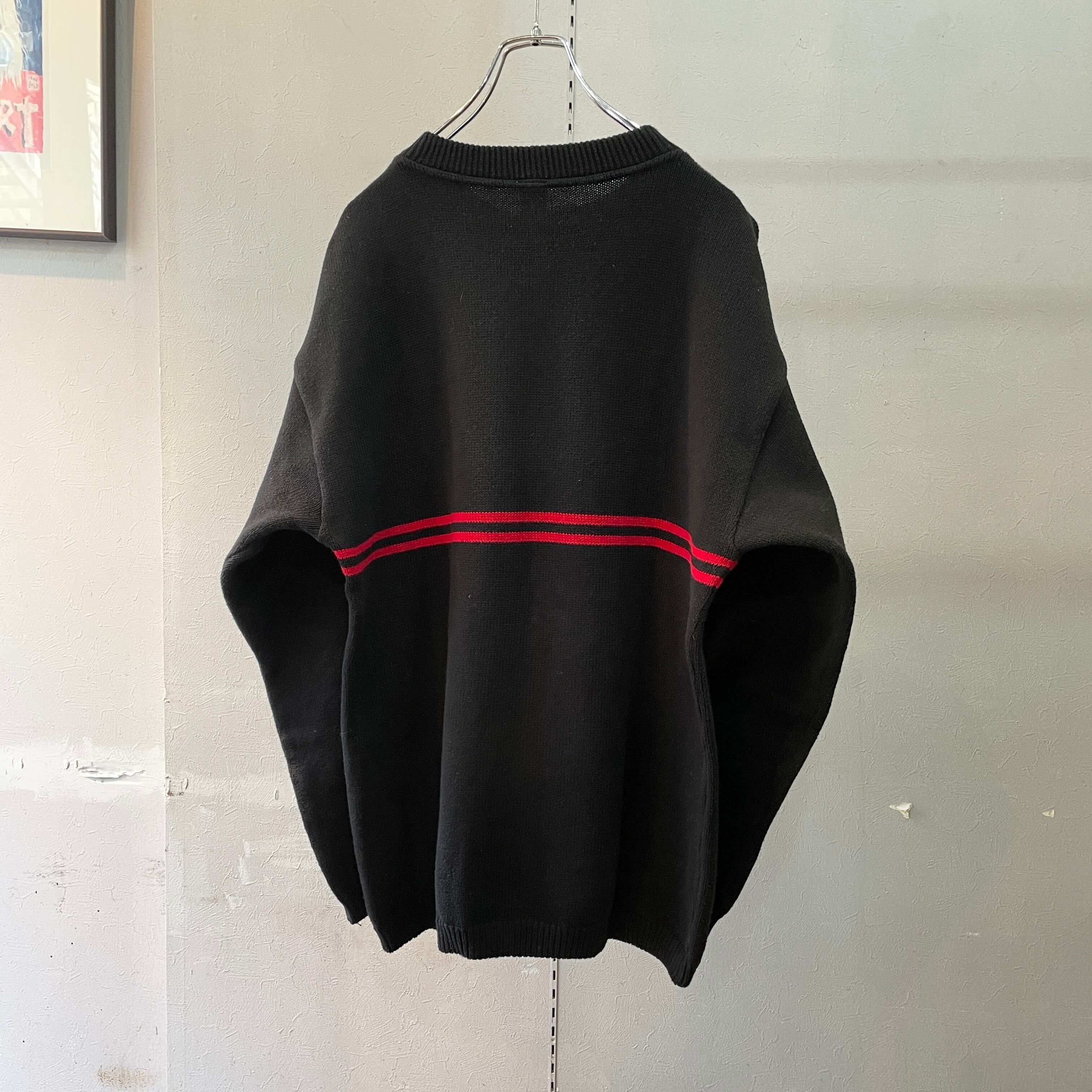 90s アメリカ製 コットンニット ブラック×レッド S