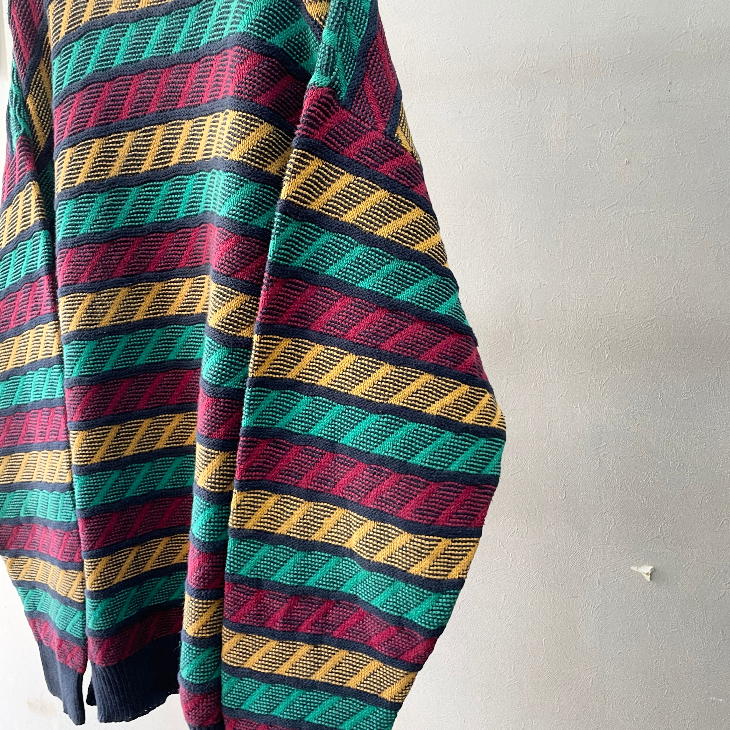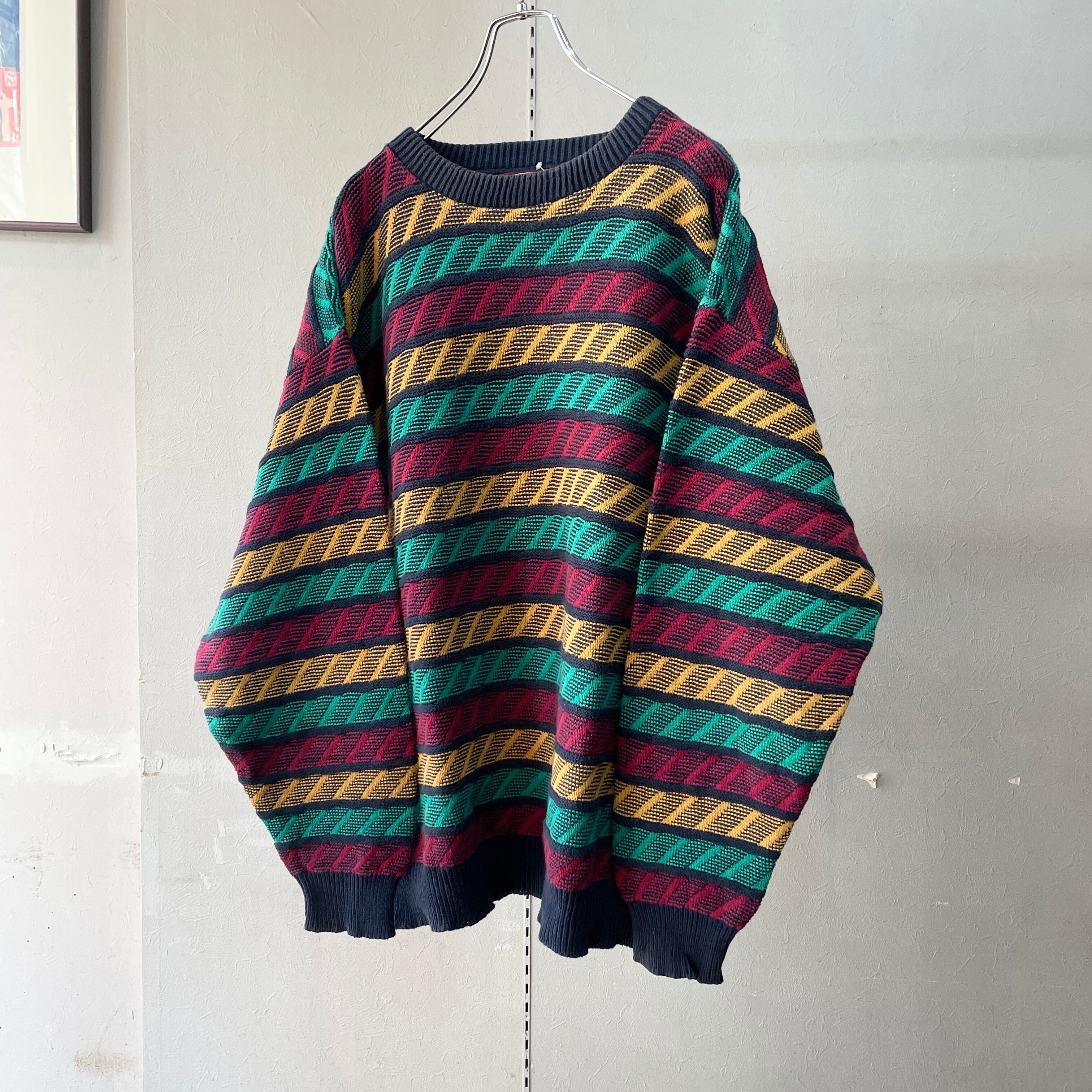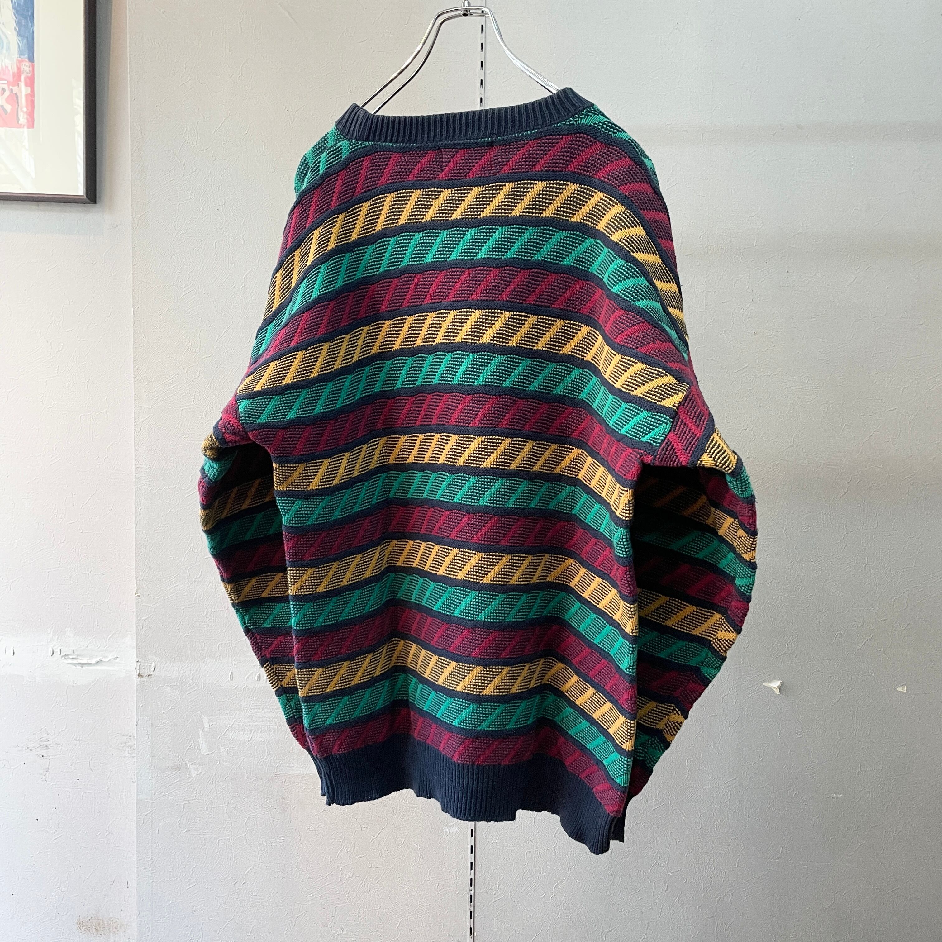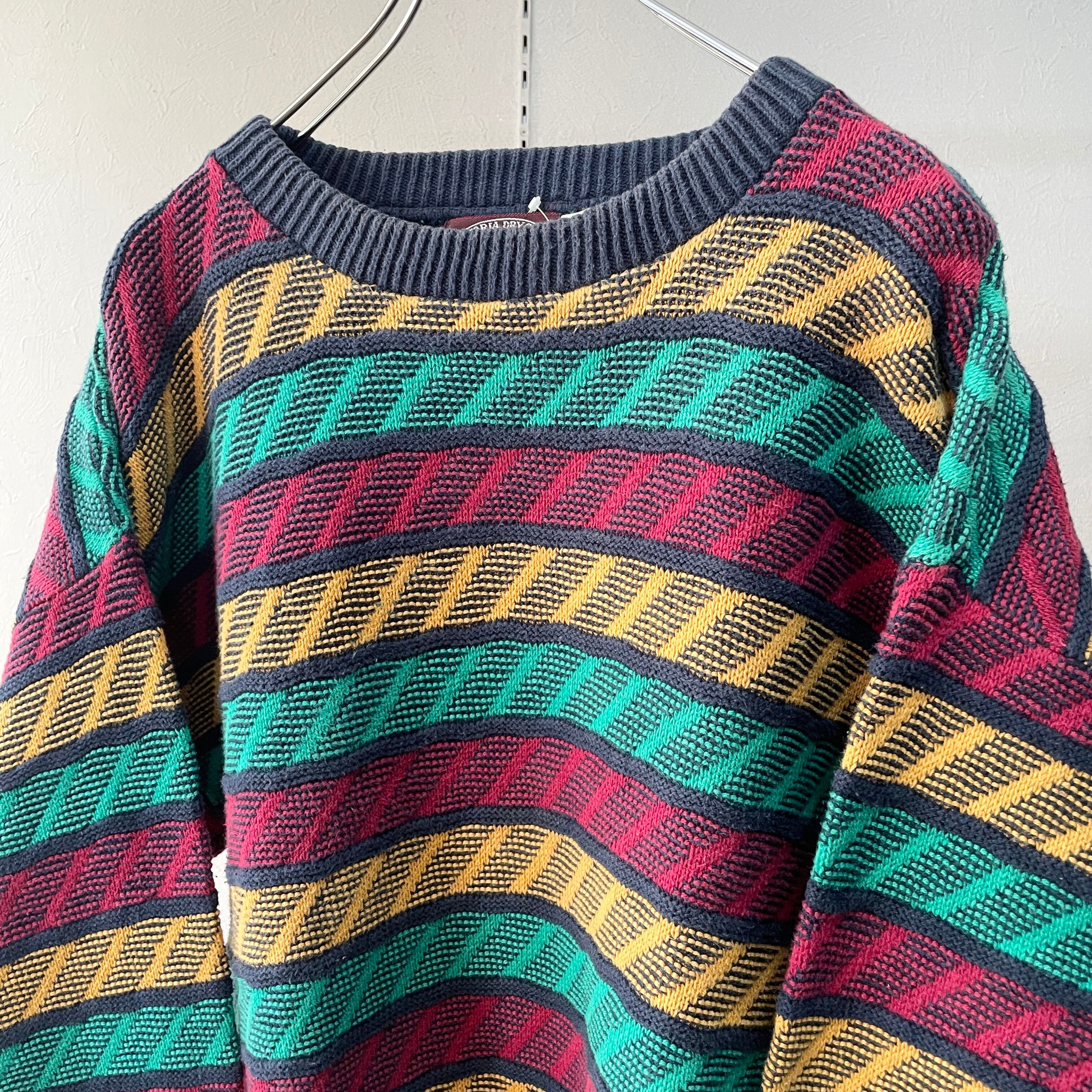 90s アメリカ製 ボーダーコットンニット マルチカラー M