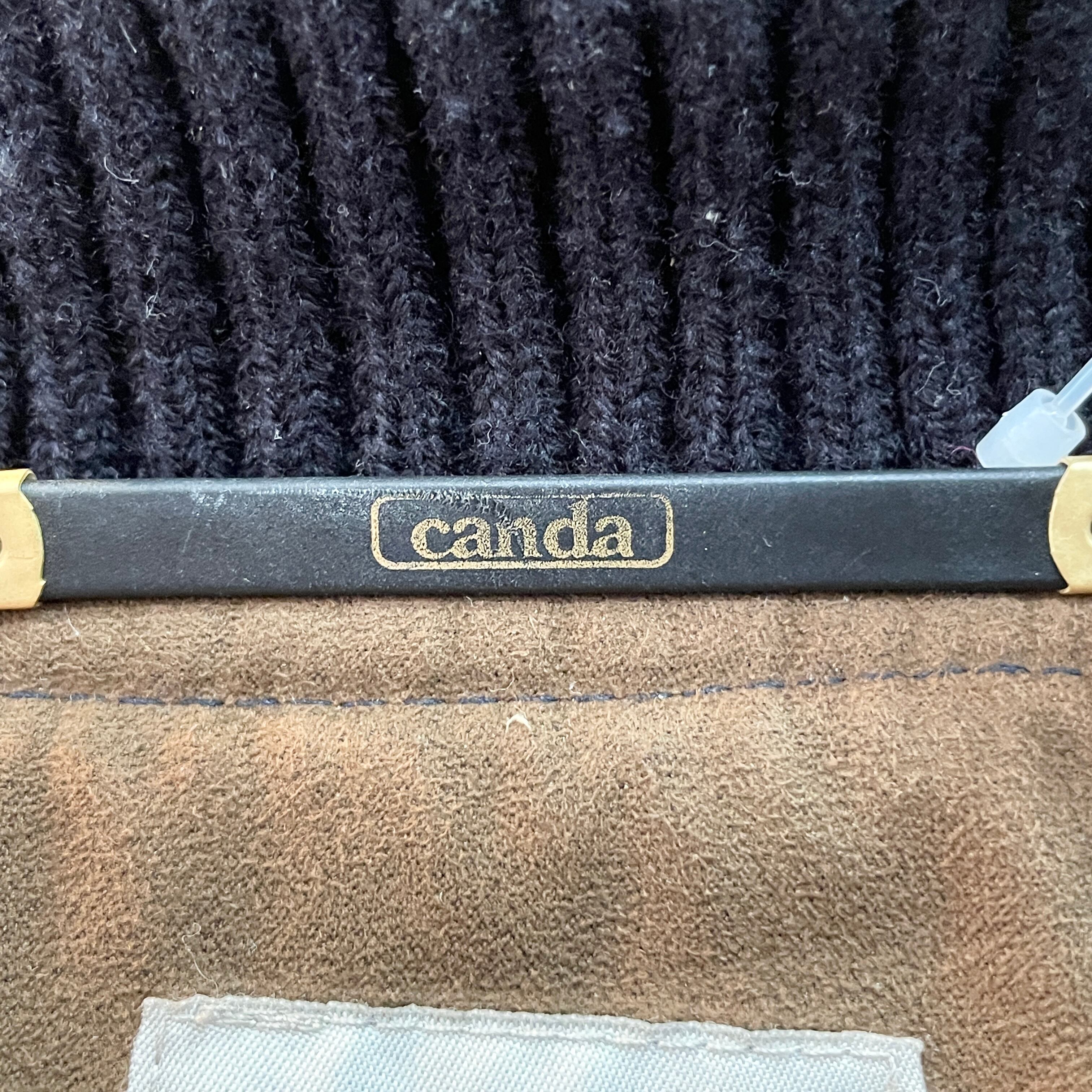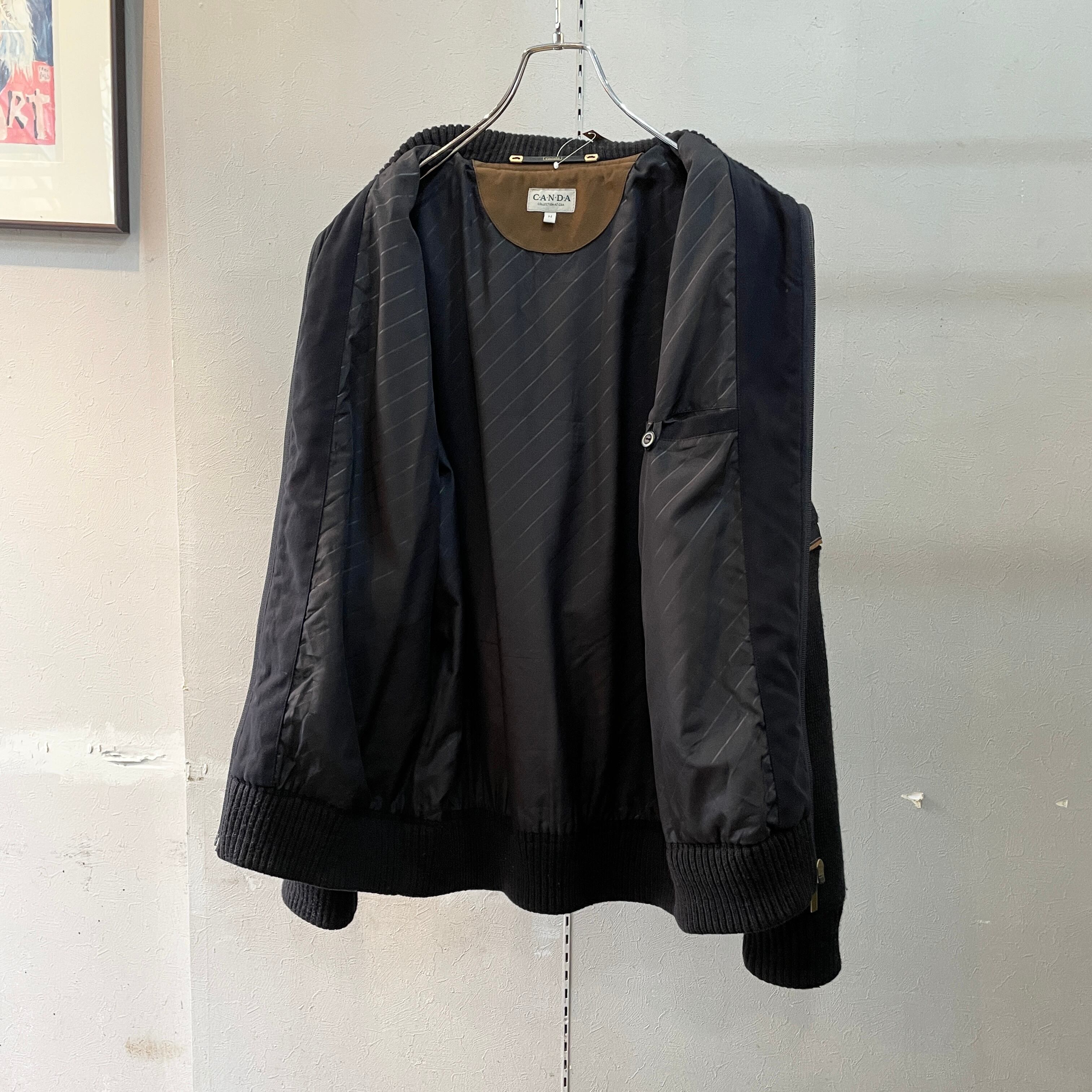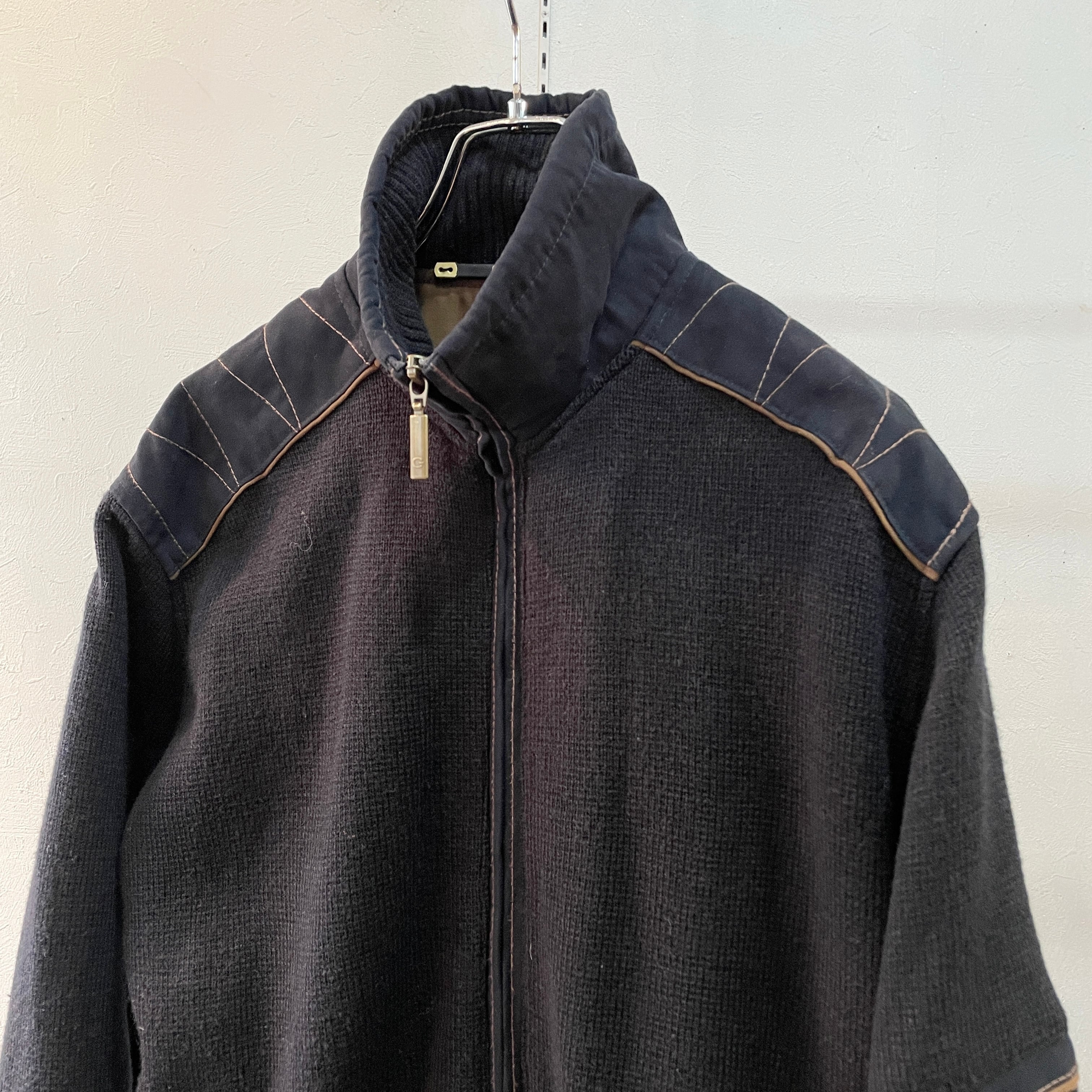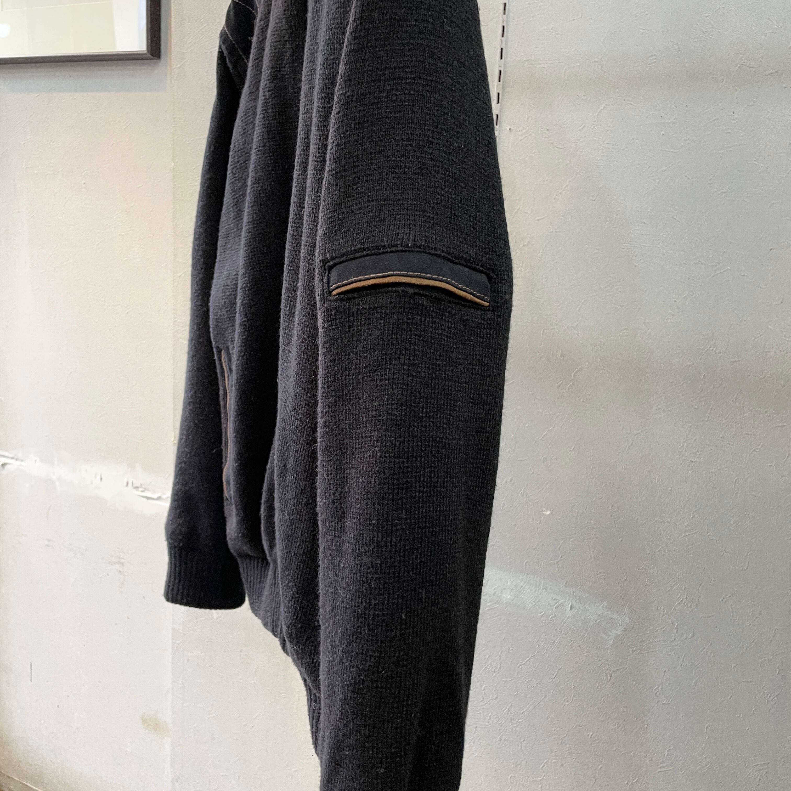 90s canda ドライバーズニット フェイクスエード切替 ネイビー M