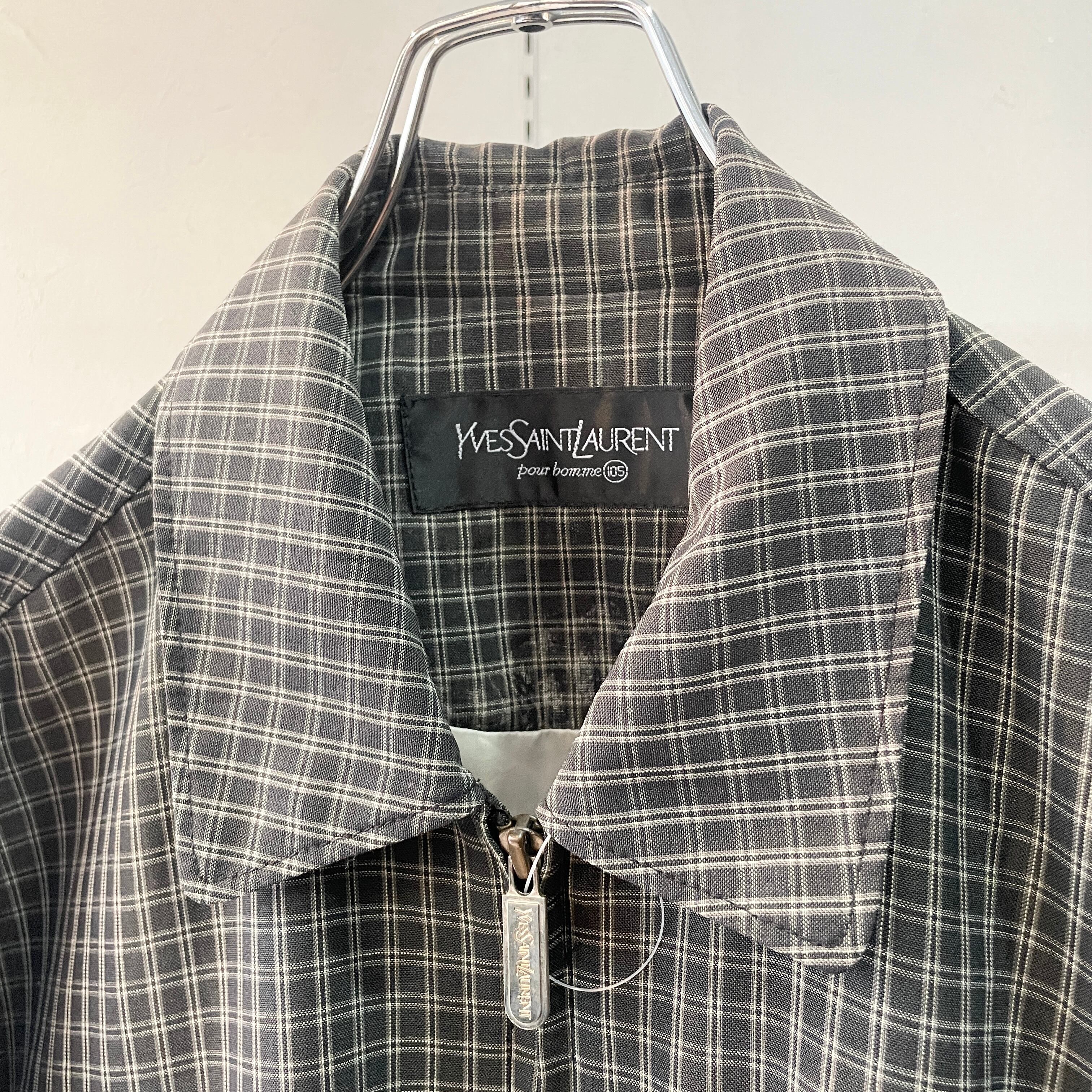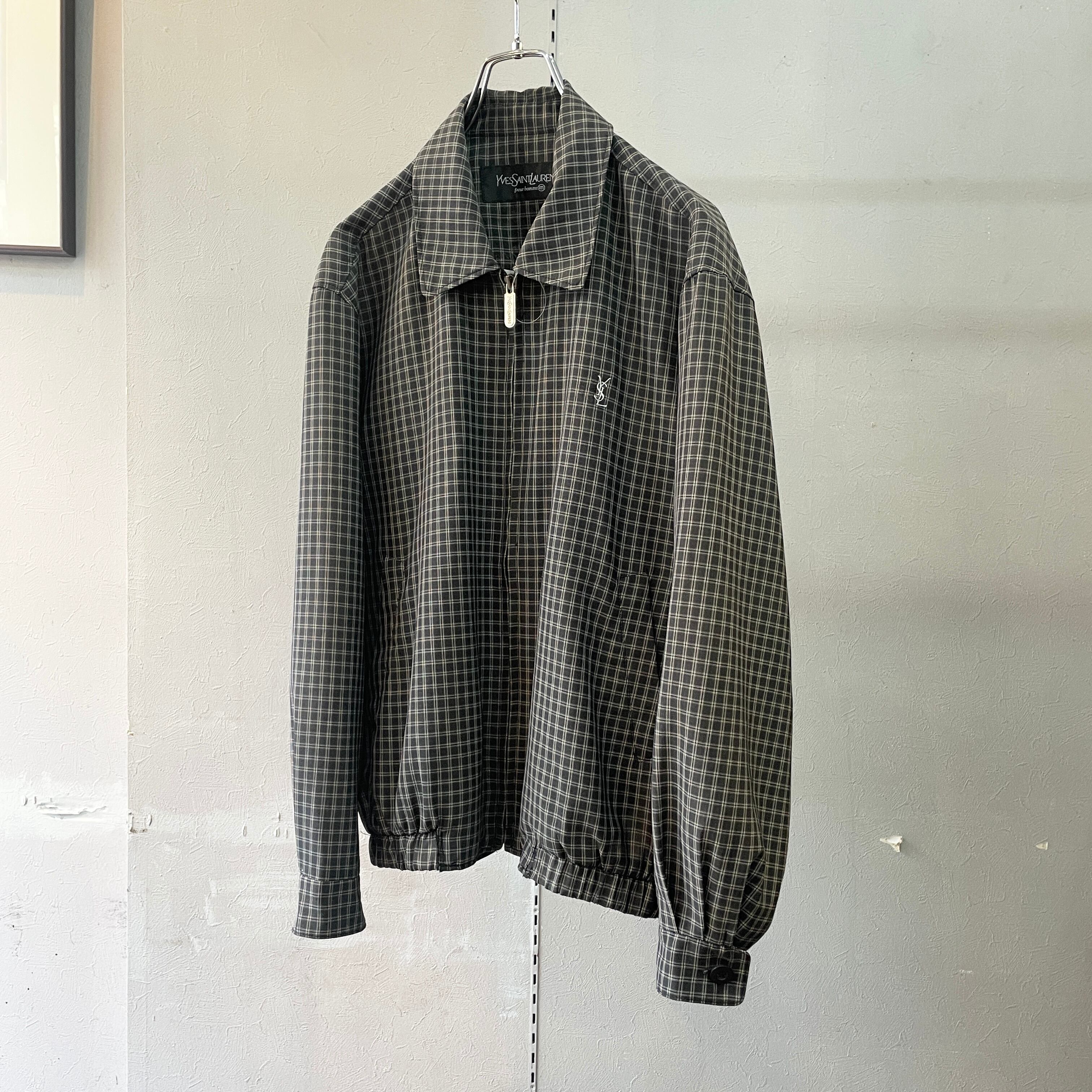 90s イヴサンローラン チェック柄ドリズラージャケット スイングトップ L程度