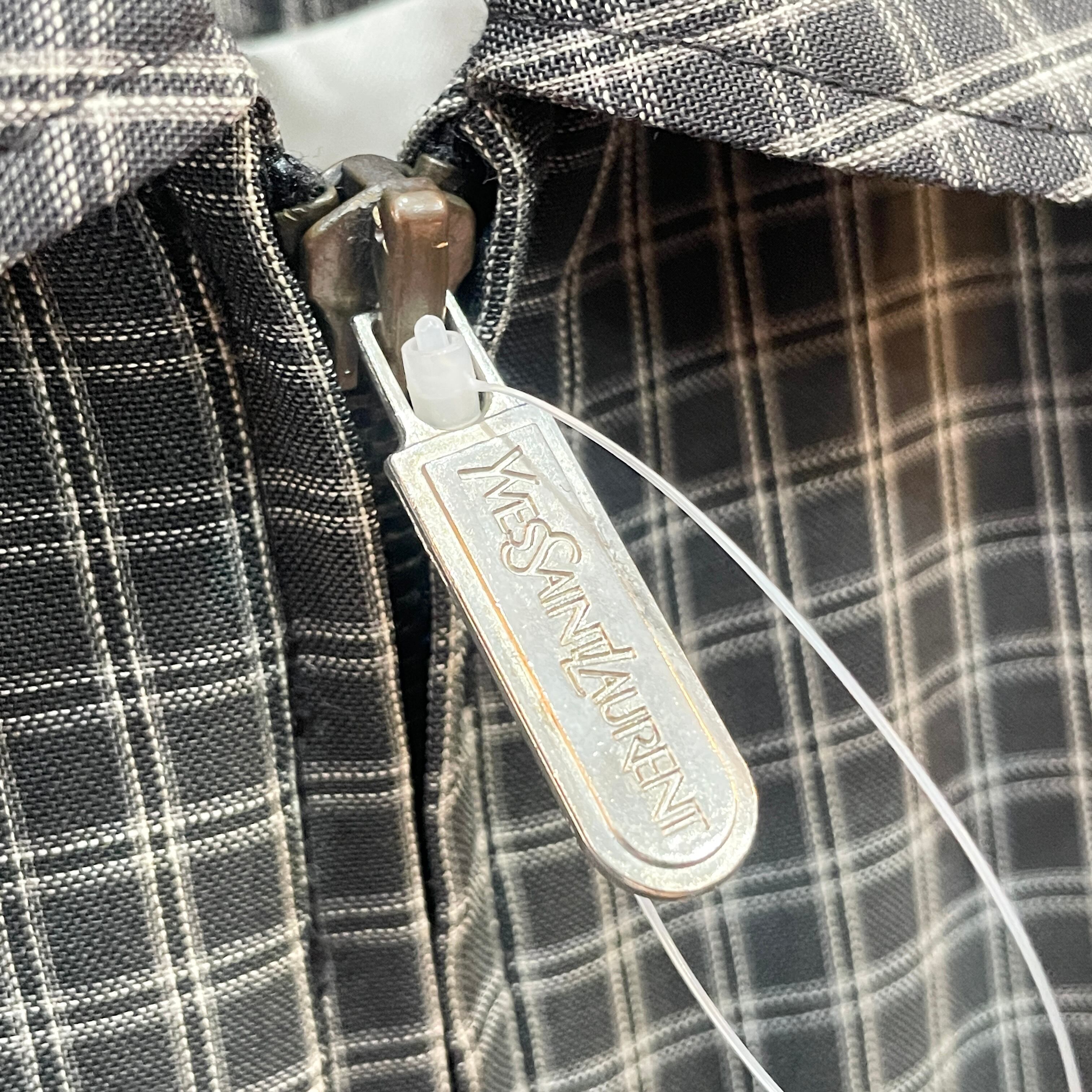 90s イヴサンローラン チェック柄ドリズラージャケット ブラックベース L程度