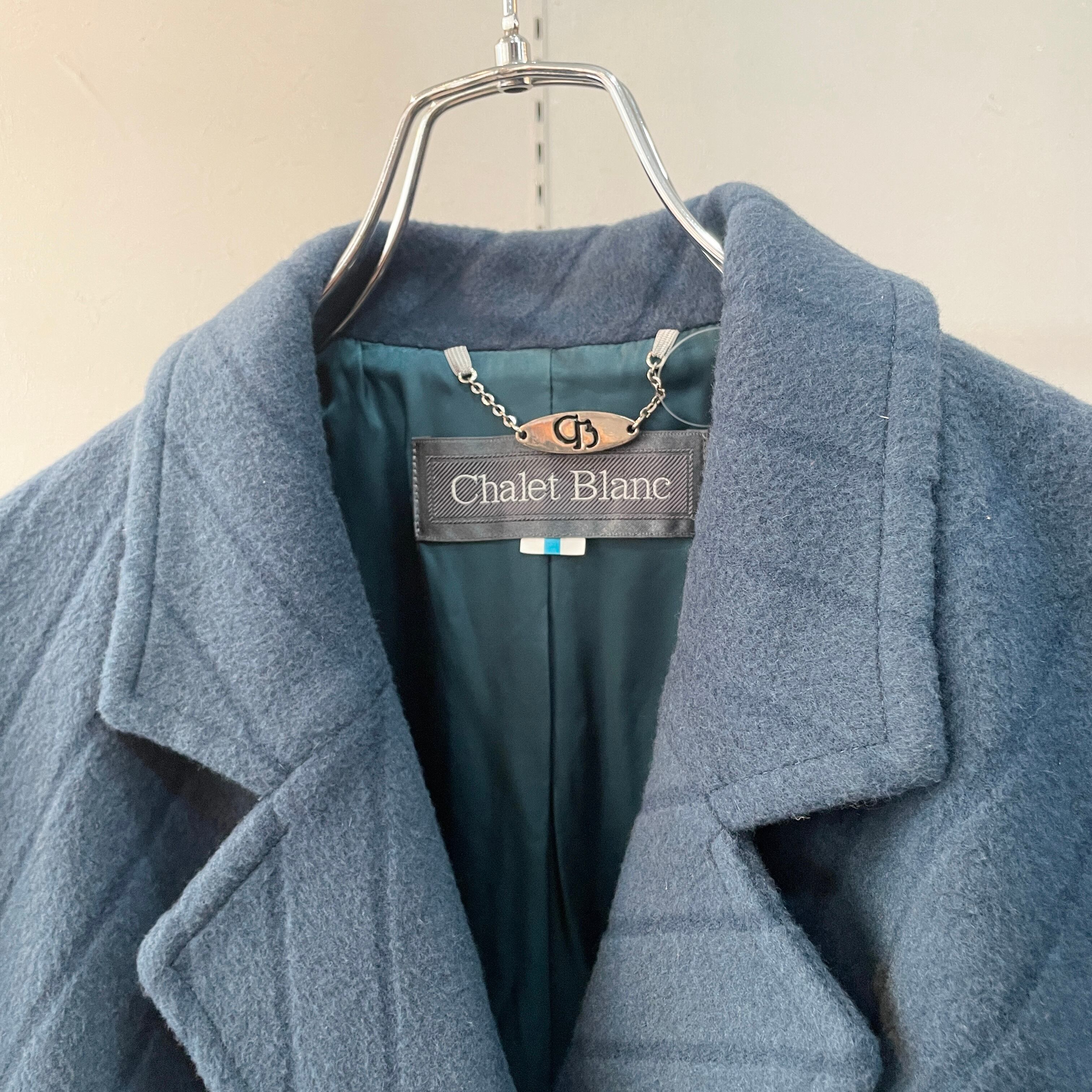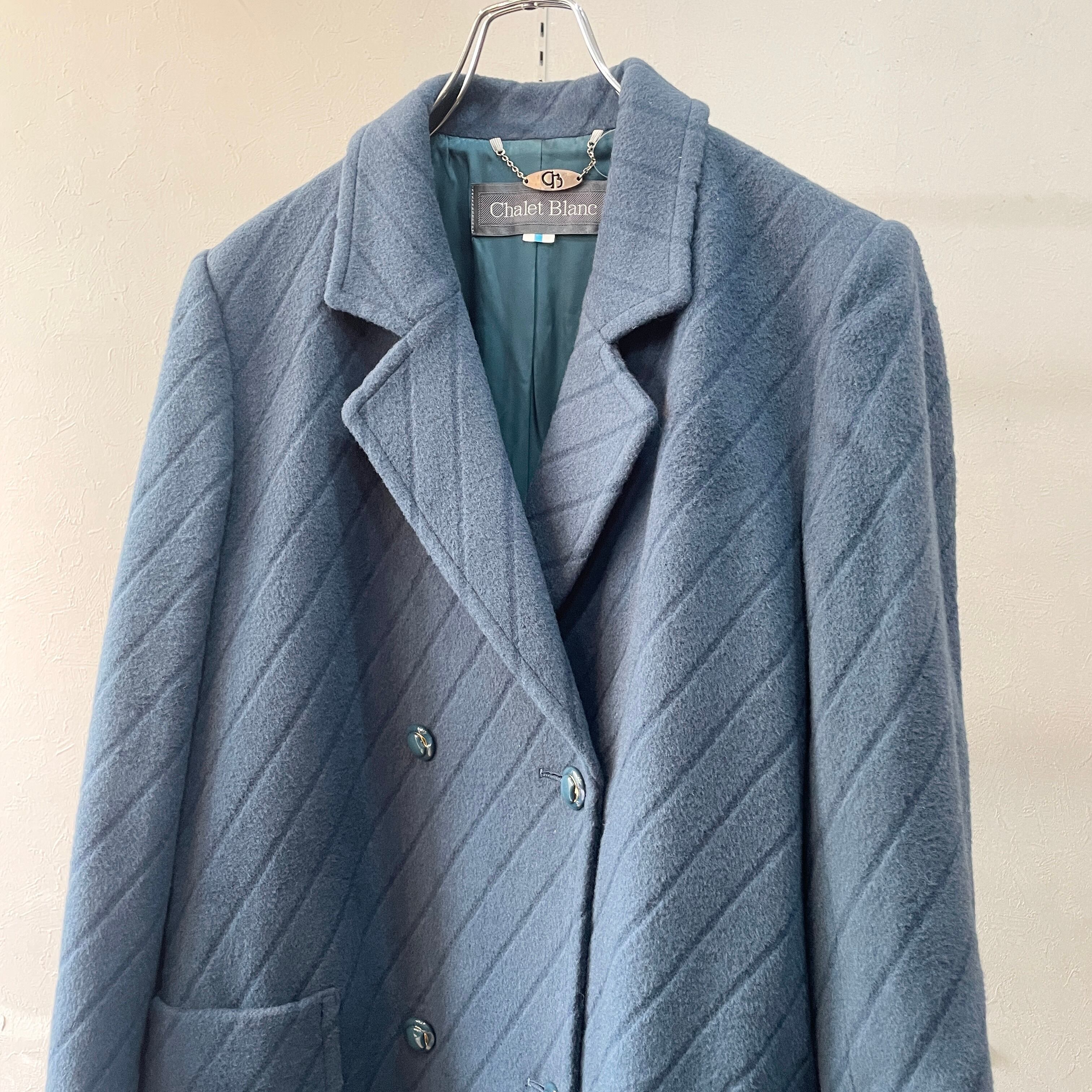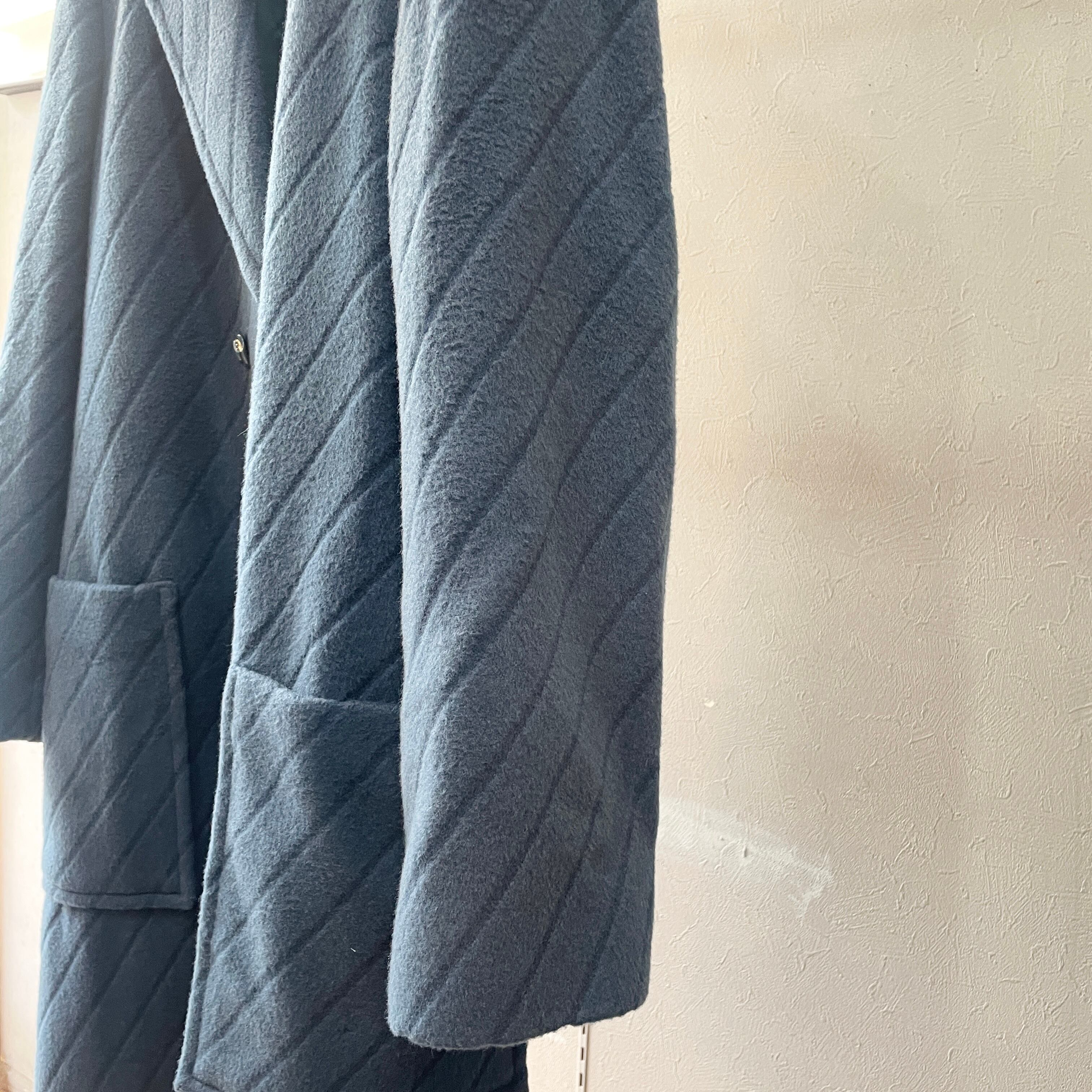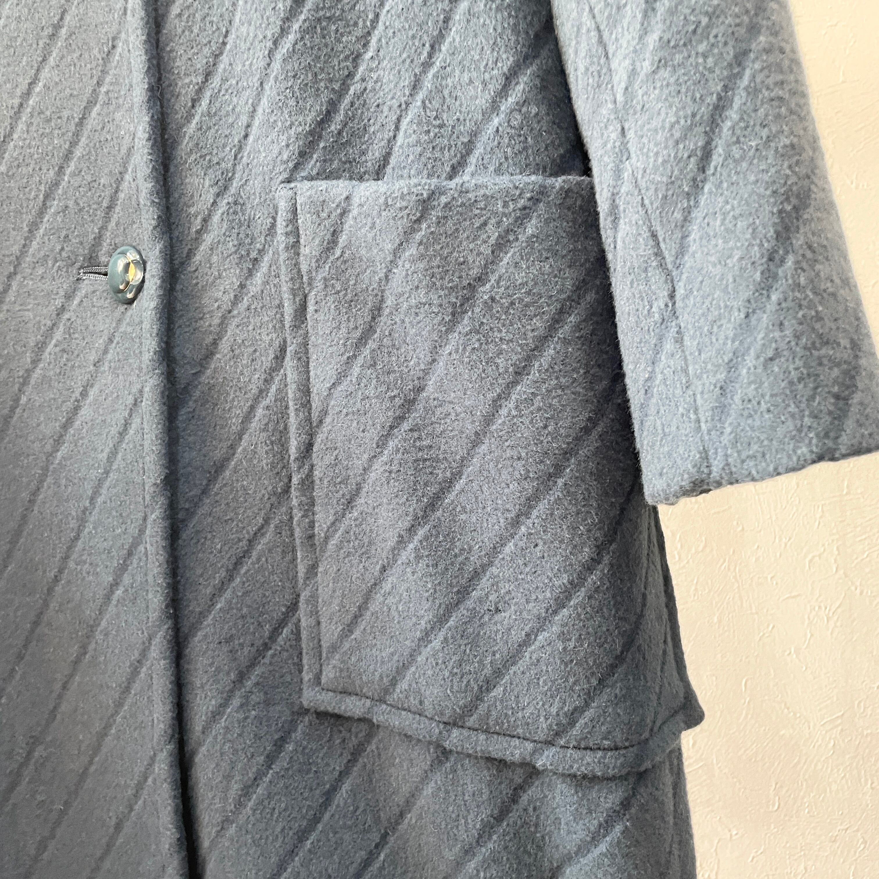 90s バイアスチェスターコート スモークブルー ウール M程度