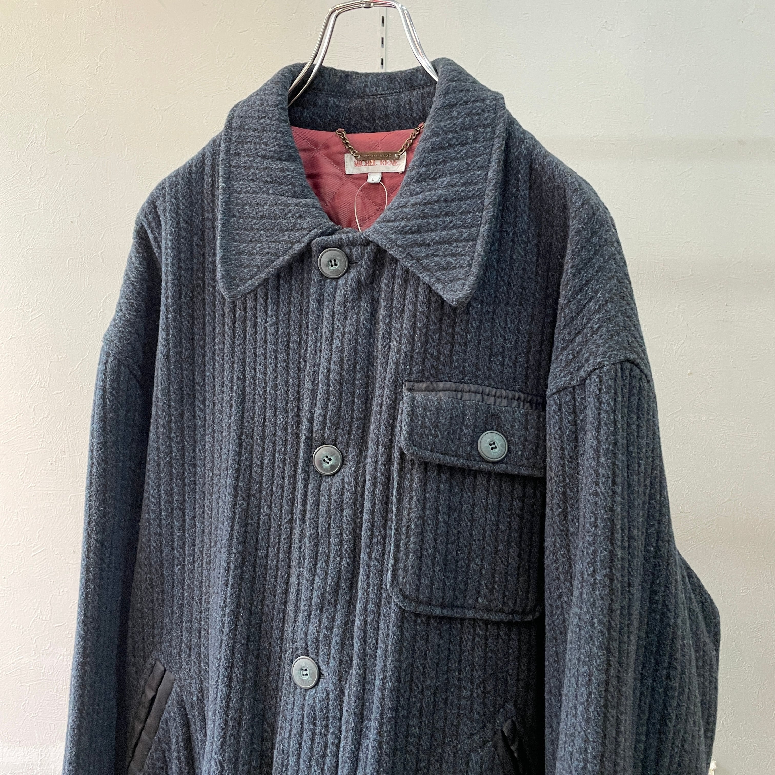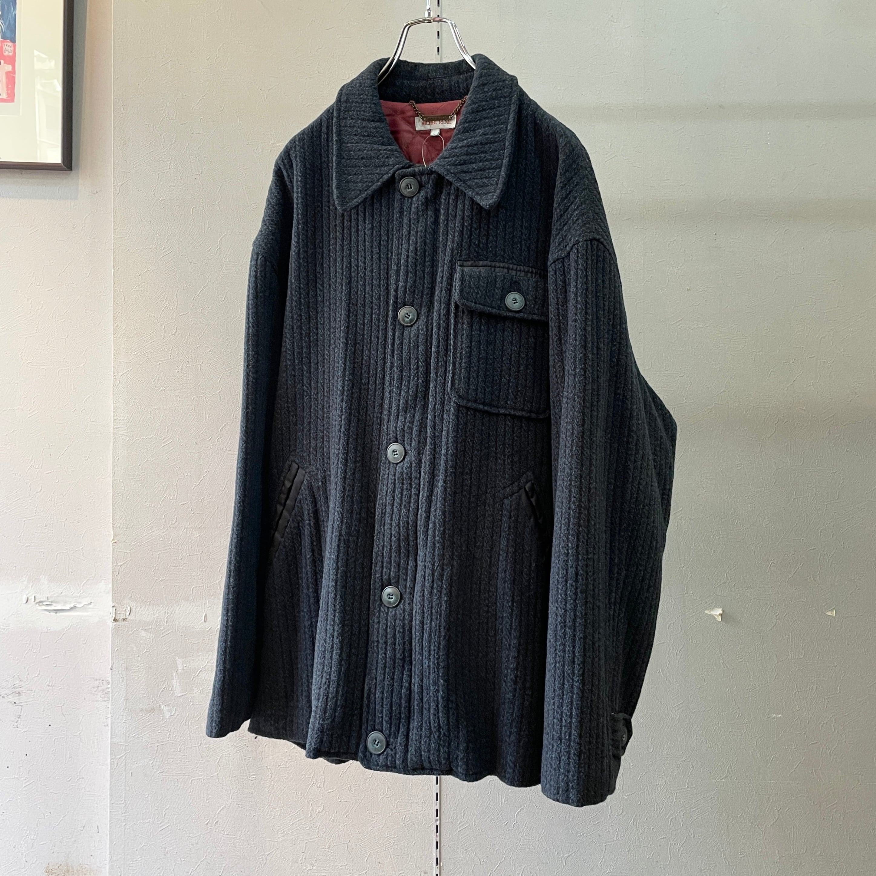 90s ウールフリースハーフコート ネイビー L