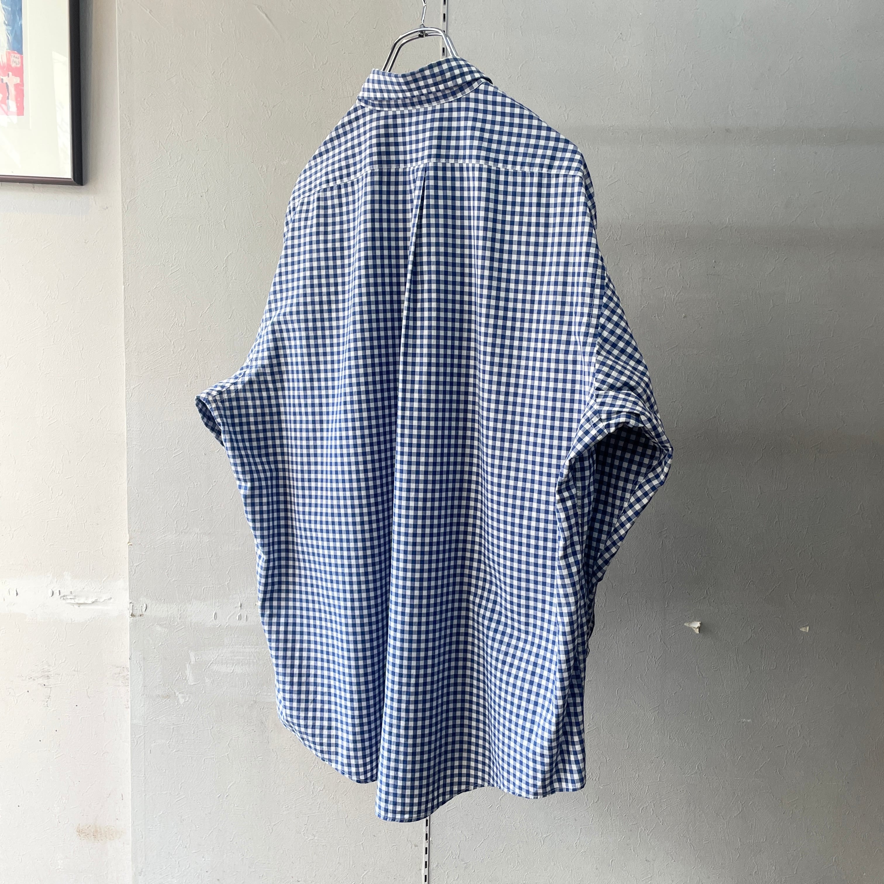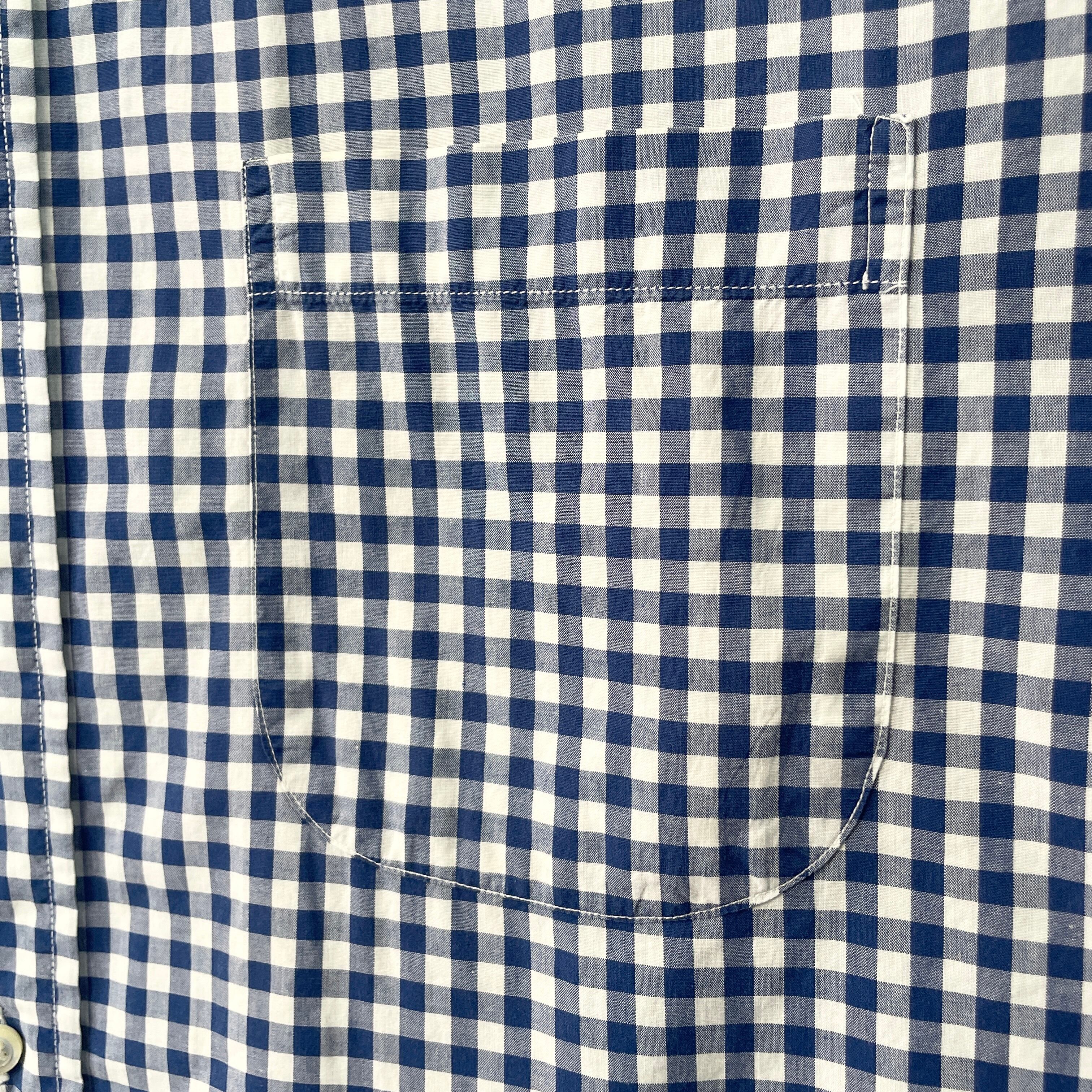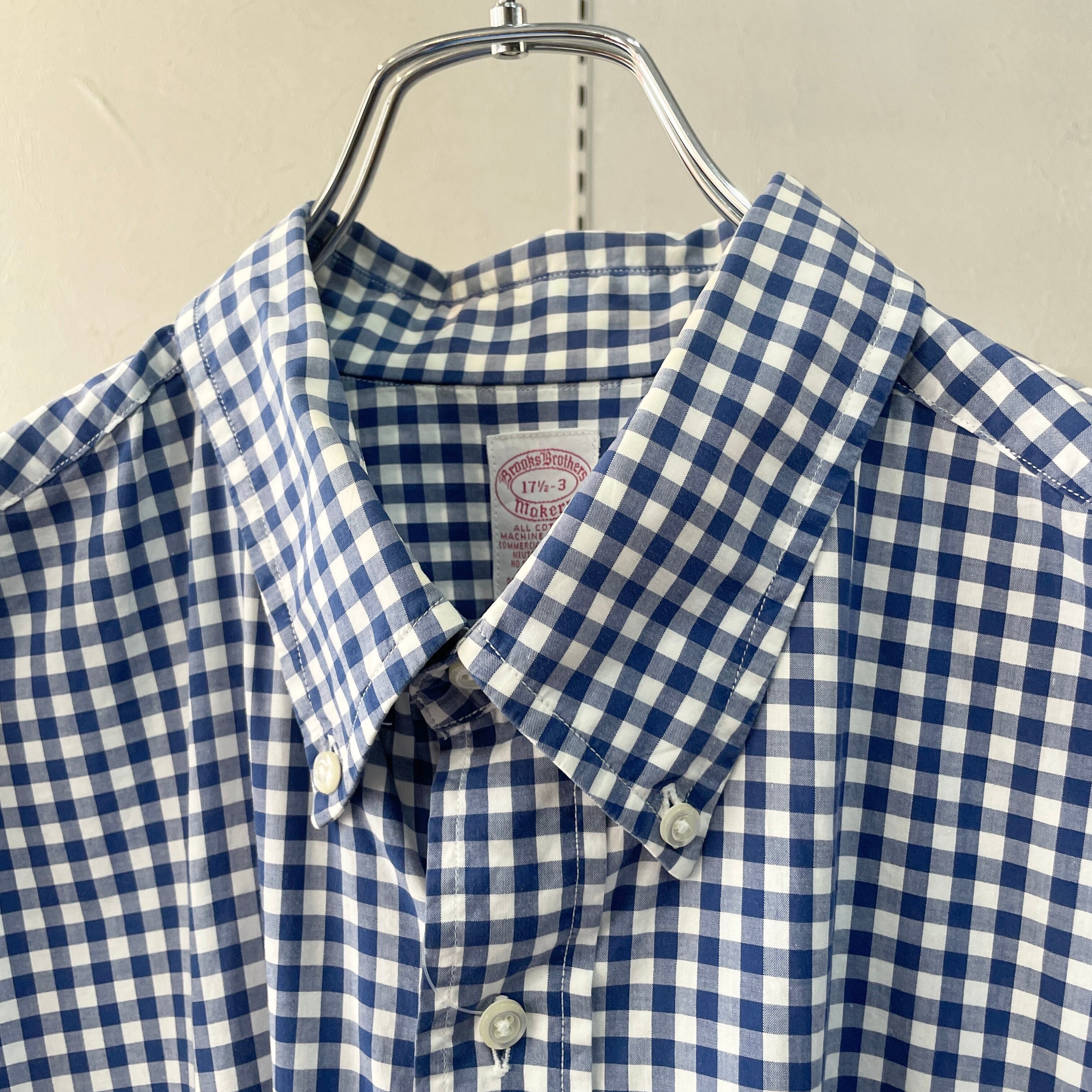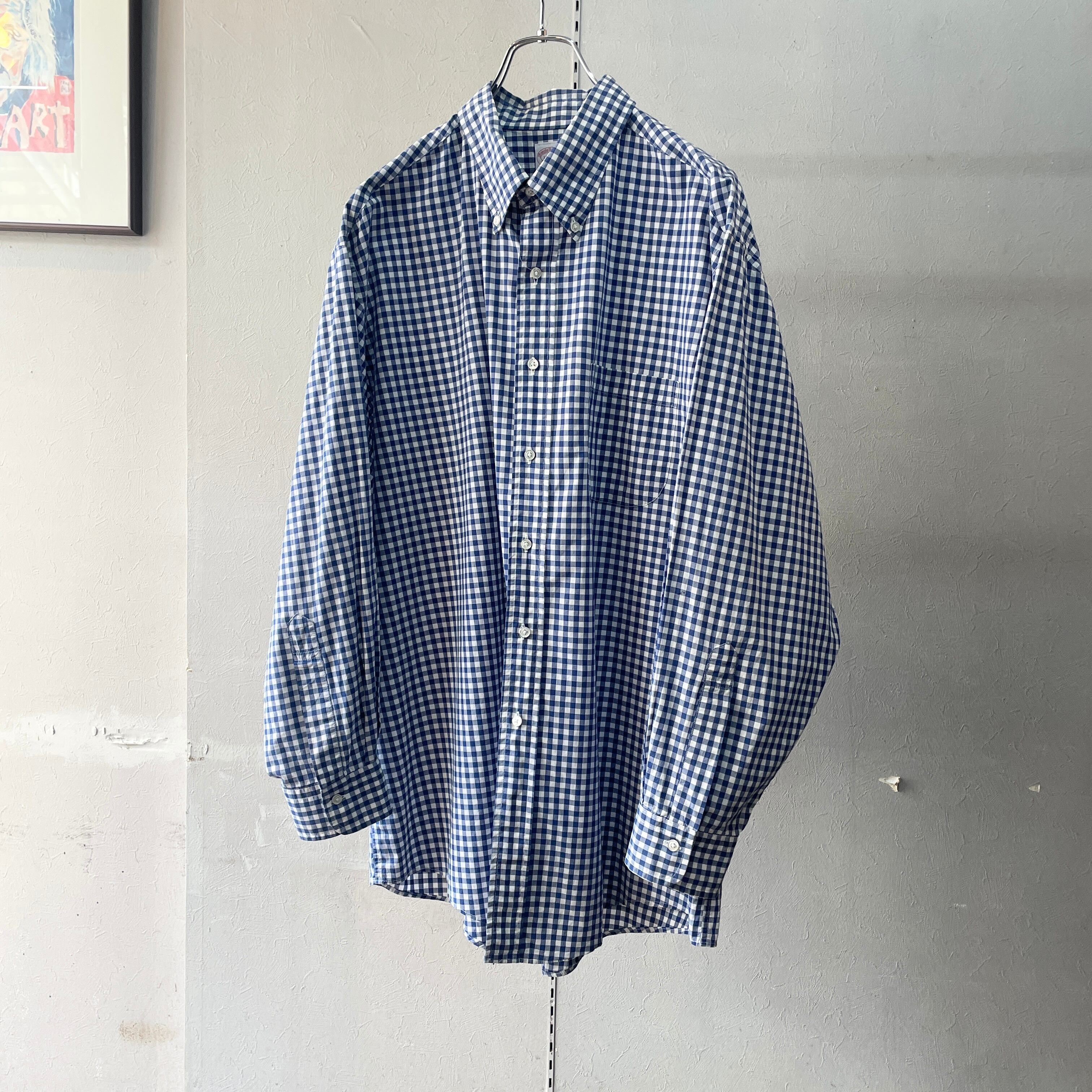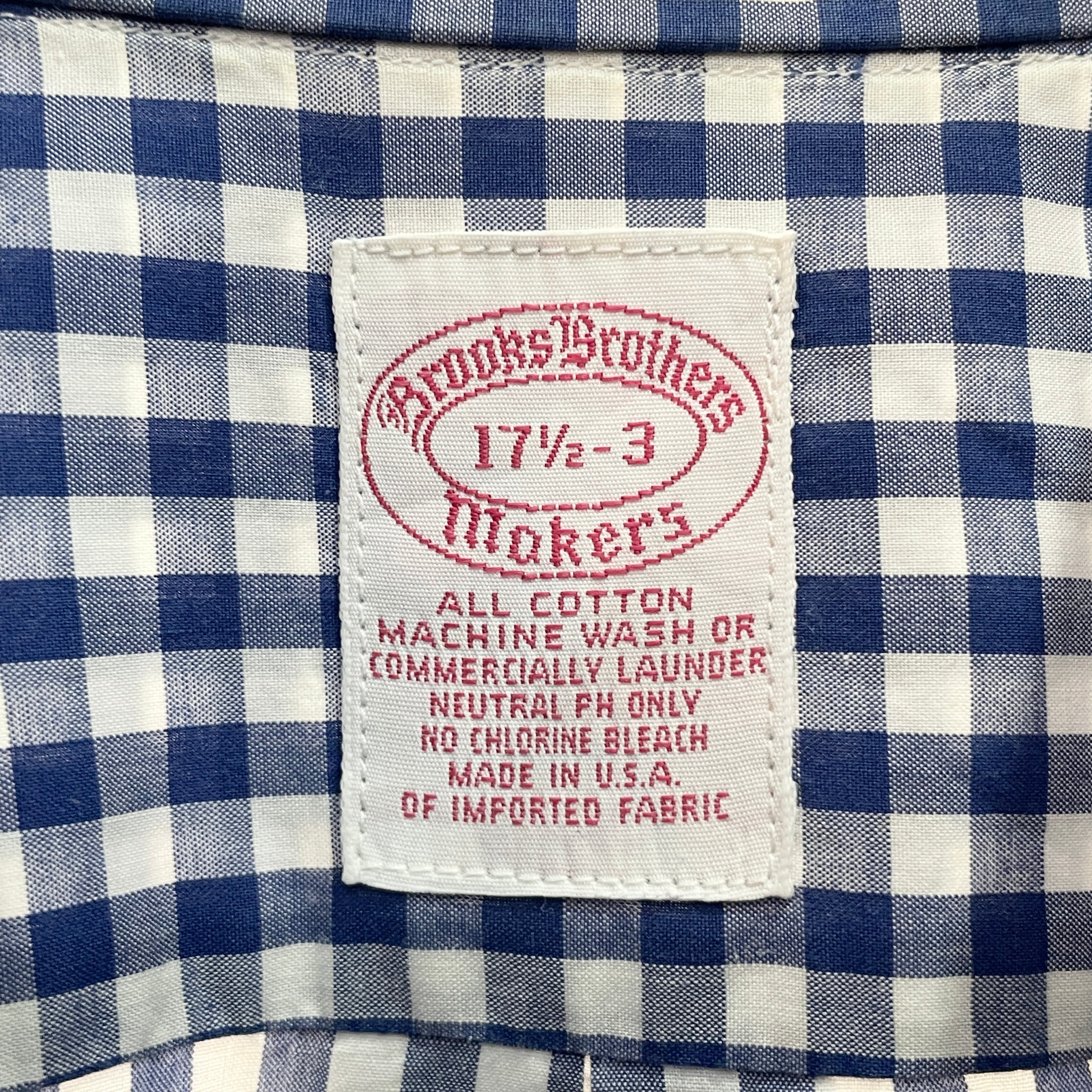 80s ブルックスブラザーズ メーカーズ ギンガムチェックシャツ ボタンダウンシャツ ブルー×ホワイト 17ハーフ