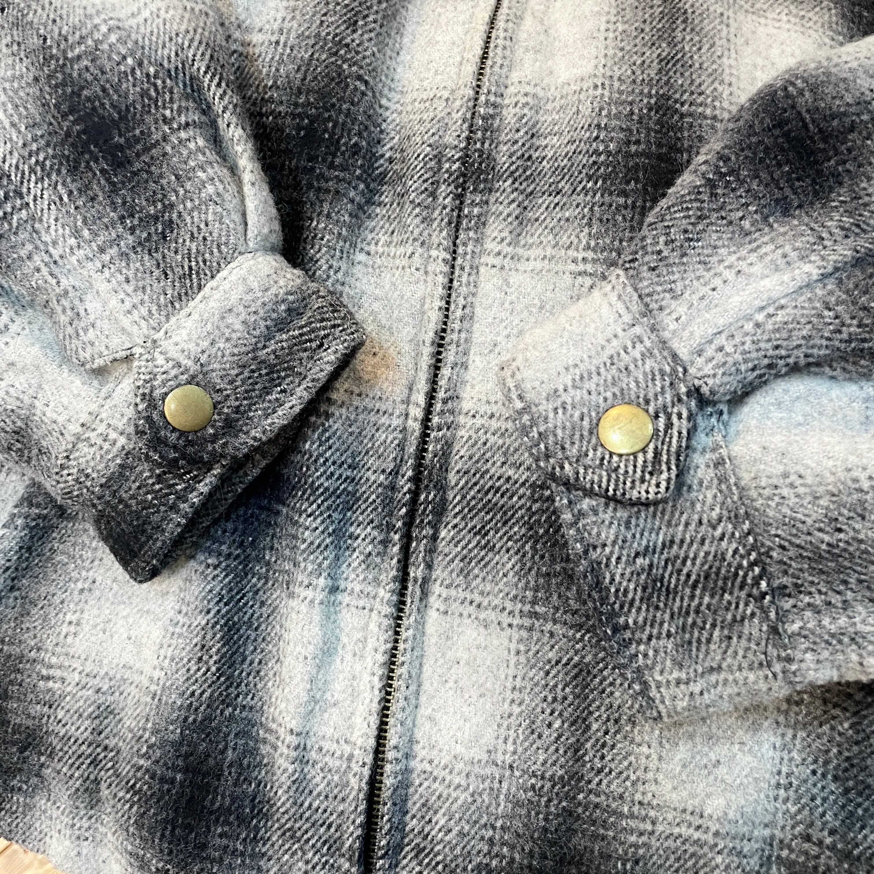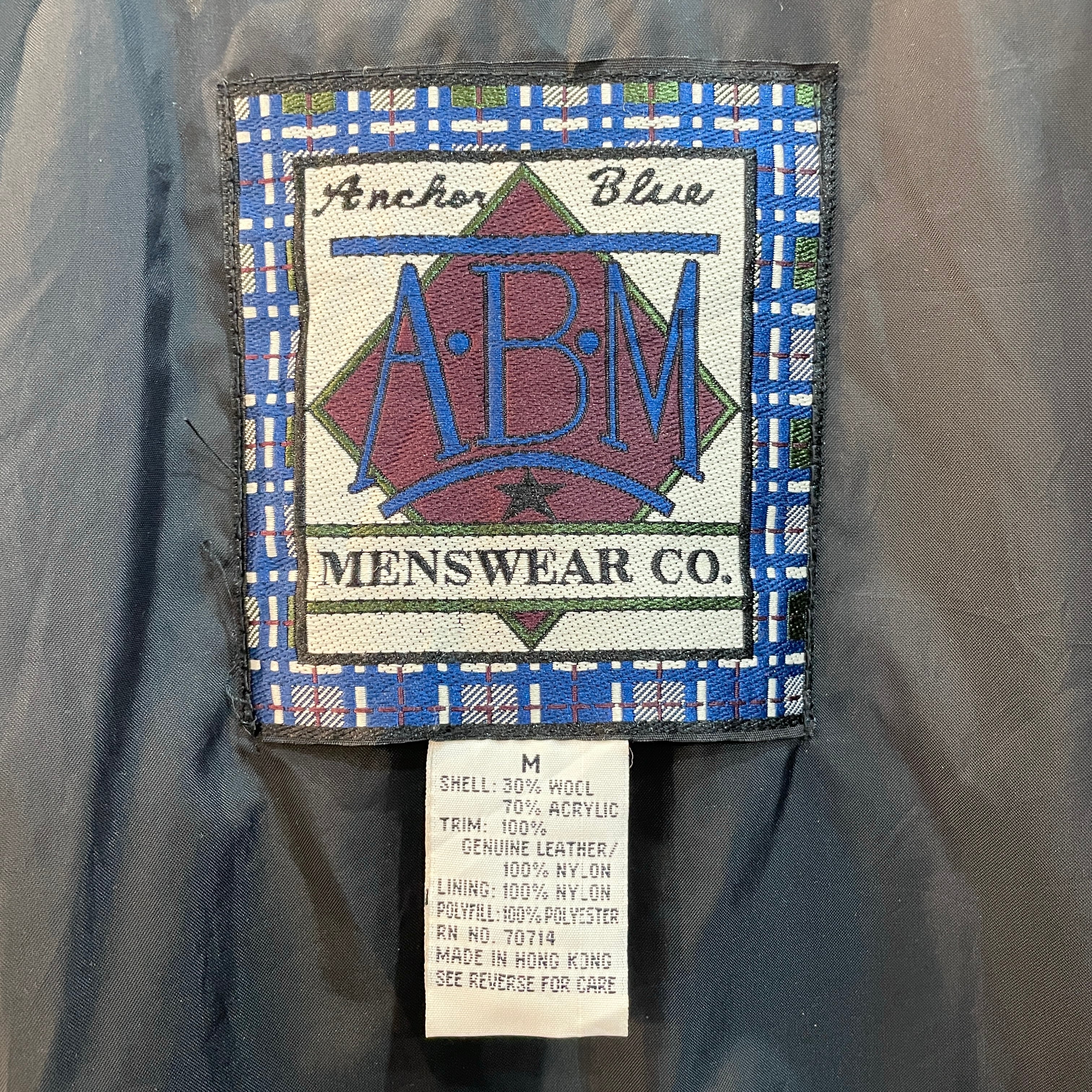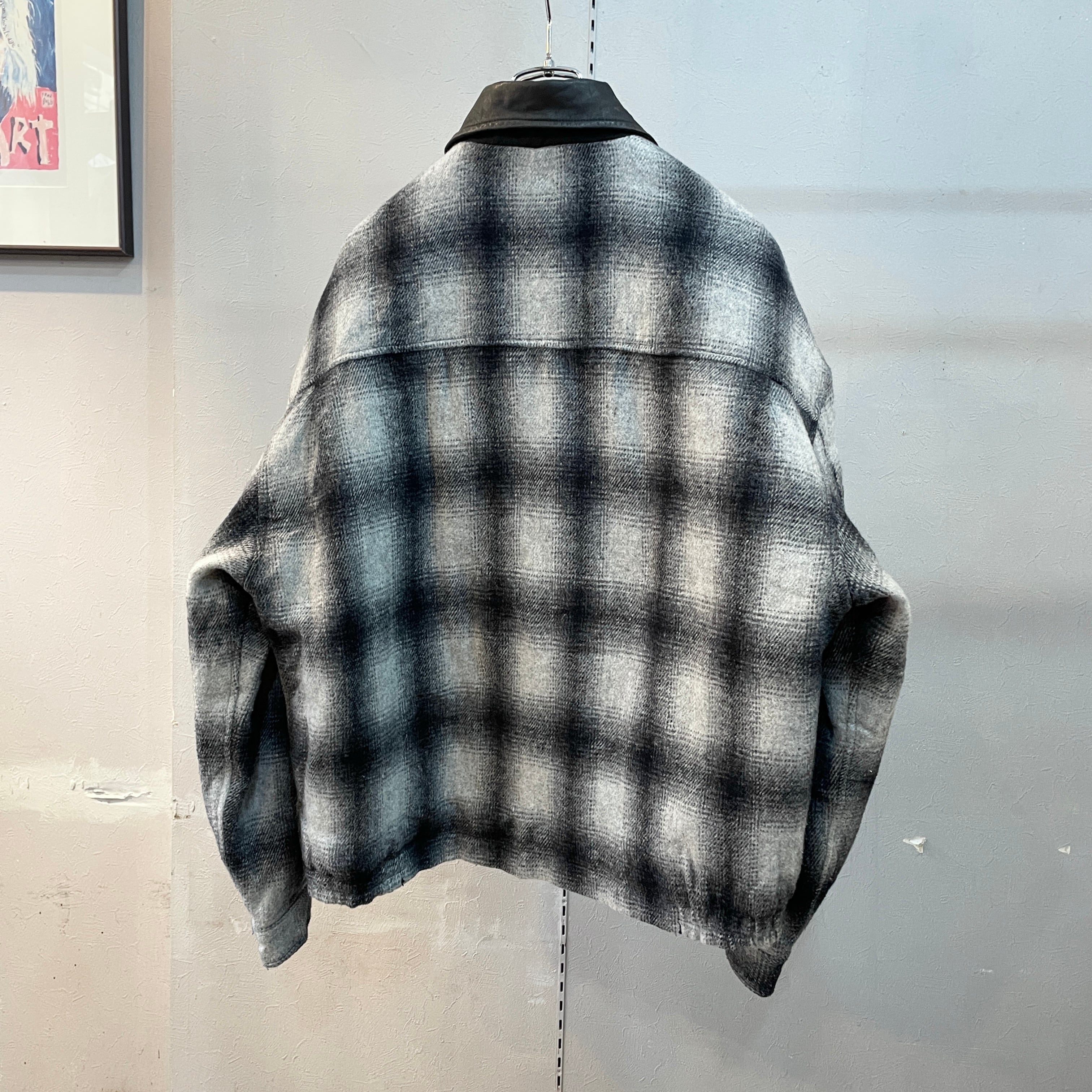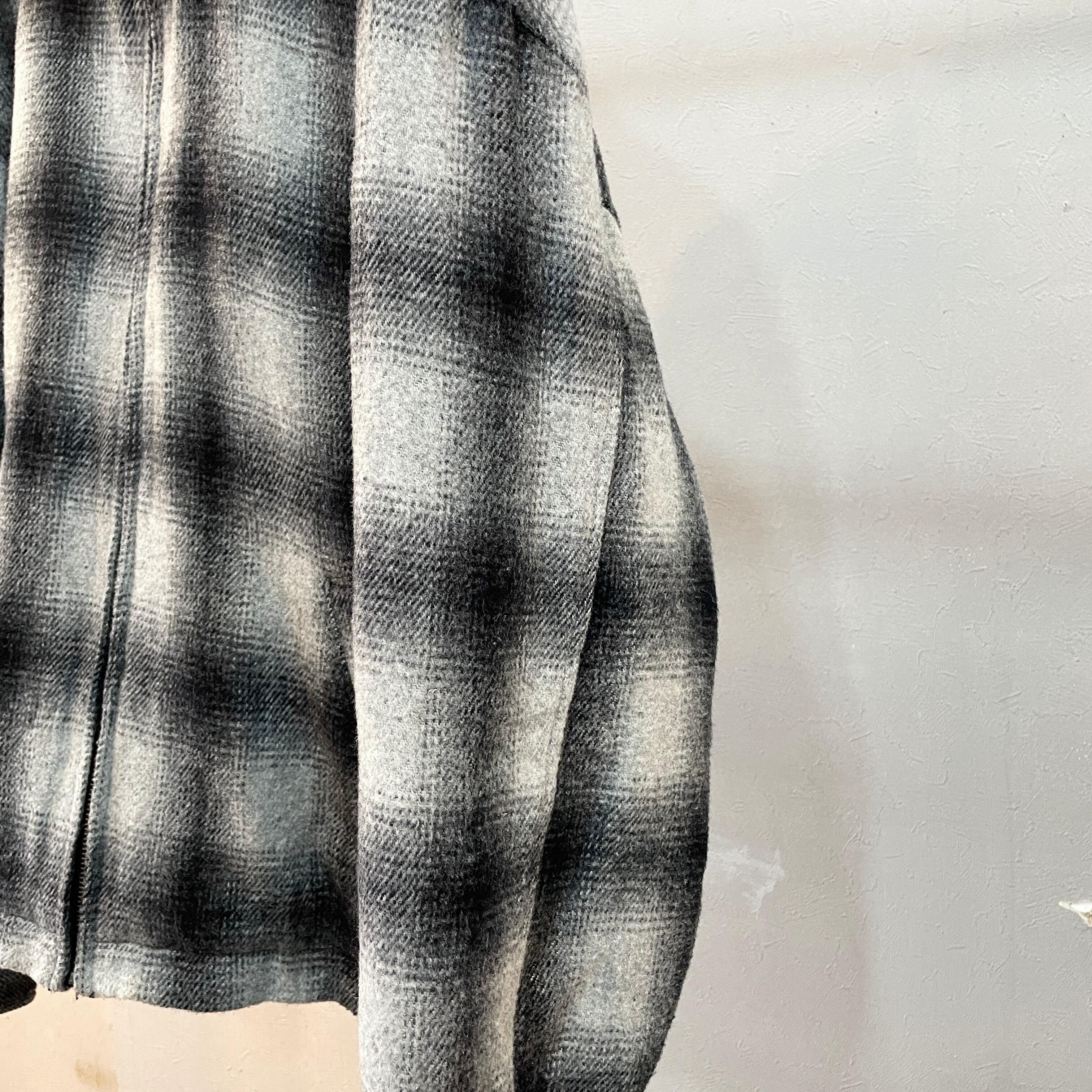 90s アンカーブルー オンブレウールスイングトップ ドリズラージャケット 襟レザー ブラック×ホワイト M