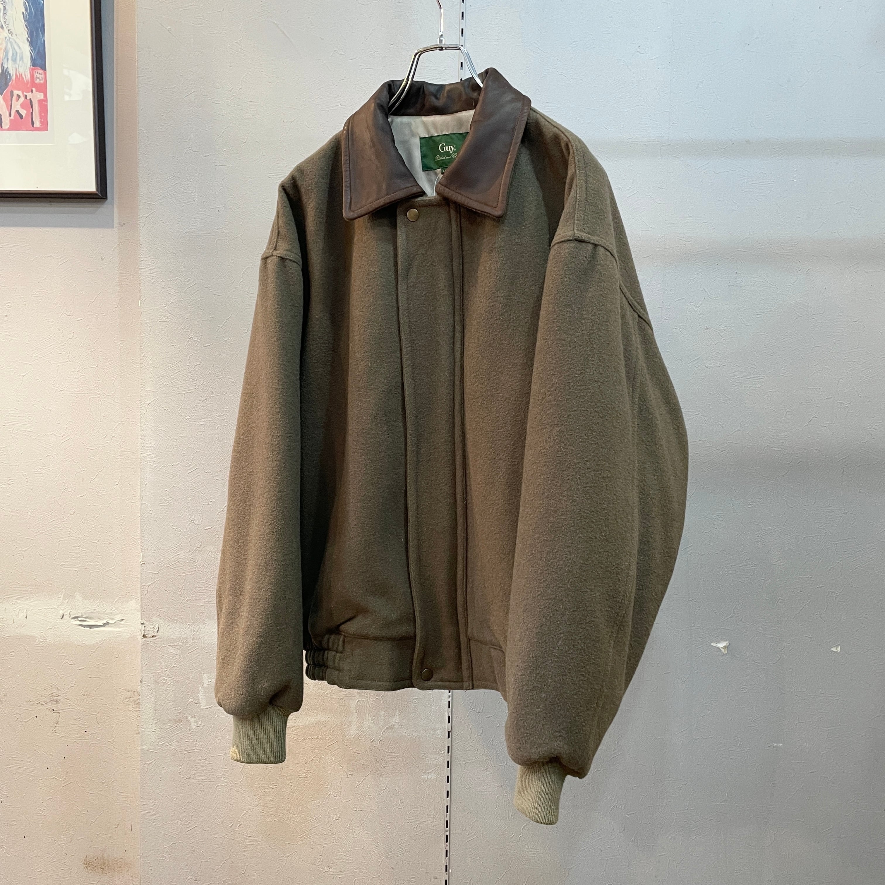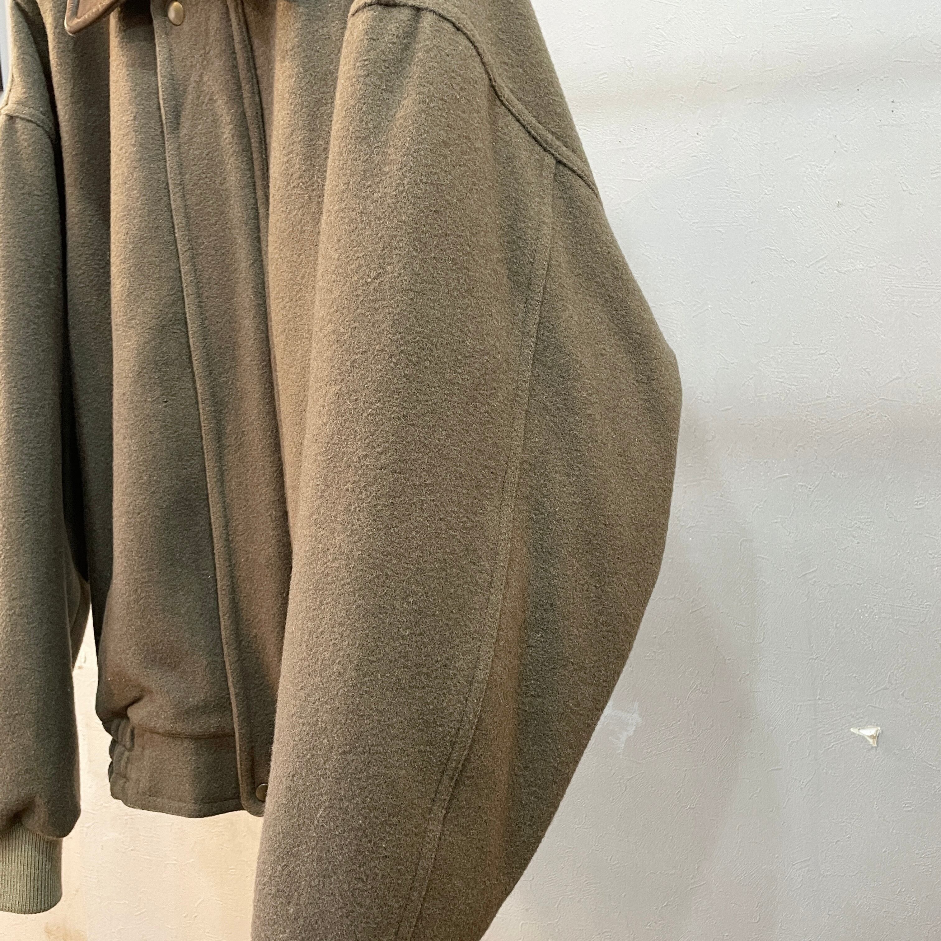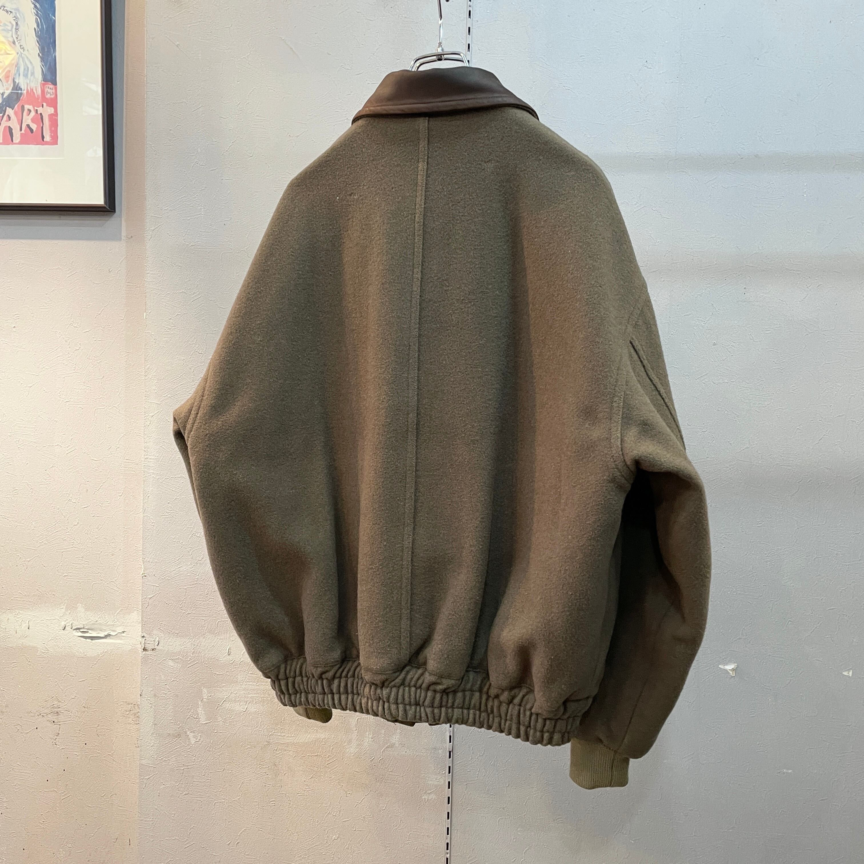 90s 襟レザー切替ウールブルゾン オリーブ×ブラウン L