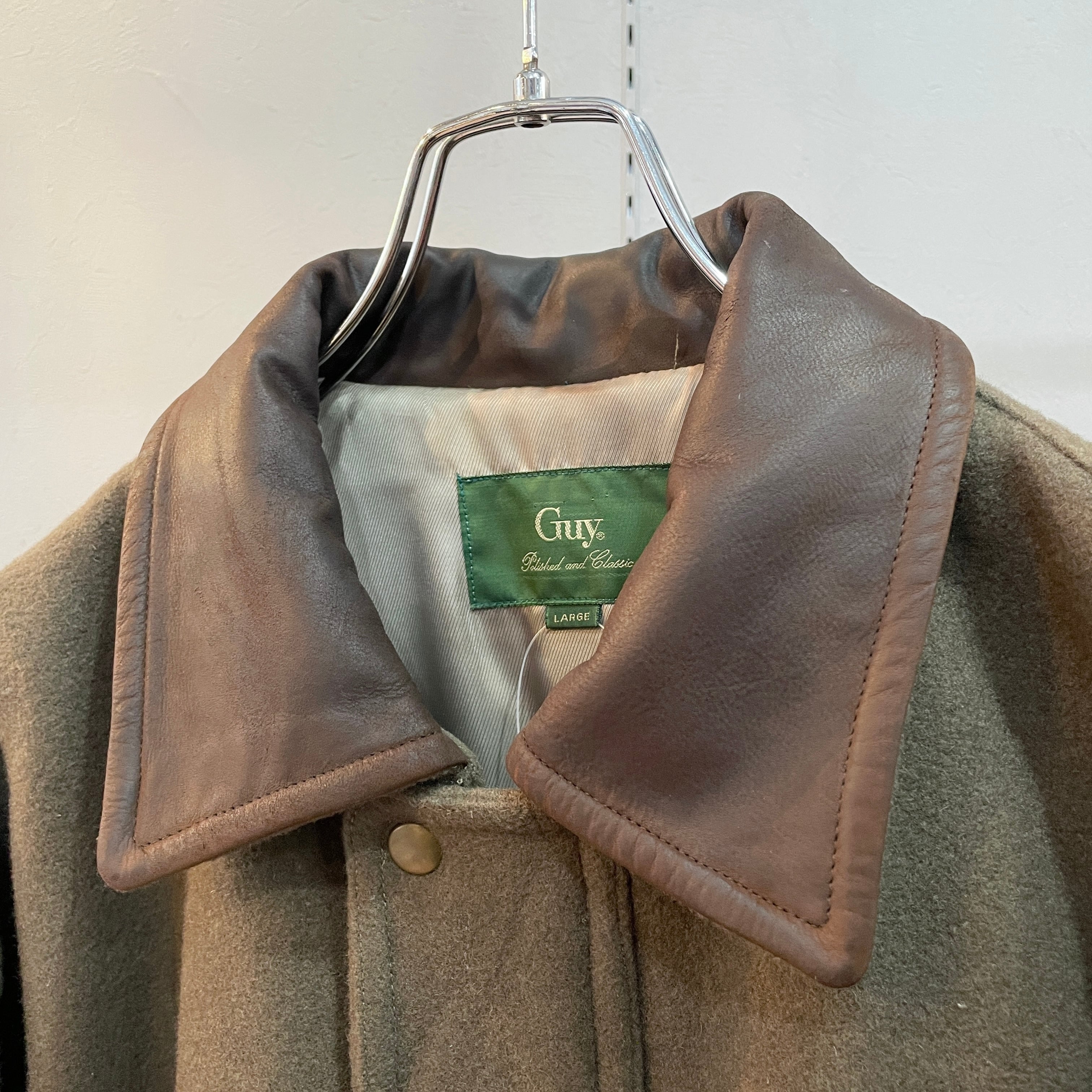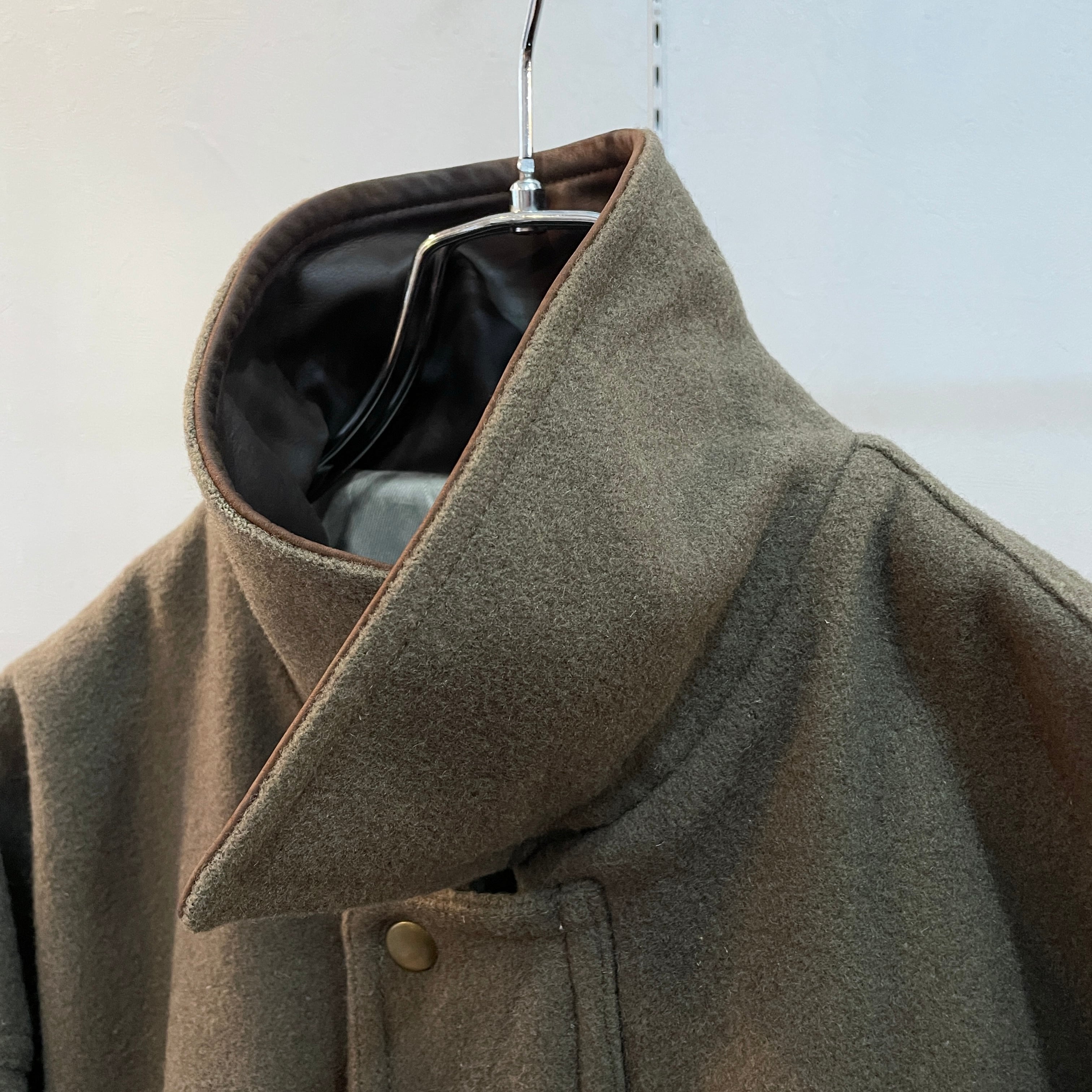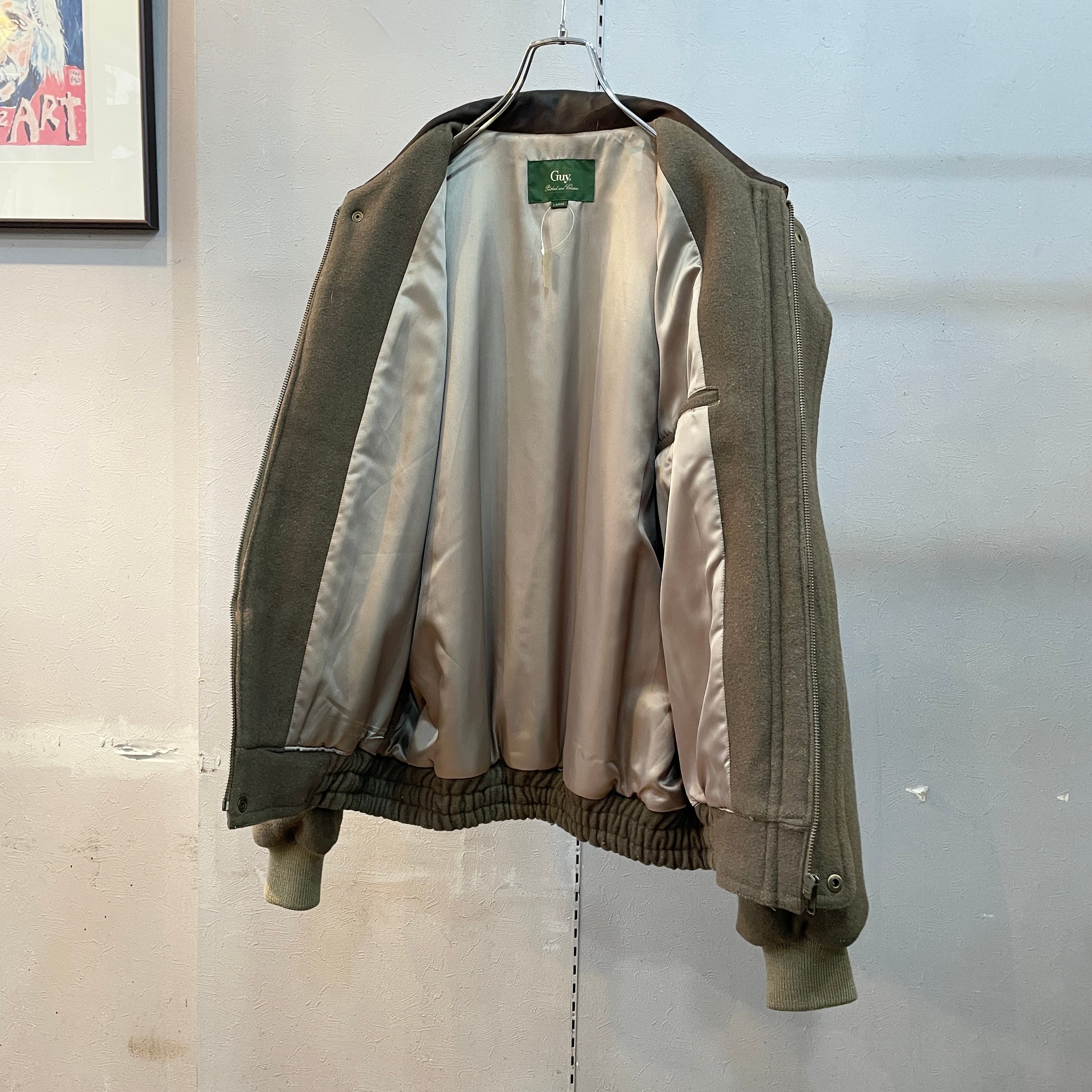 90s 襟レザー切替ウールブルゾン オリーブ×ブラウン L
