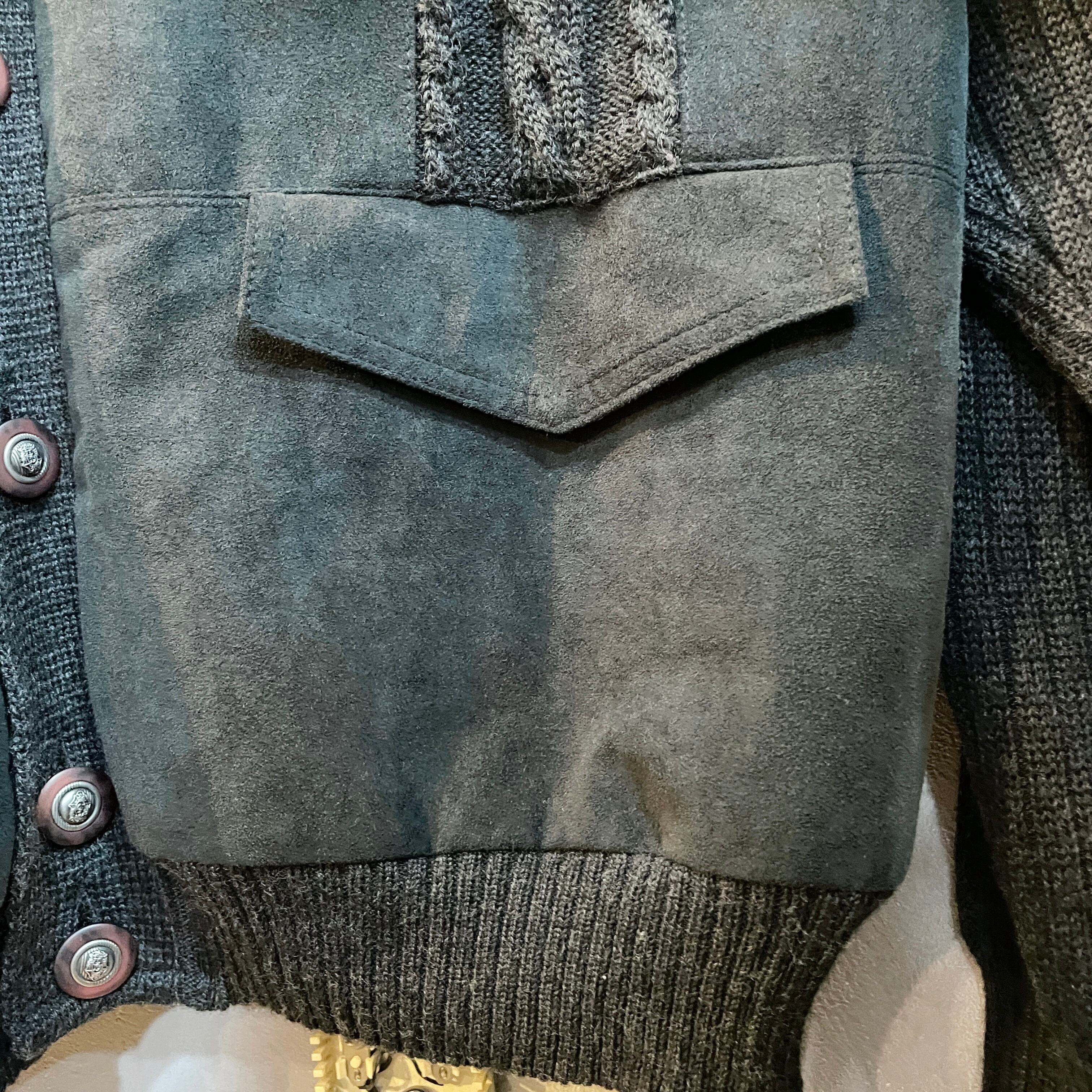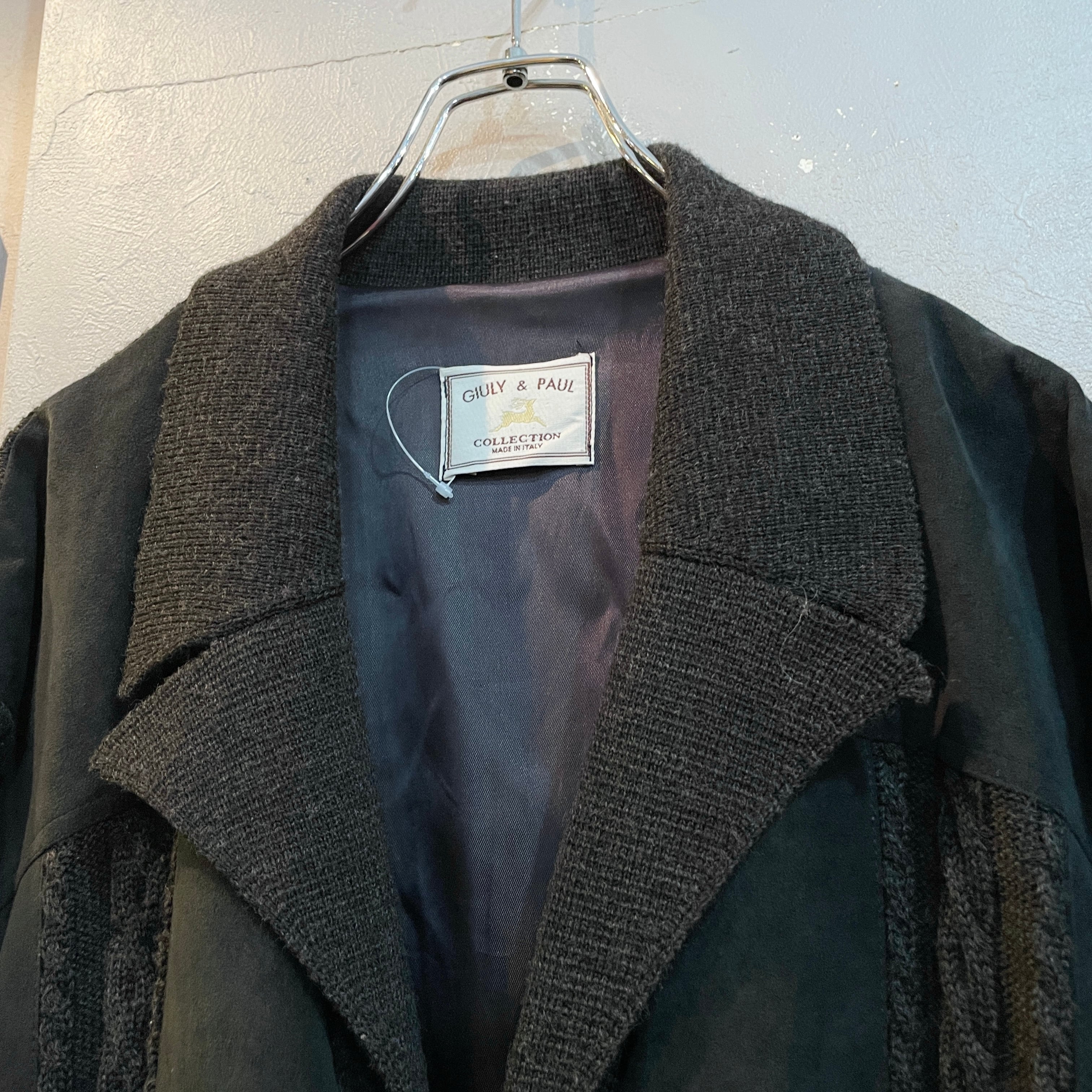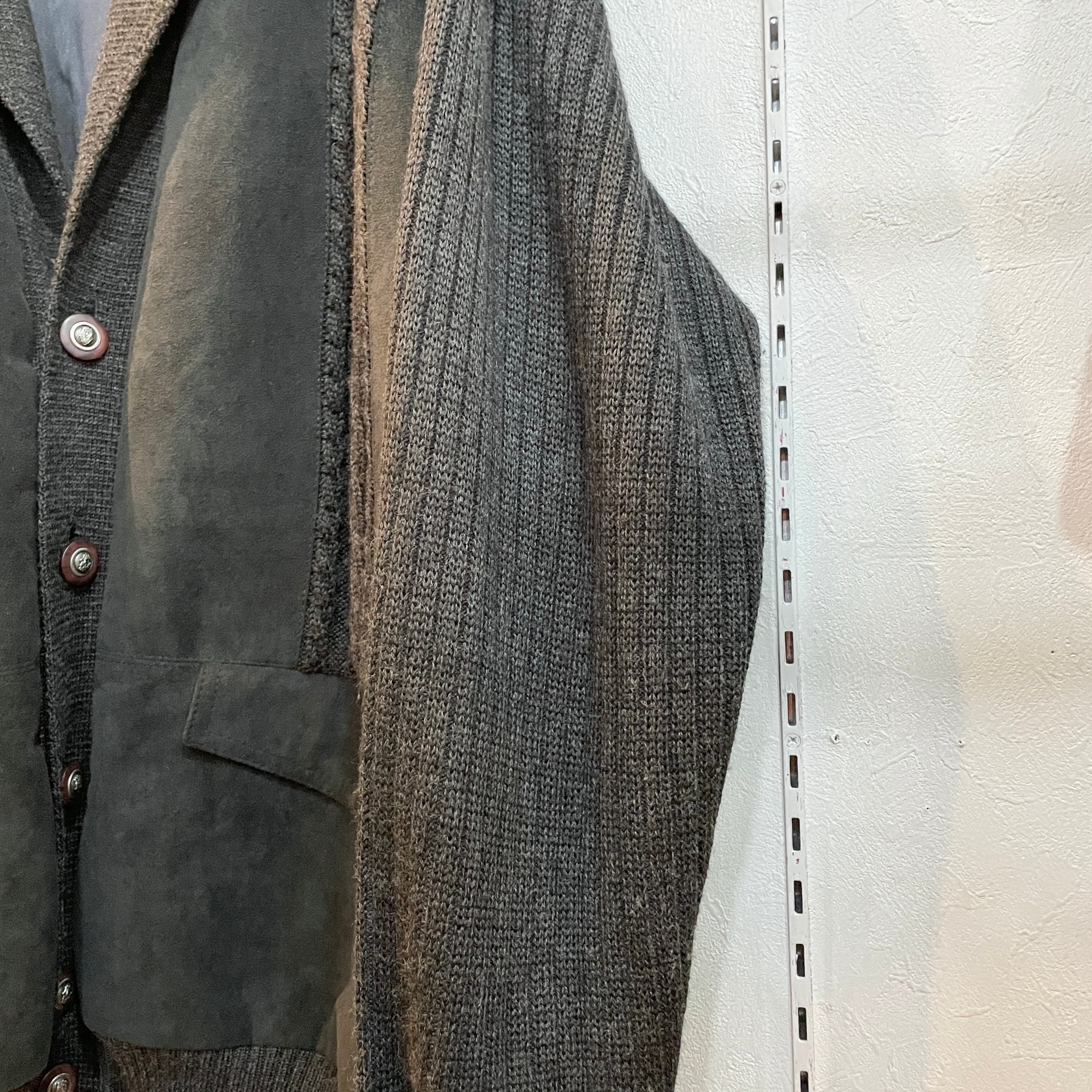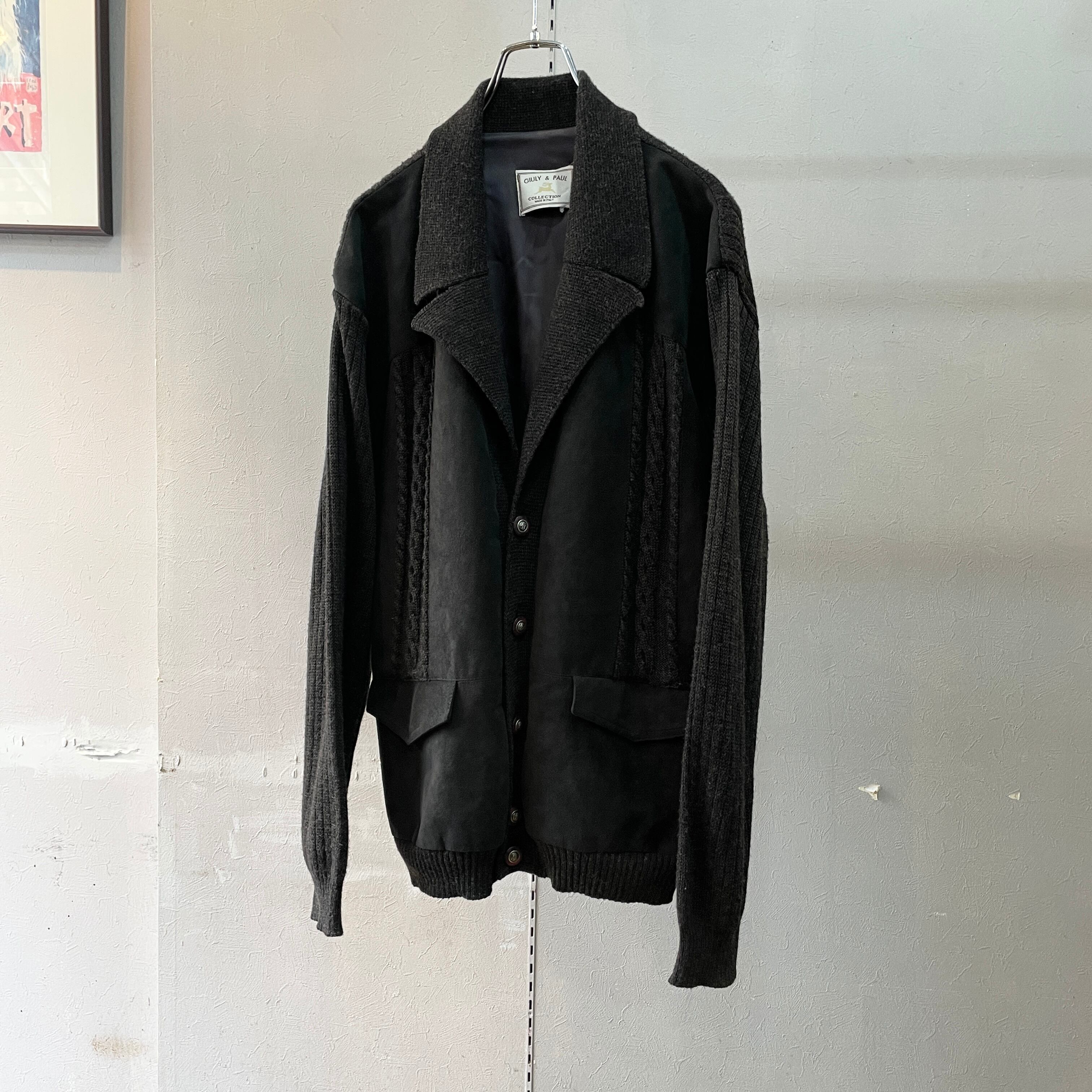 90s giuly&paul レザー切替カーディガン スエード ブラックベース L程度