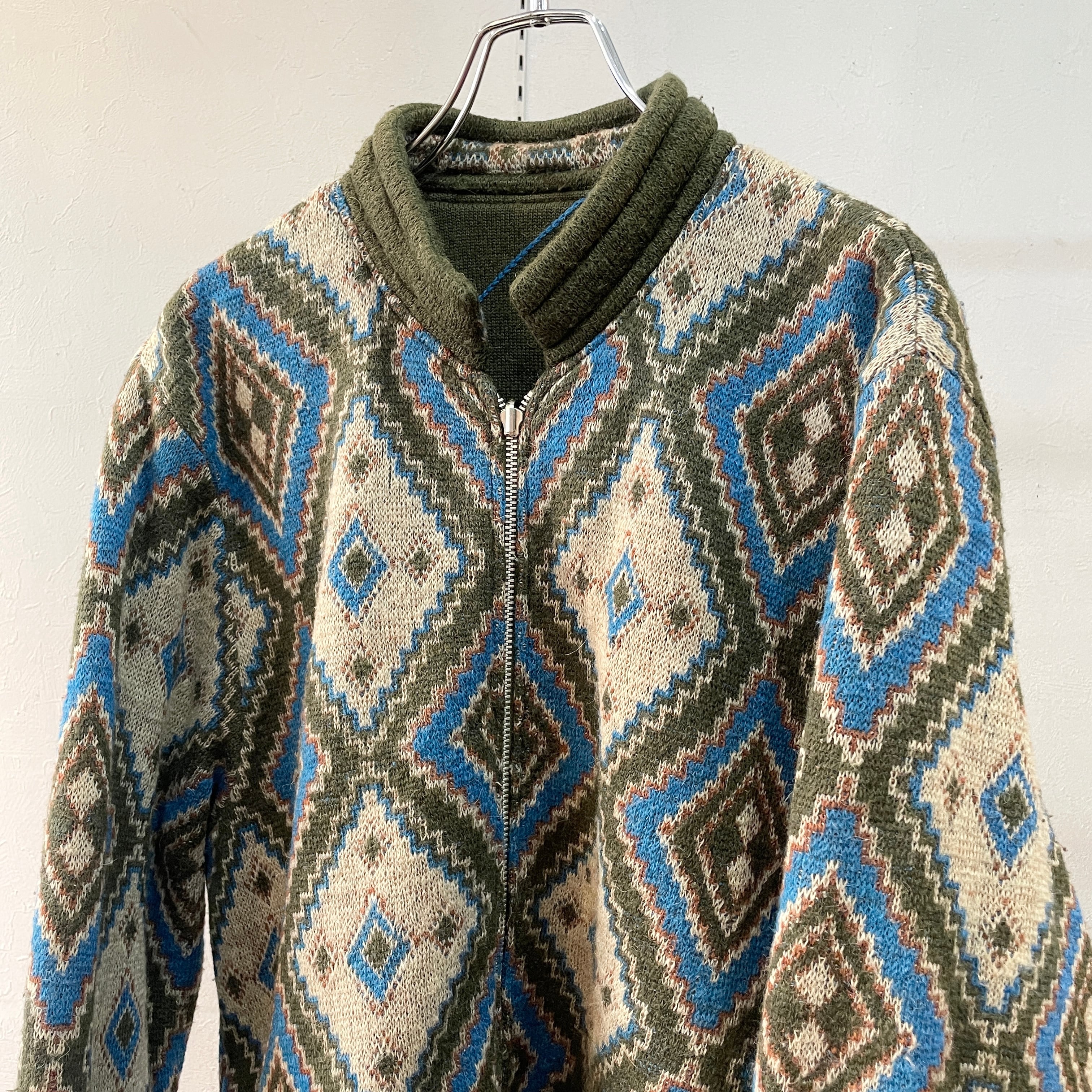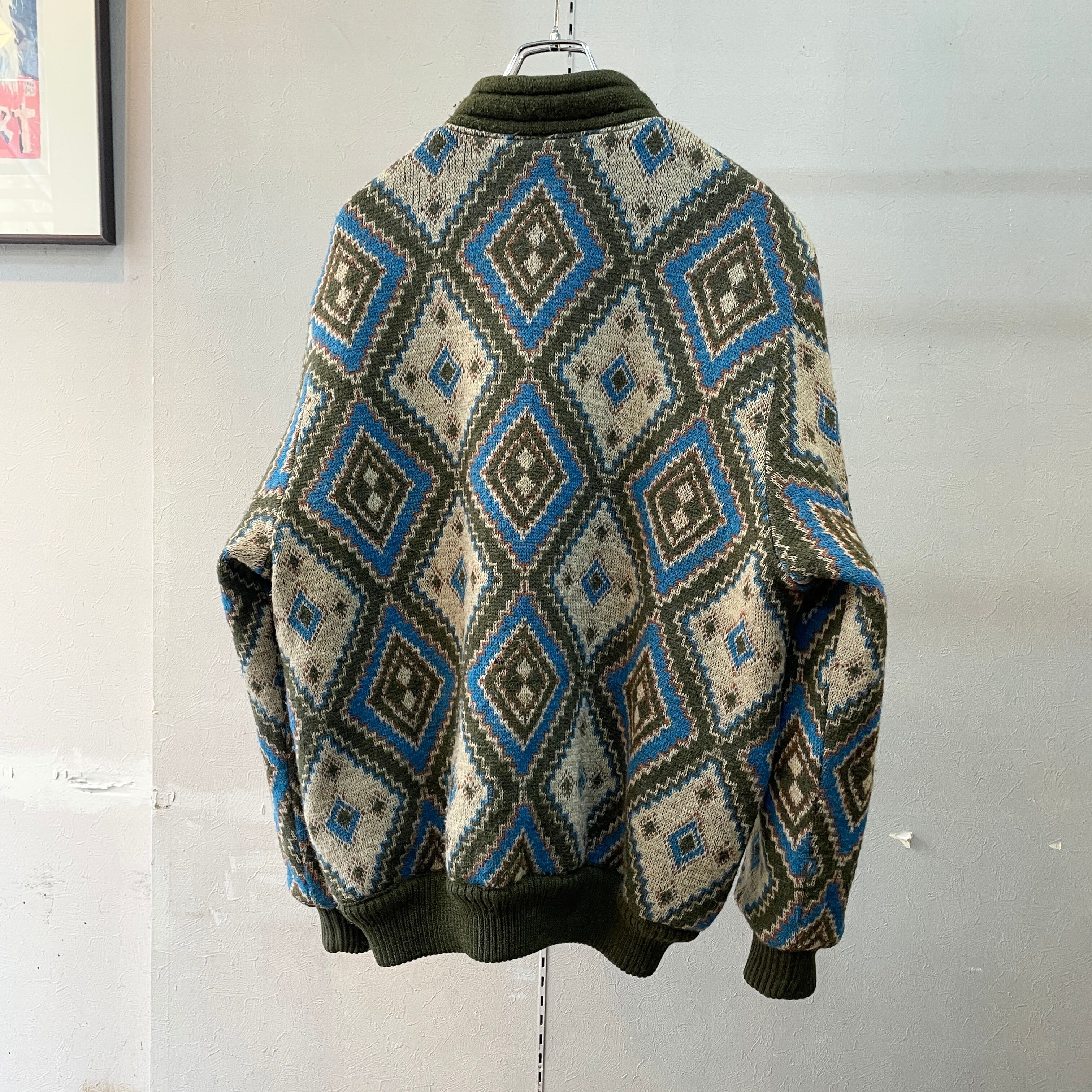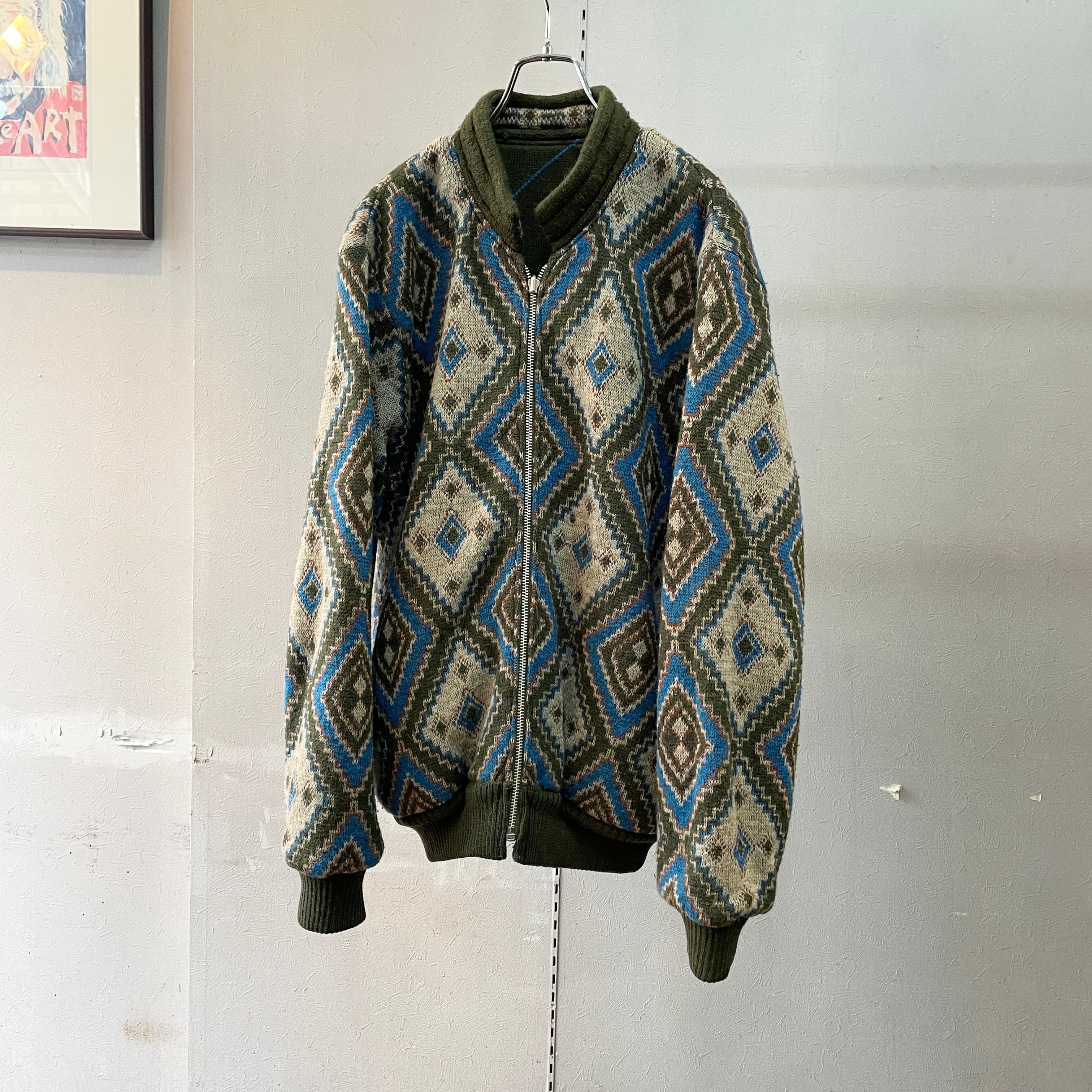 90s ハナエモリ リバーシブルニットブルゾン 総柄×バイアス L