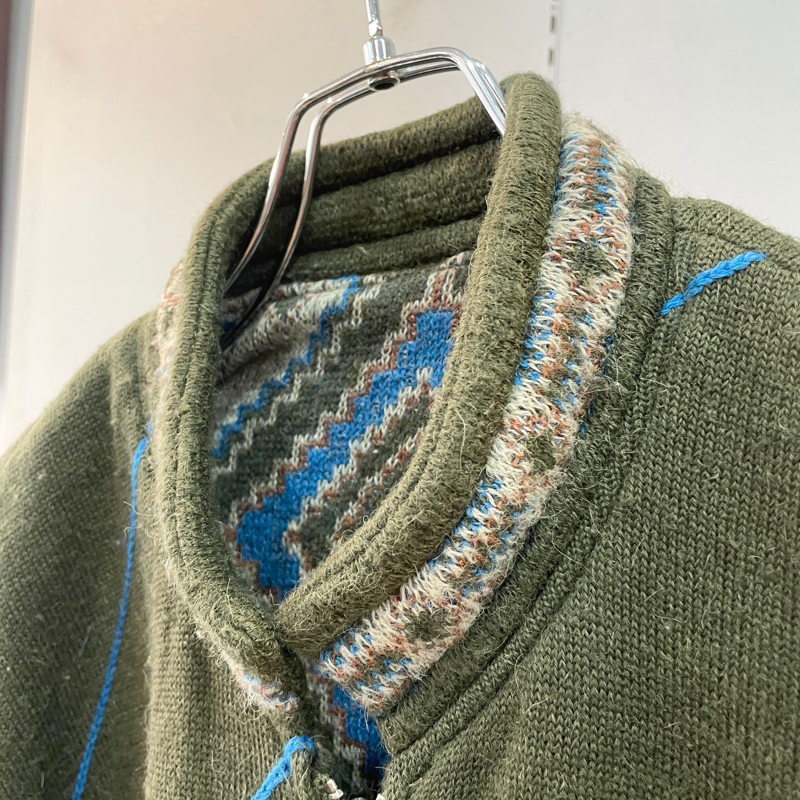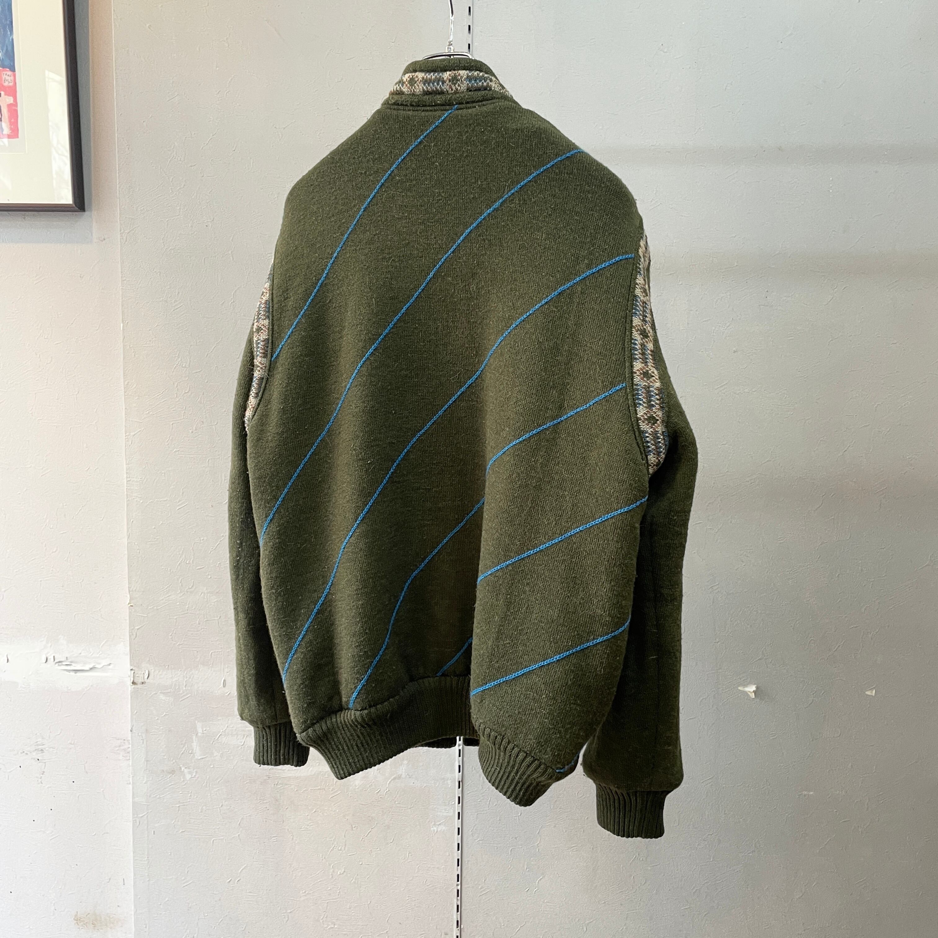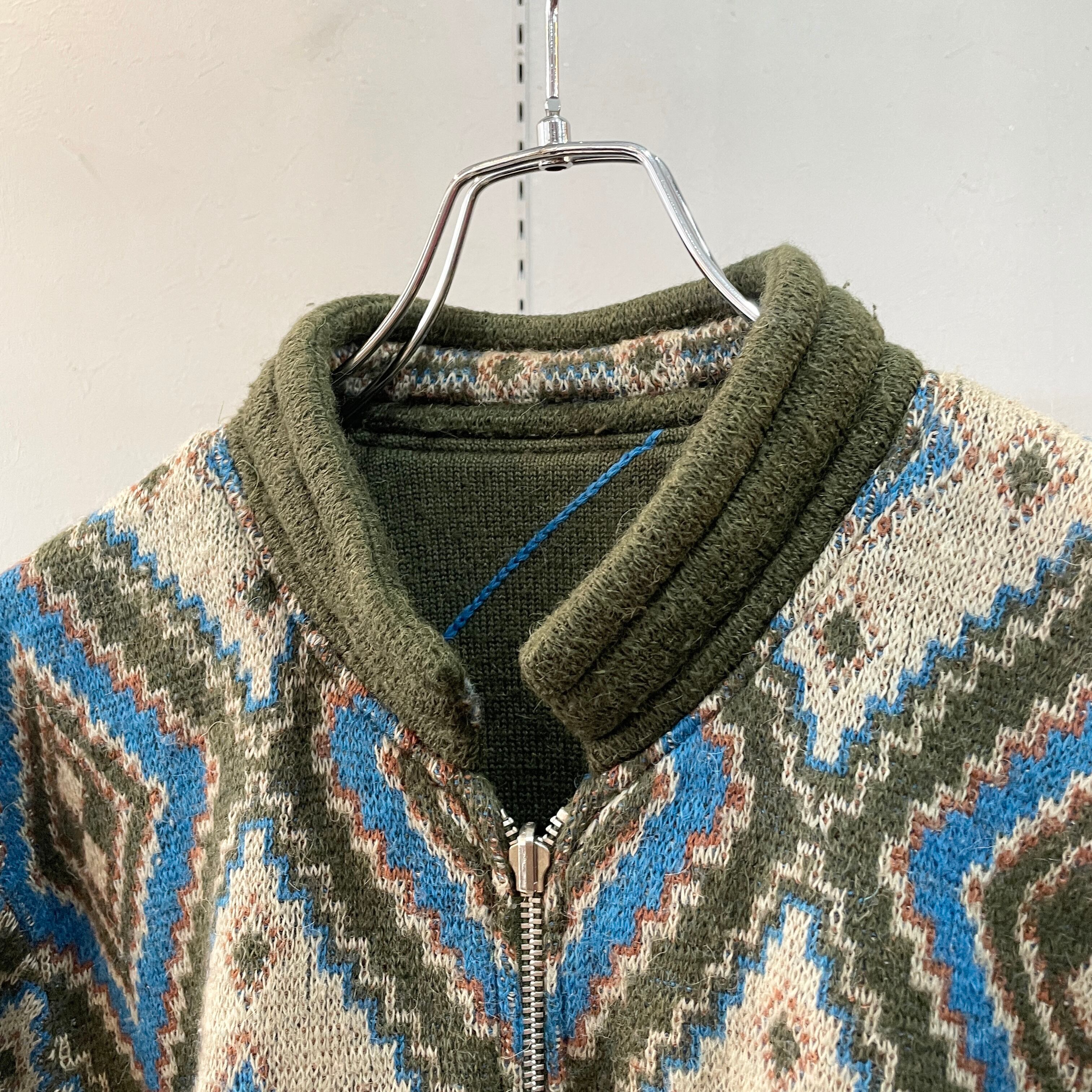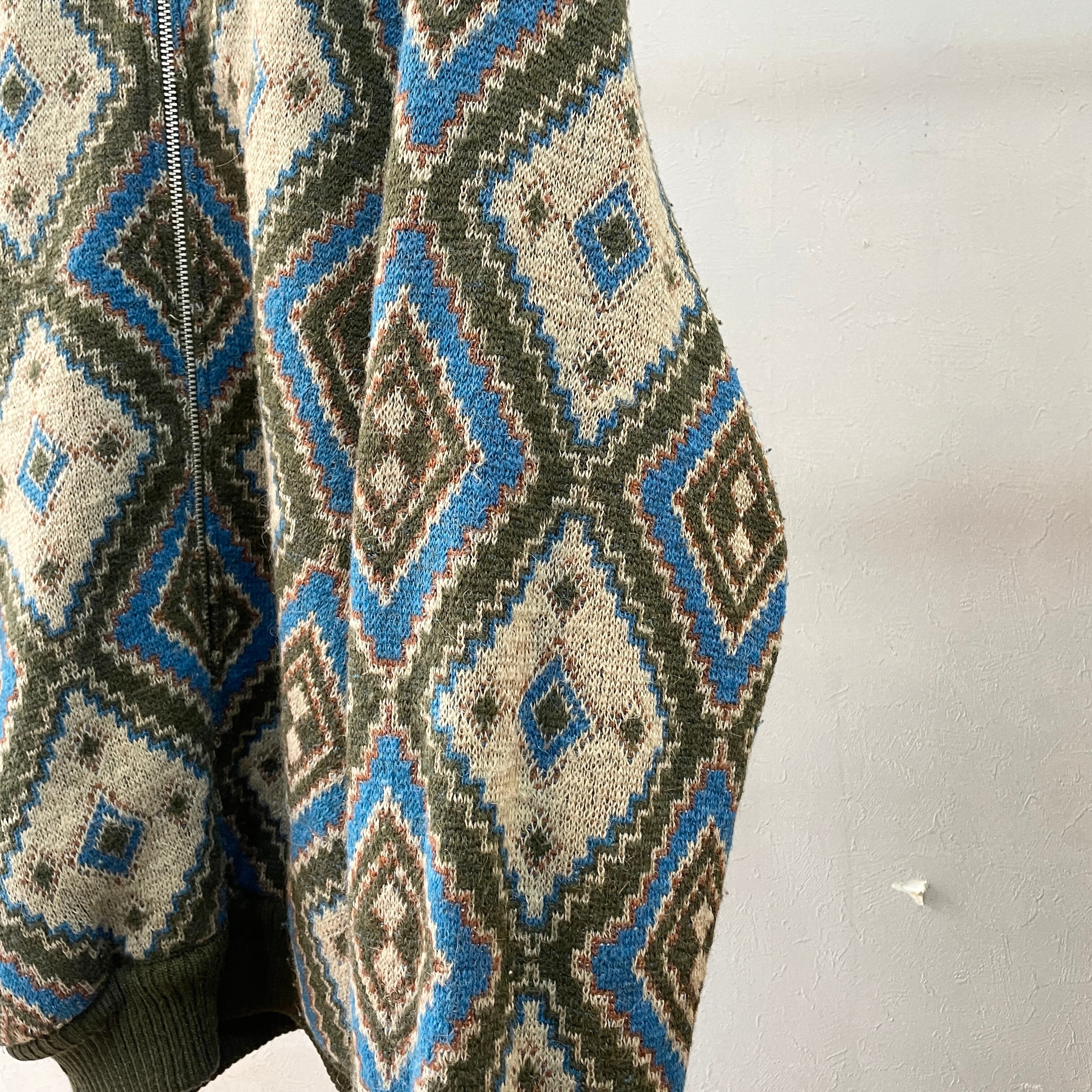 90s ハナエモリ リバーシブルニットブルゾン 総柄×バイアス L