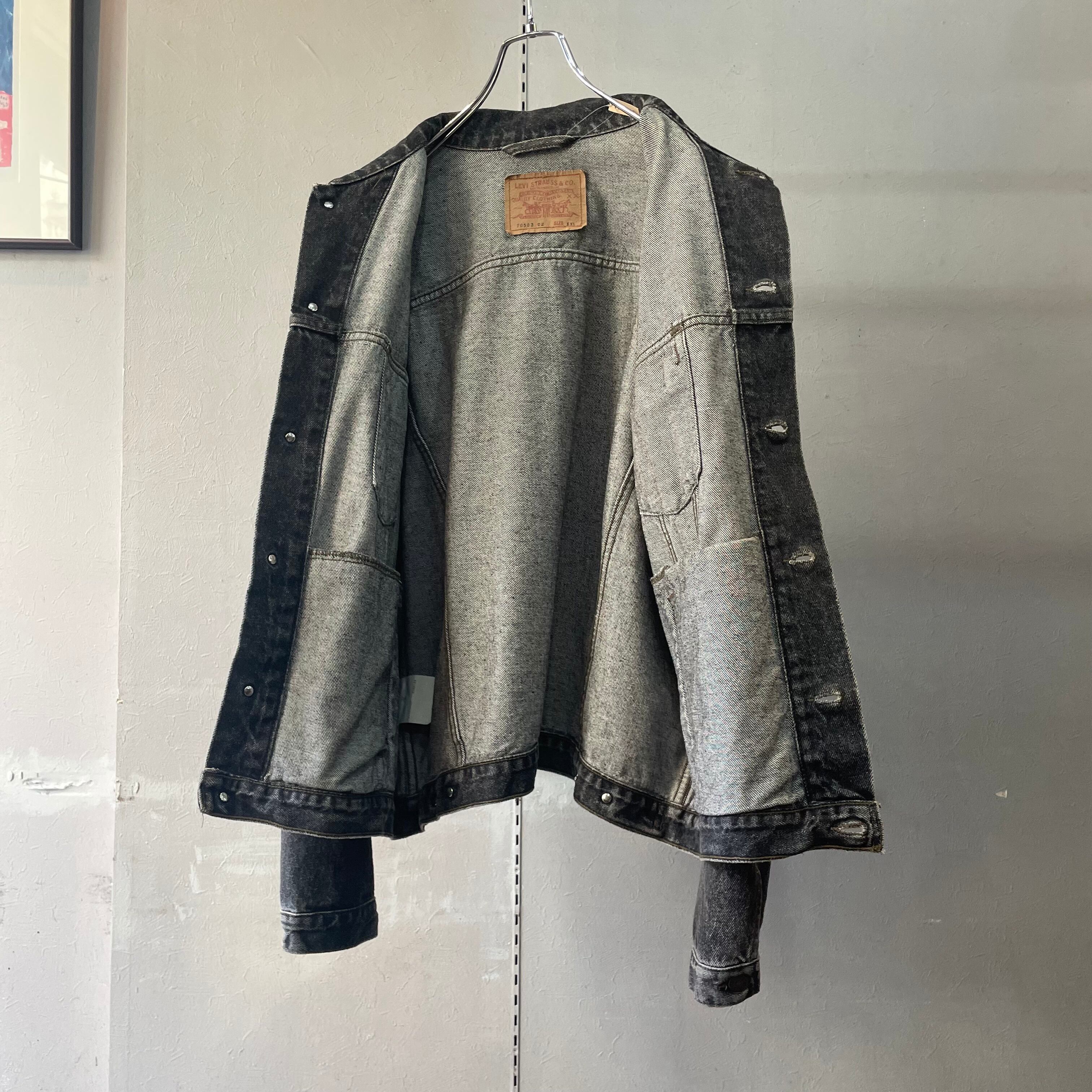 90s リーバイス 70503 02 先染めブラックデニムトラッカージャケット XXL