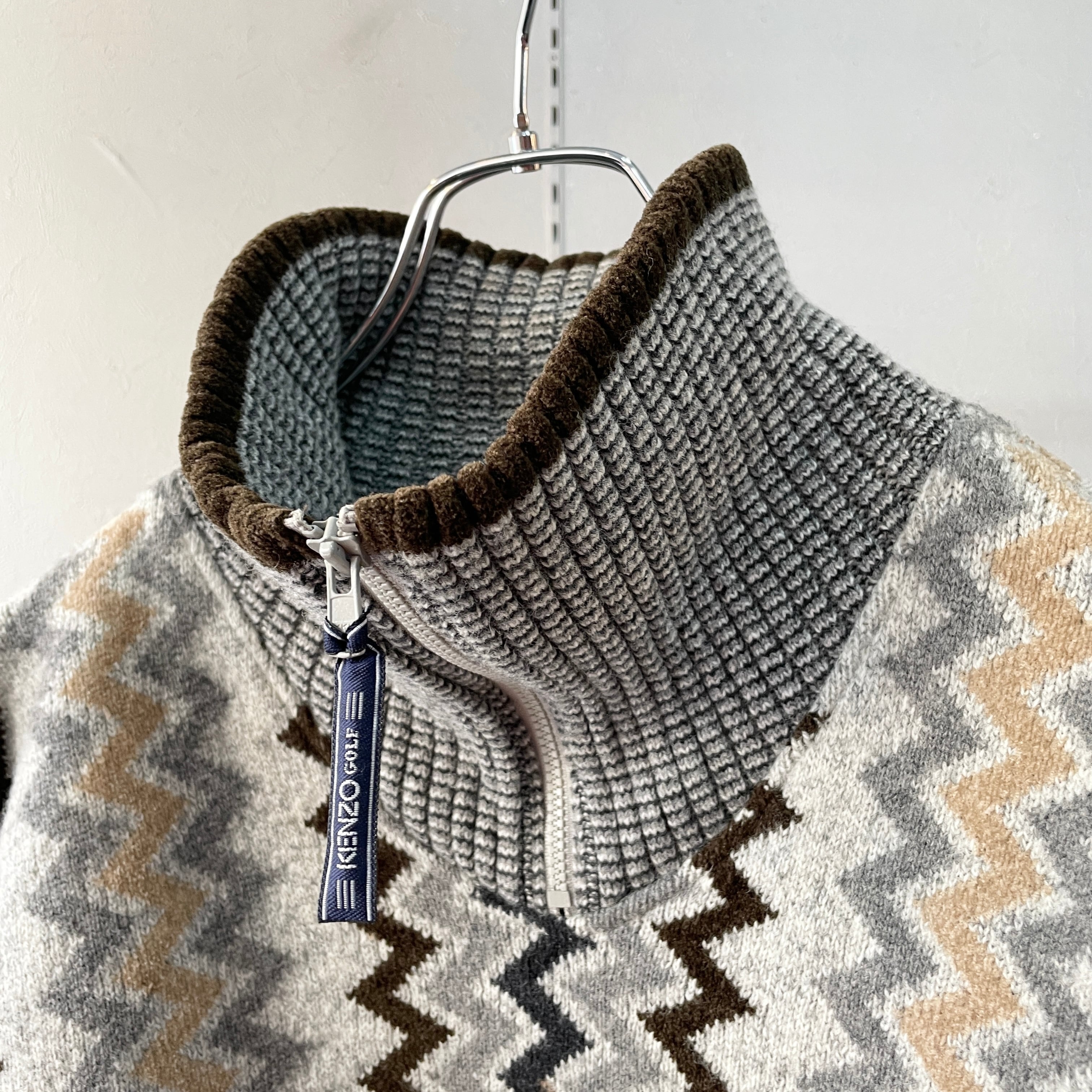 90s ケンゾー 総柄ハーフジップニット L程度