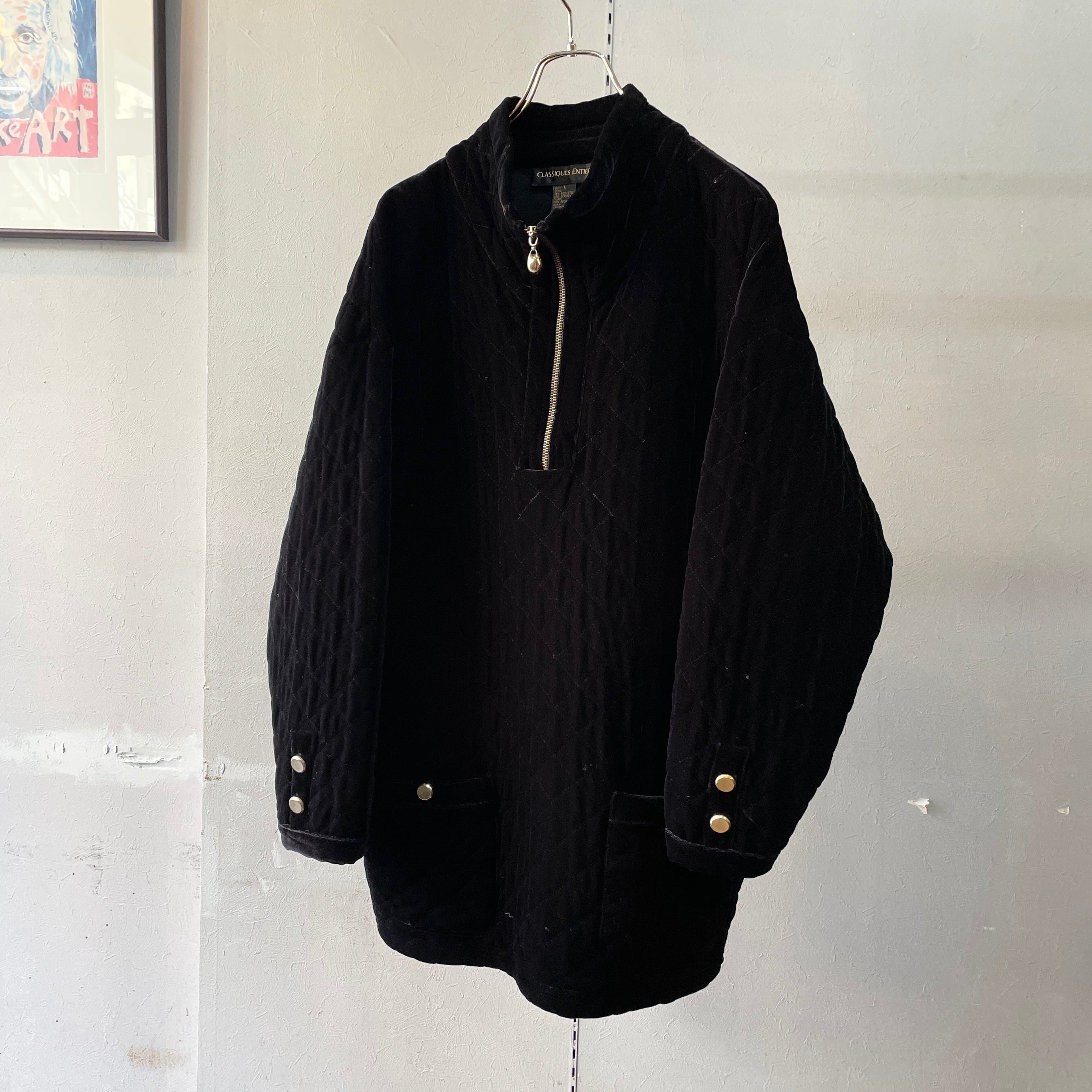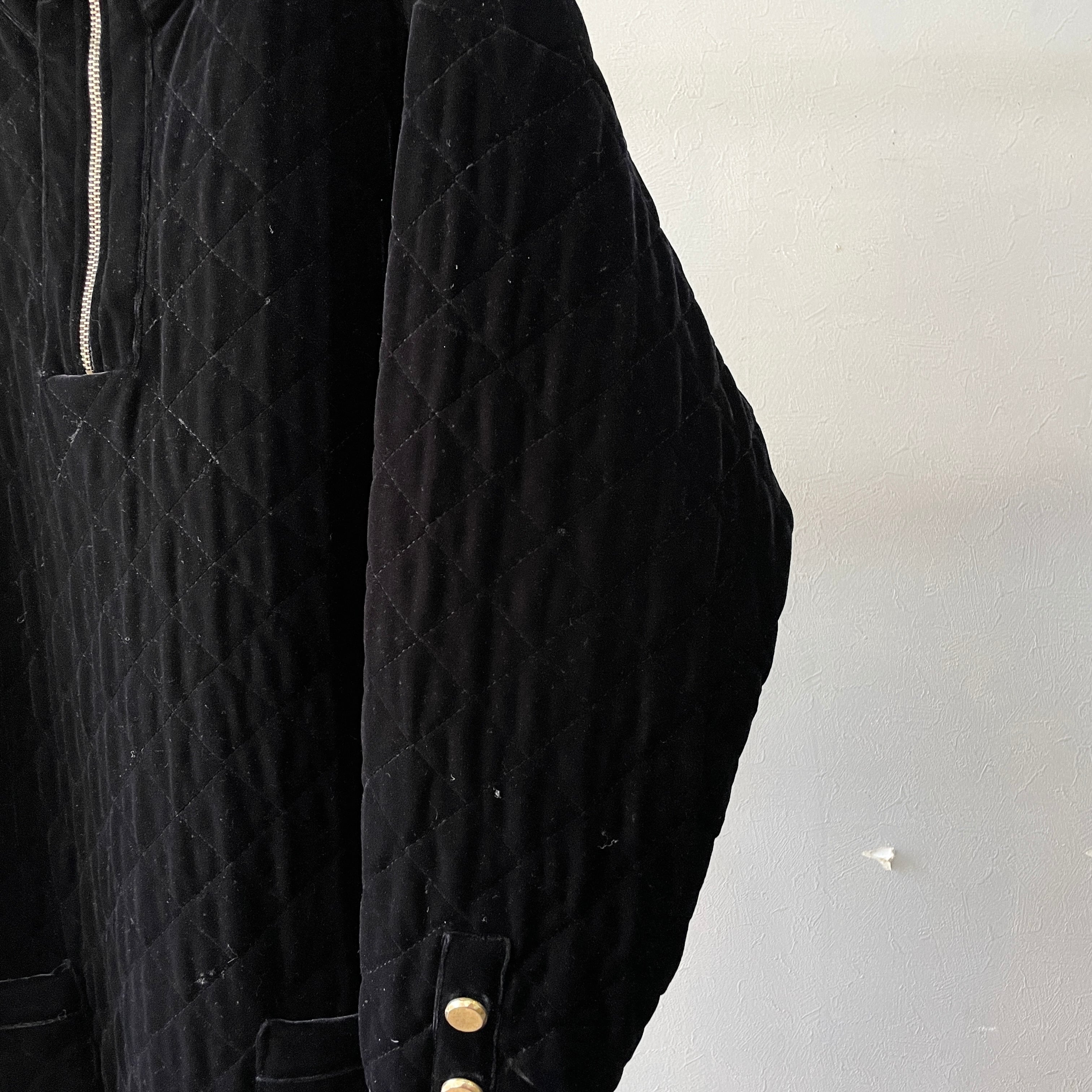 90s キルティングベロアプルオーバー ブラック L
