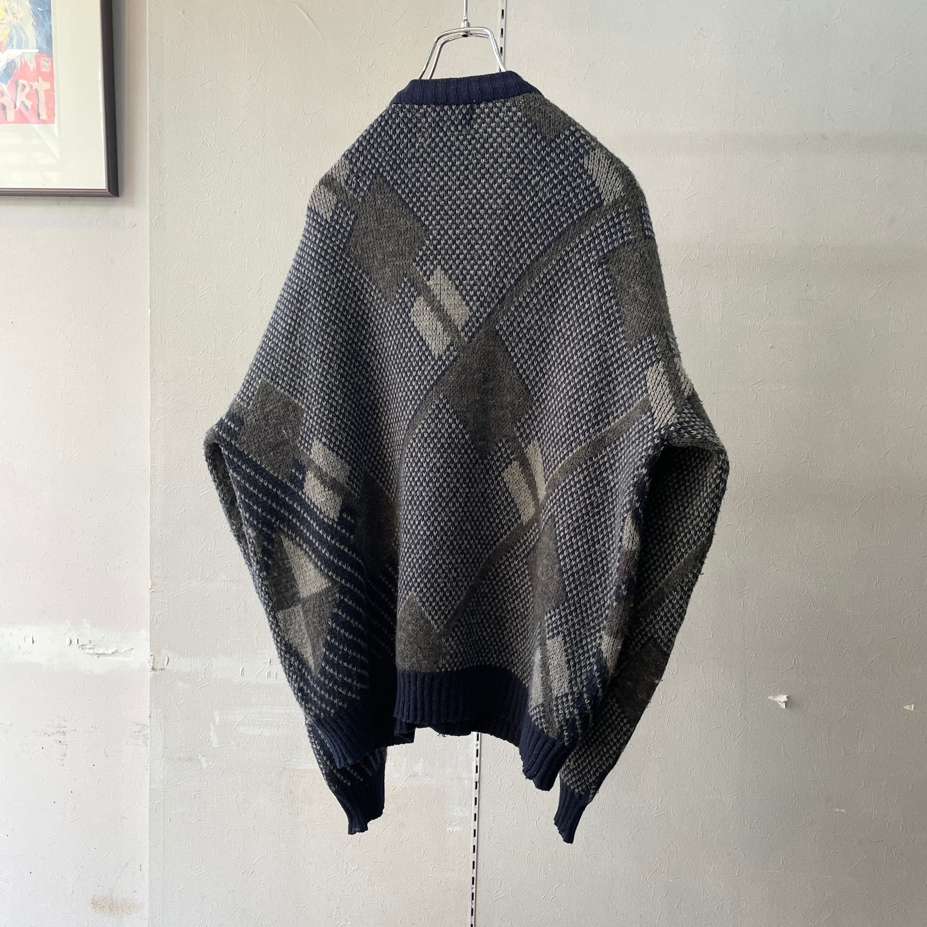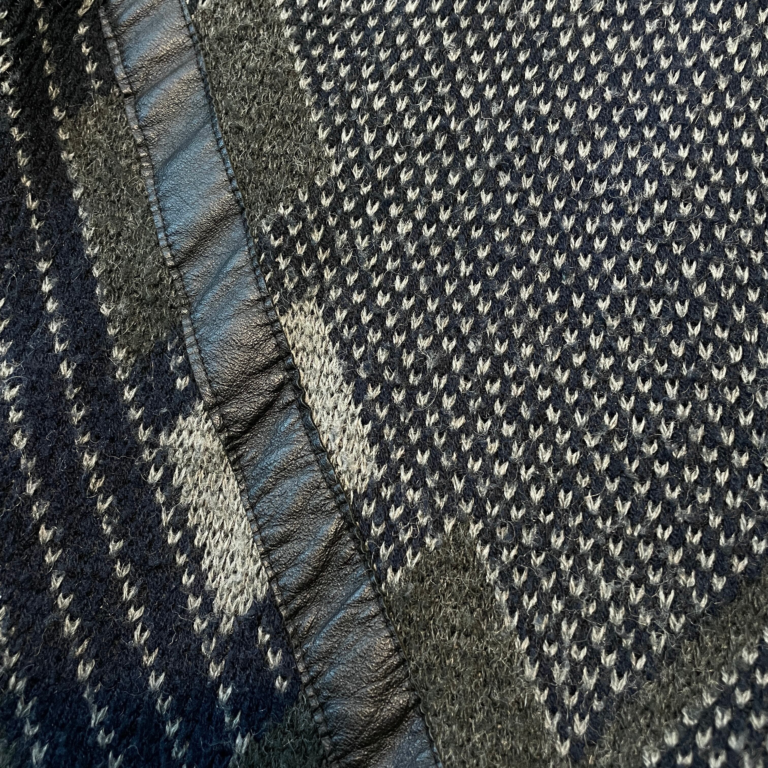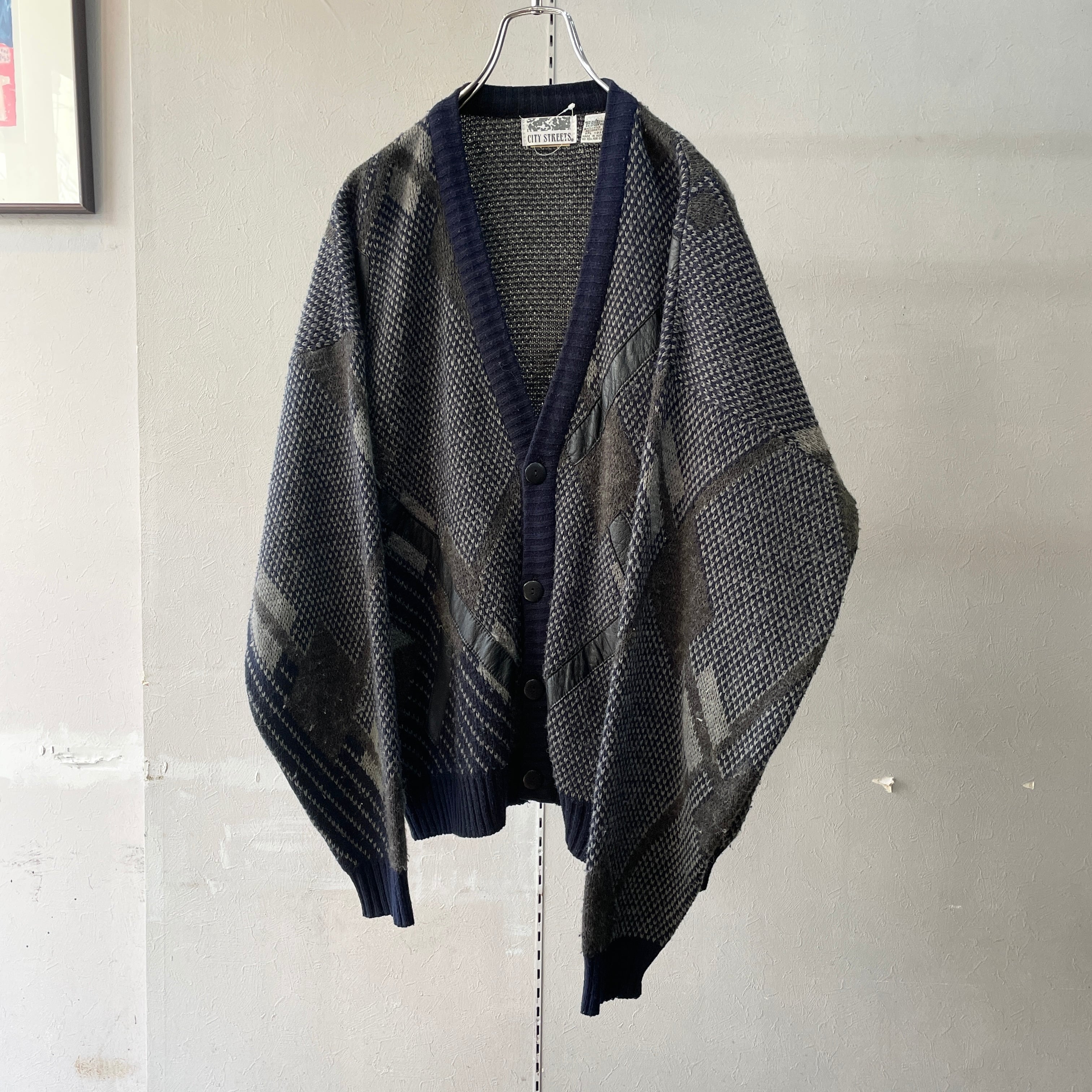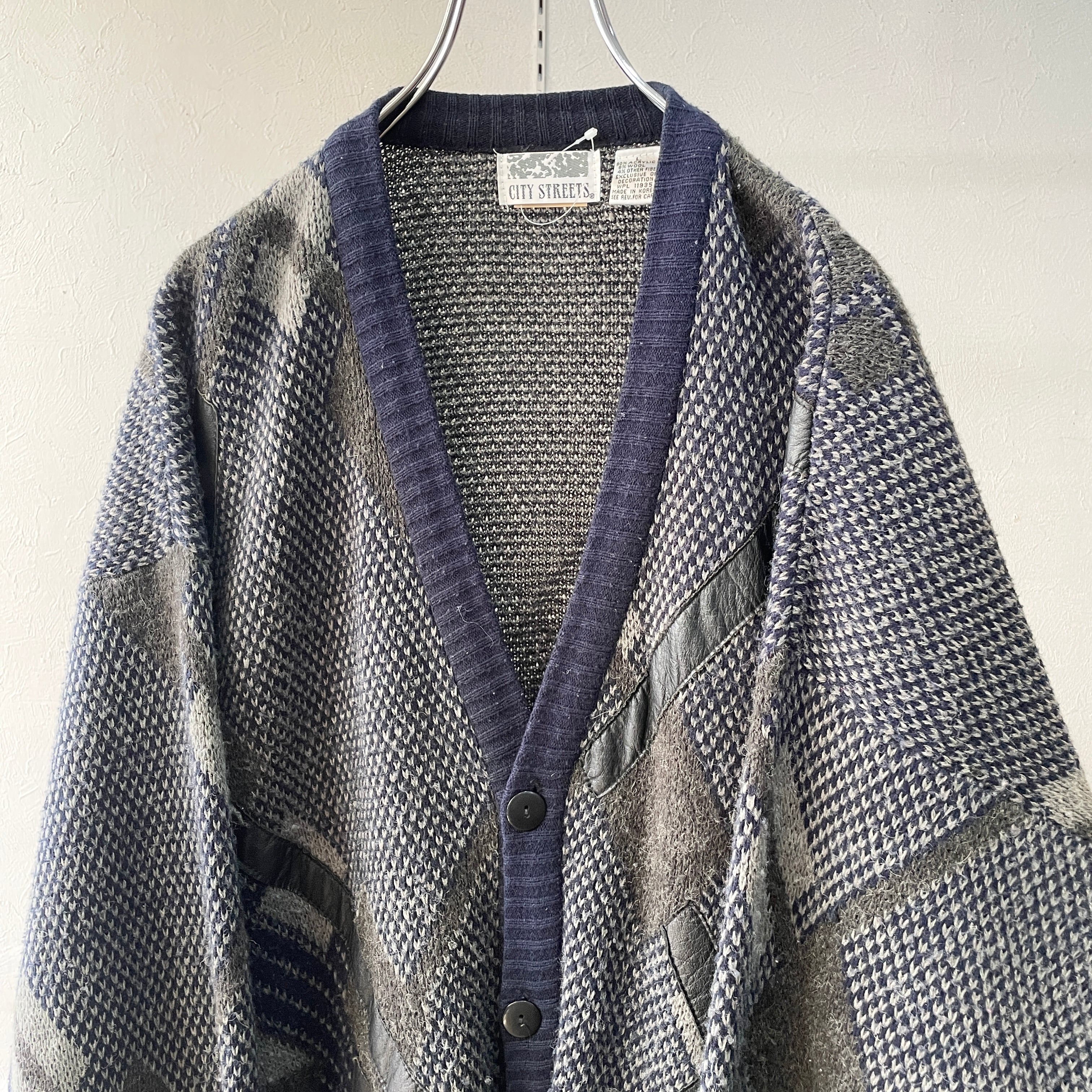 80-90s city streets レザー切替カーディガン ネイビーベース L
