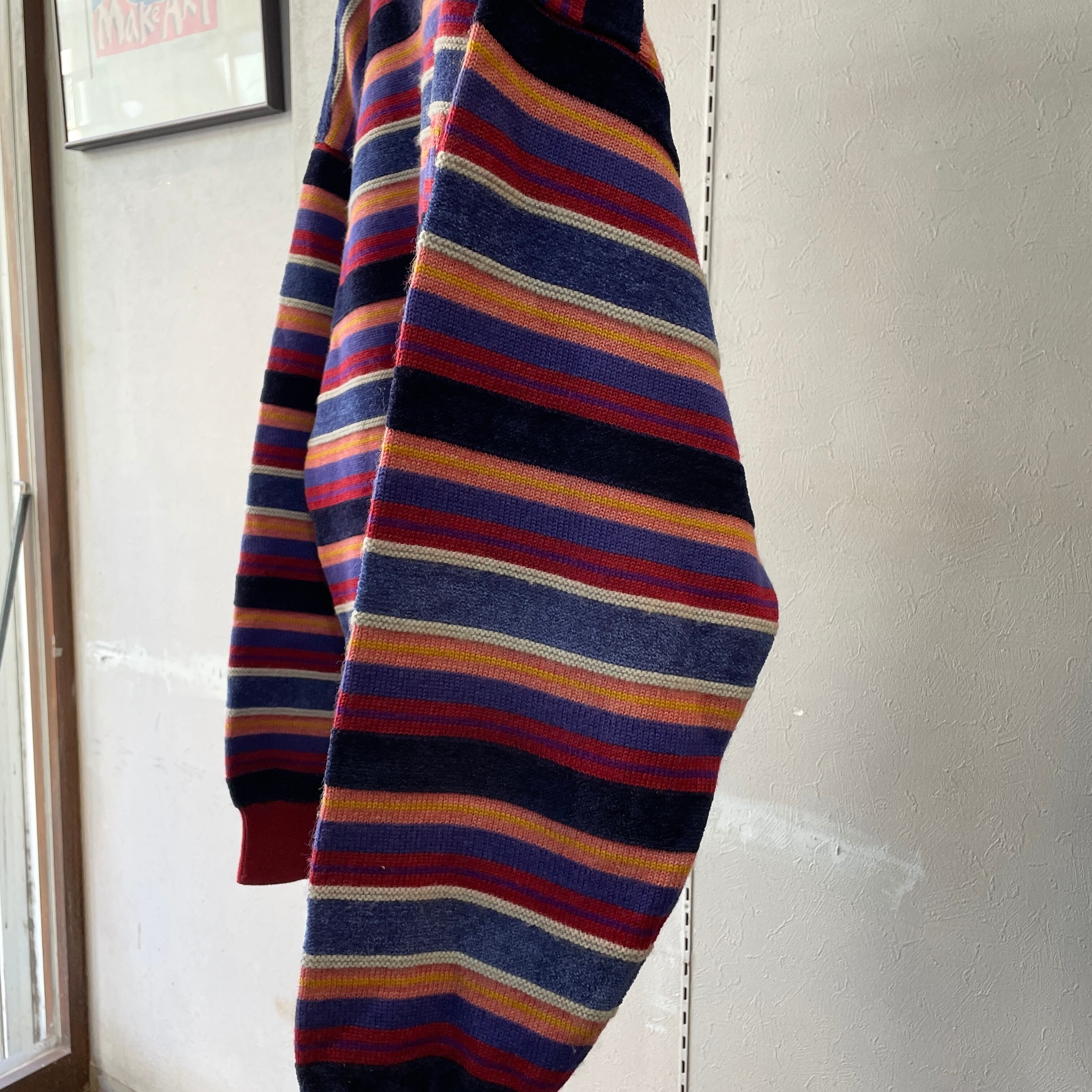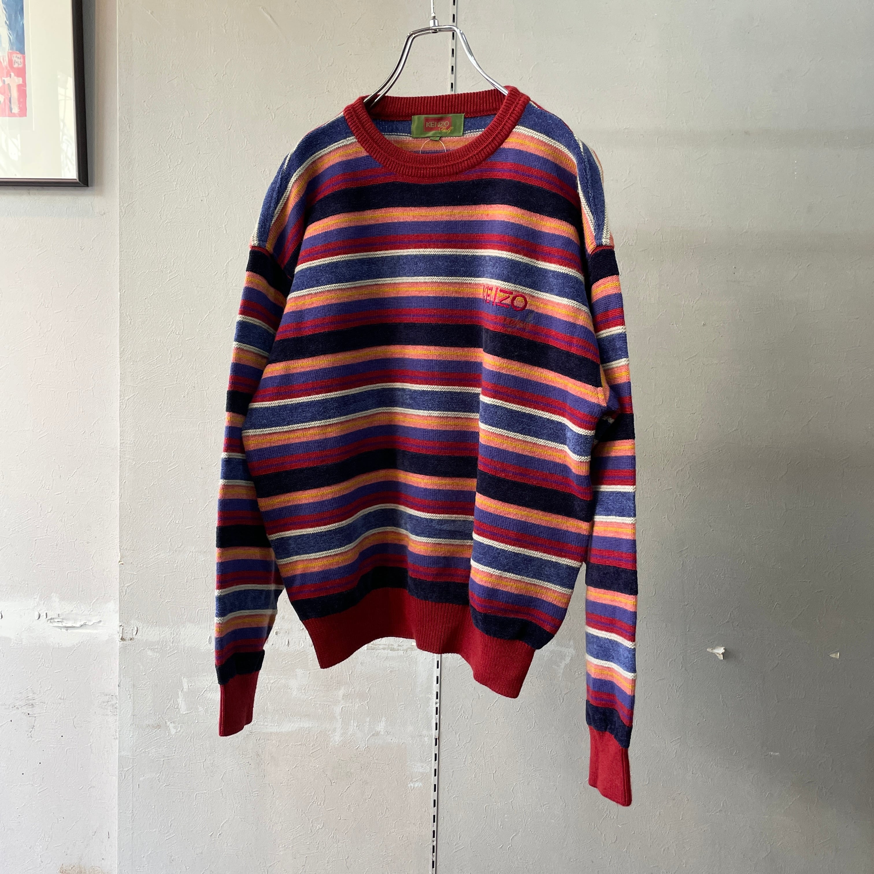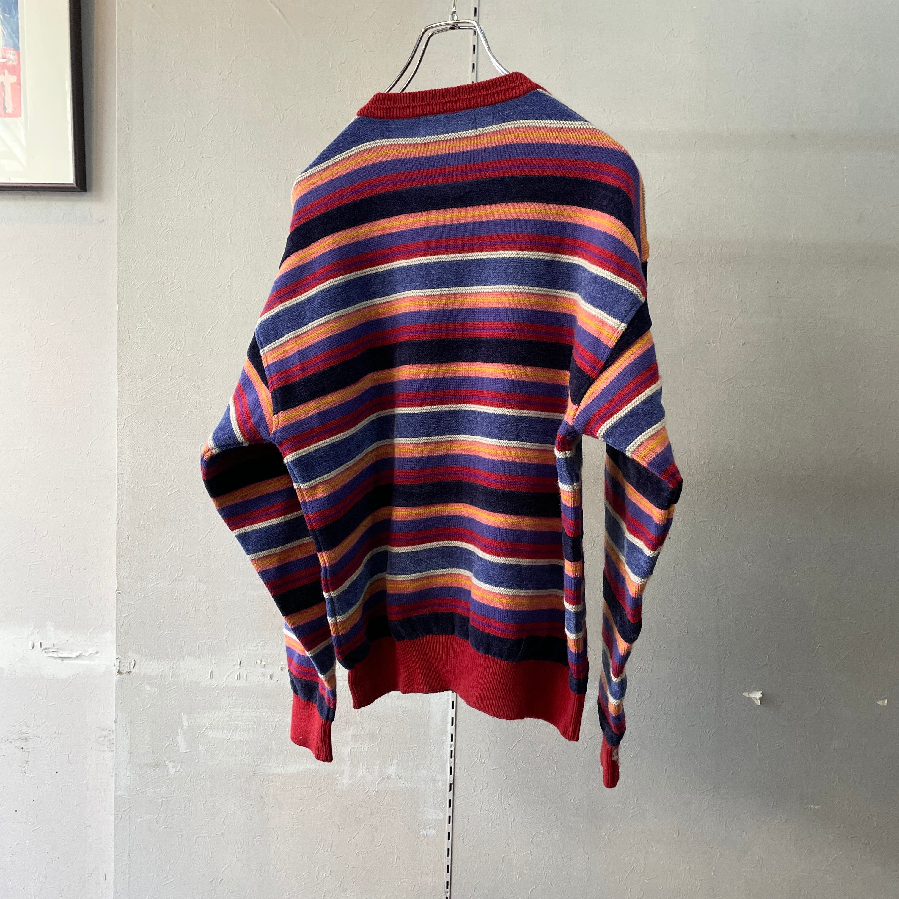 90s ケンゾー マルチボーダーニット ベロア切替 M程度