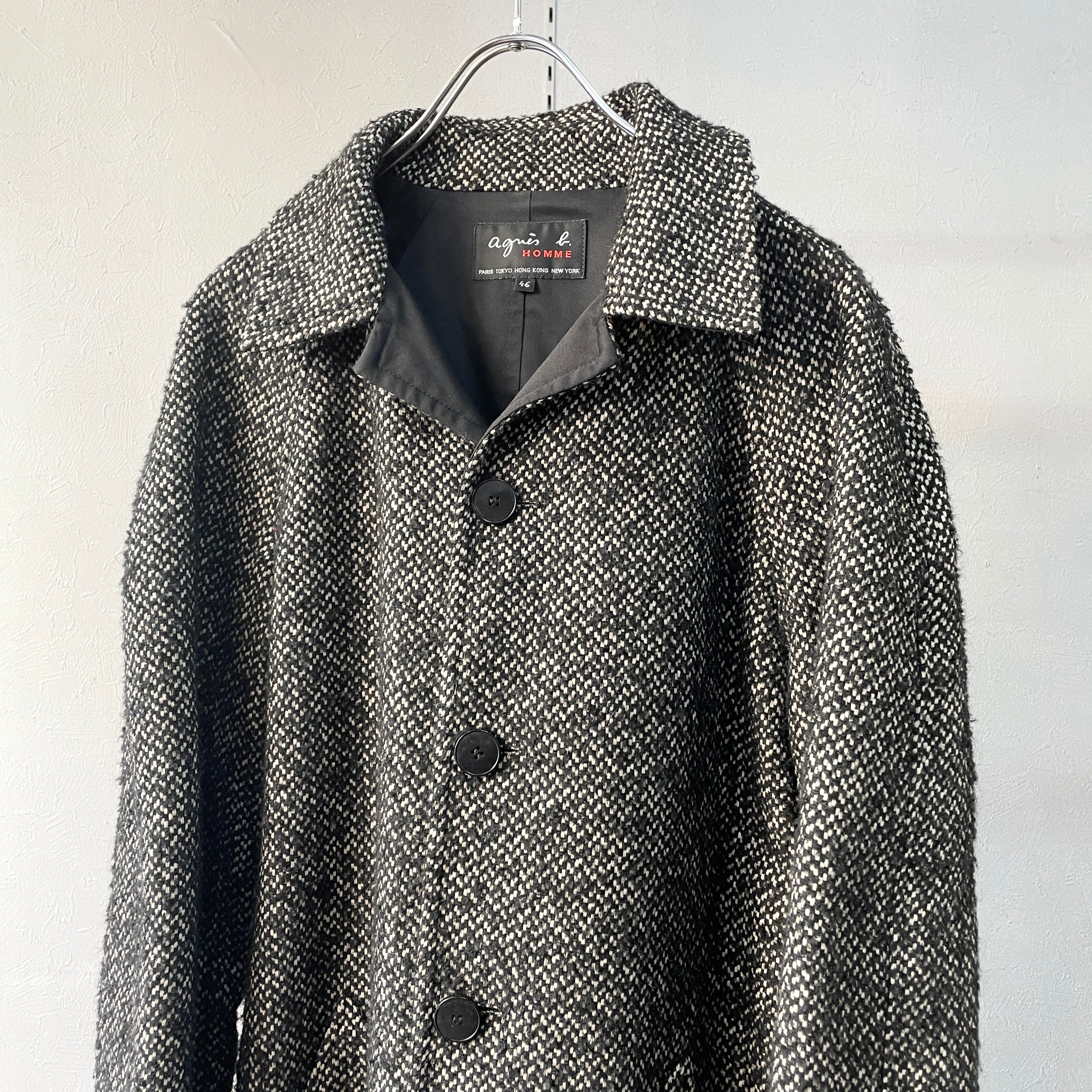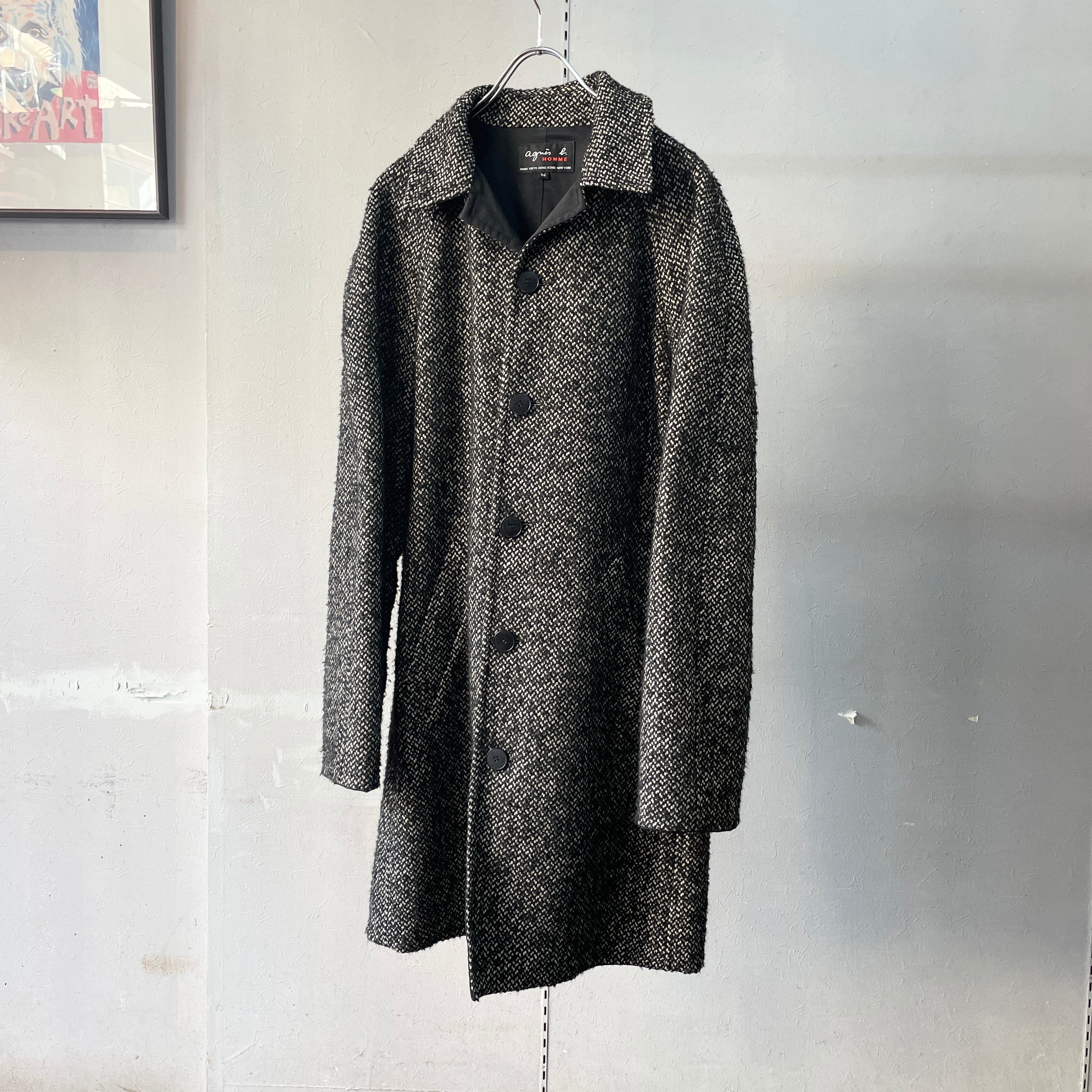 00s アニエスベー リバーシブルチェスターコート ソルト&ペッパー ブラック M程度