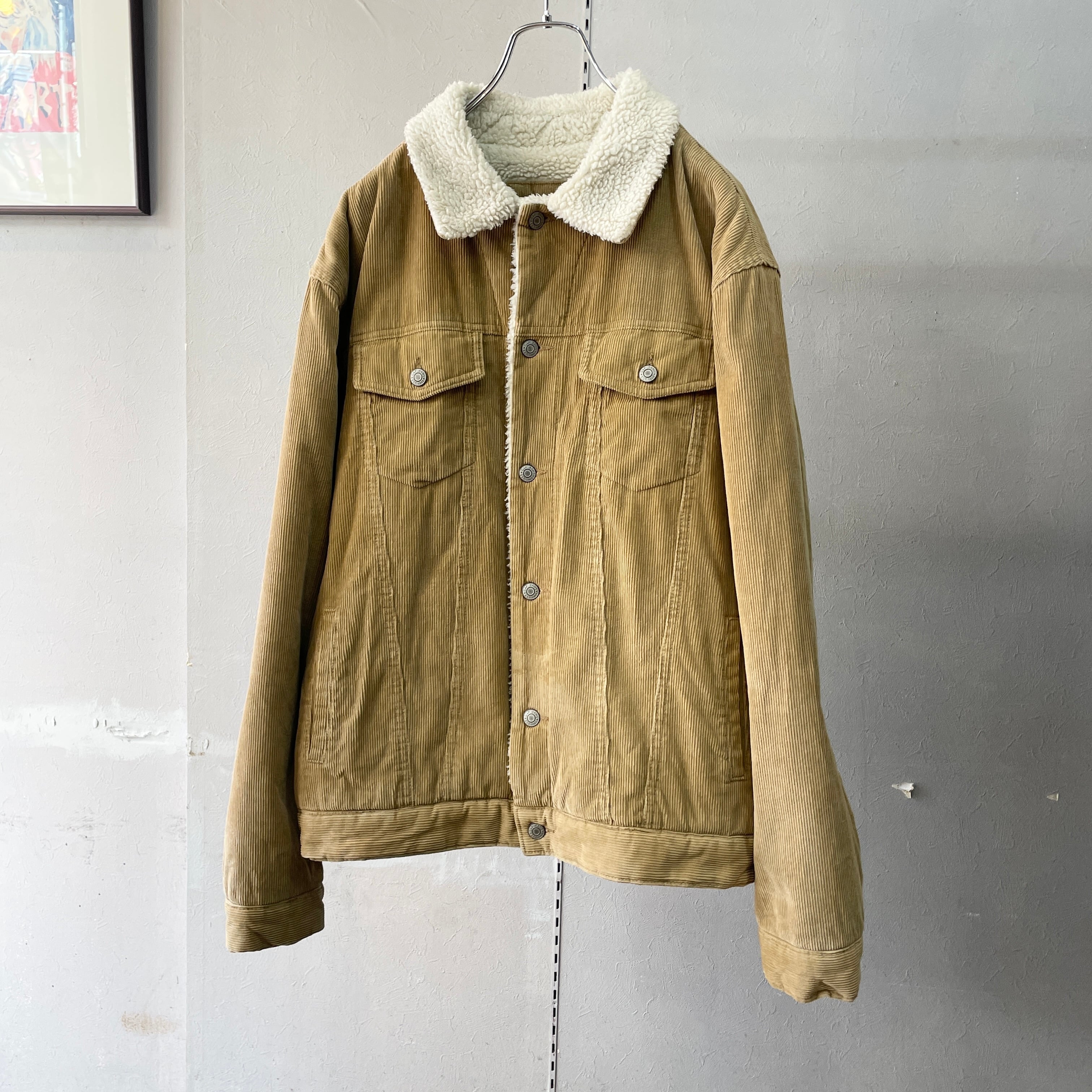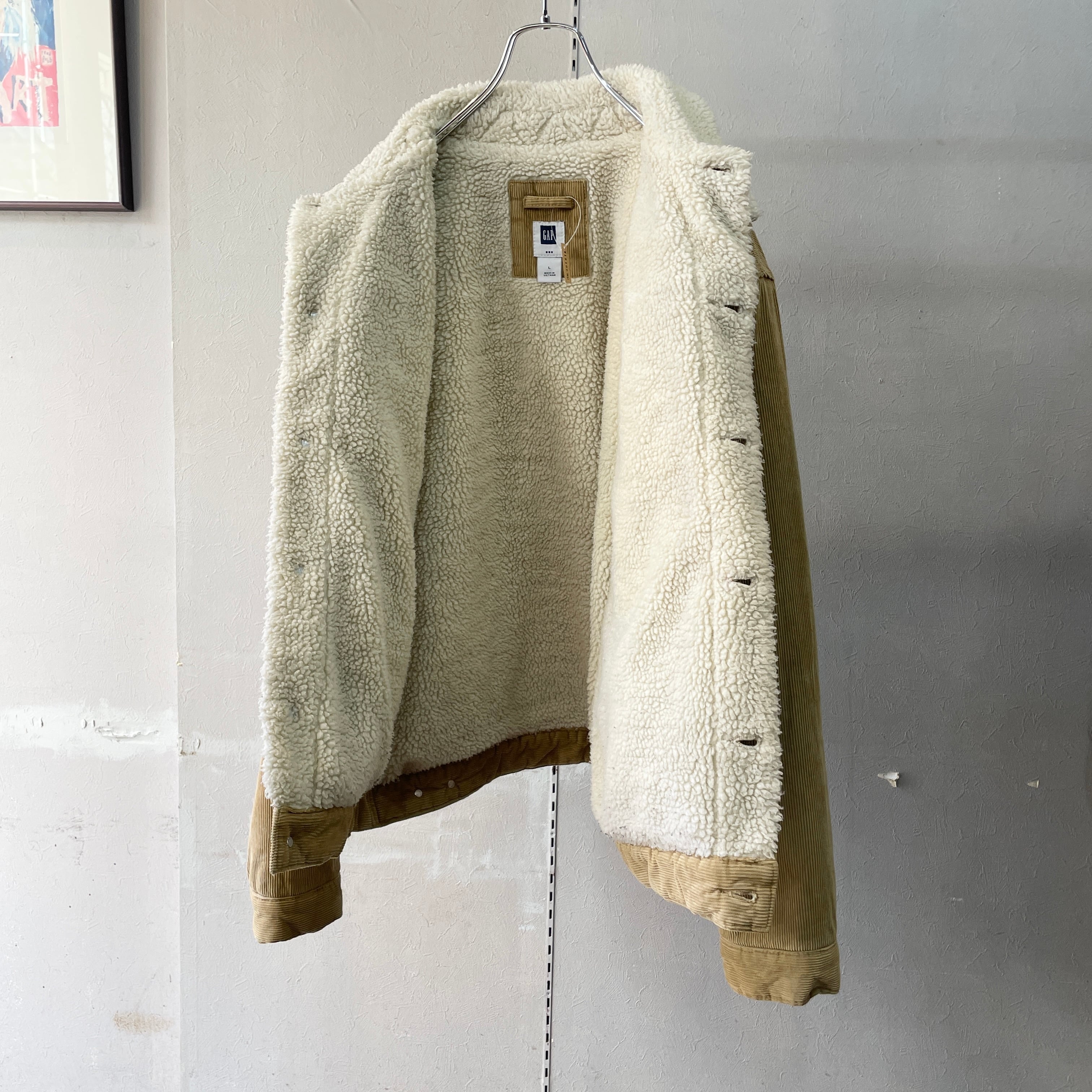 00s ギャップ コーデュロイ×ボアトラッカージャケット ベージュ L