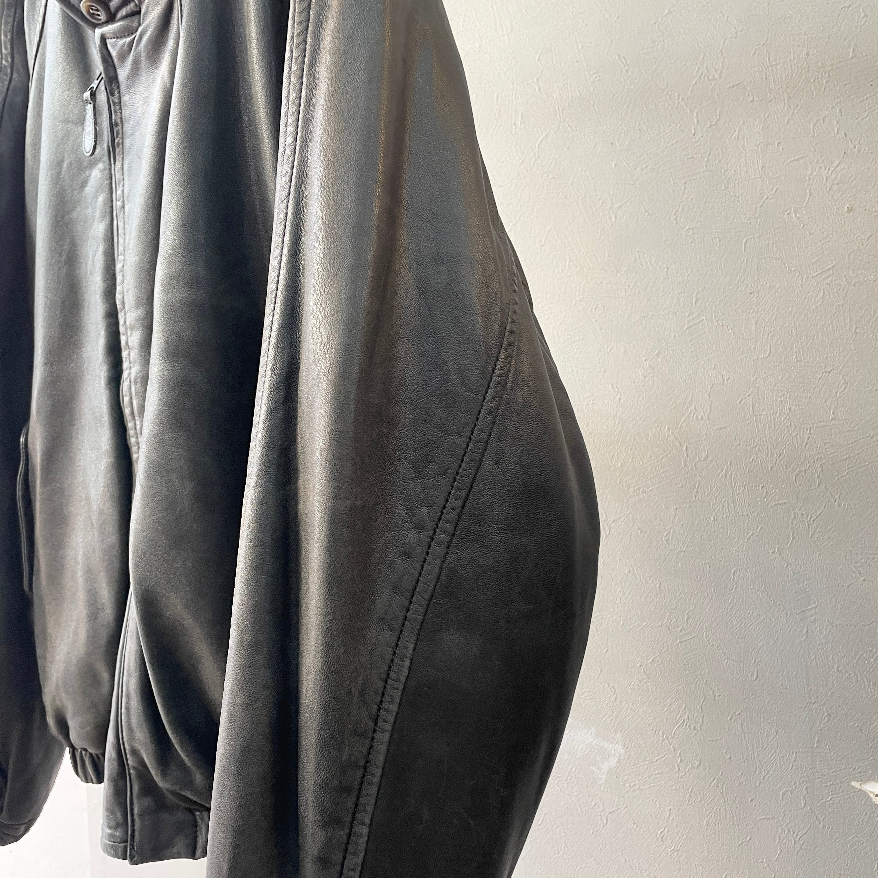 90s レザーハリントンジャケット G9ジャケット ブラック 中綿入り L