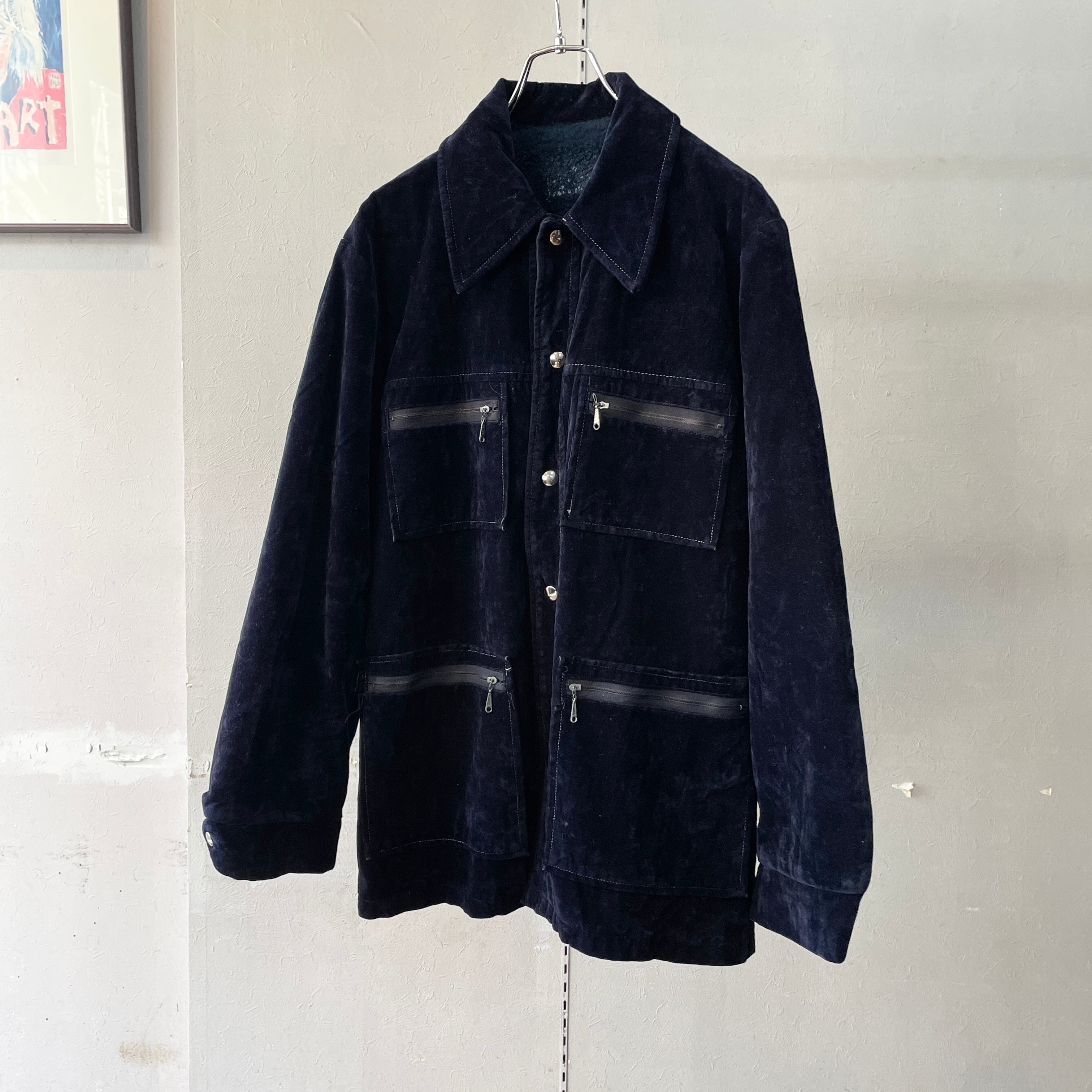 70s j.c.penny ベロアカバーオール ダークネイビー XL
