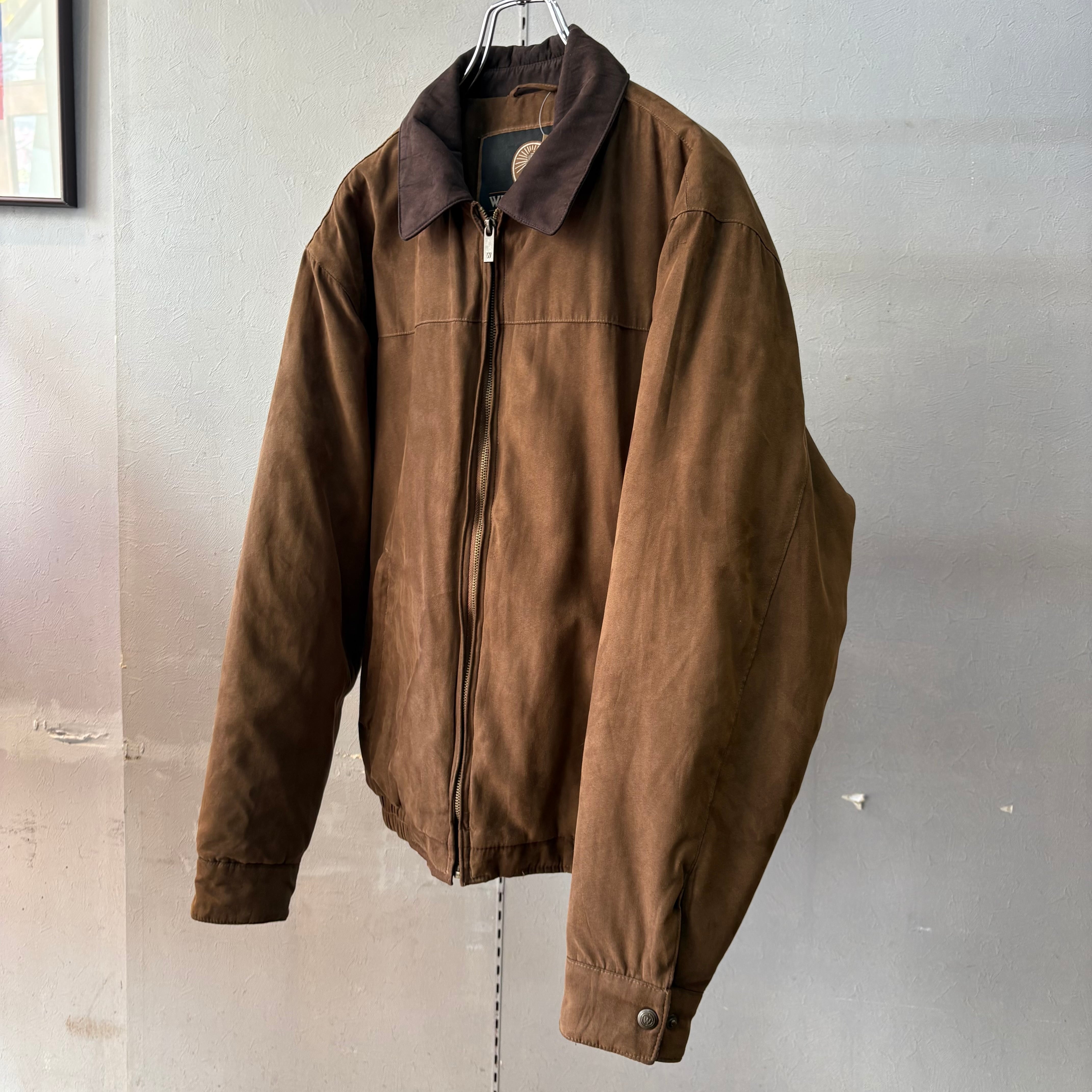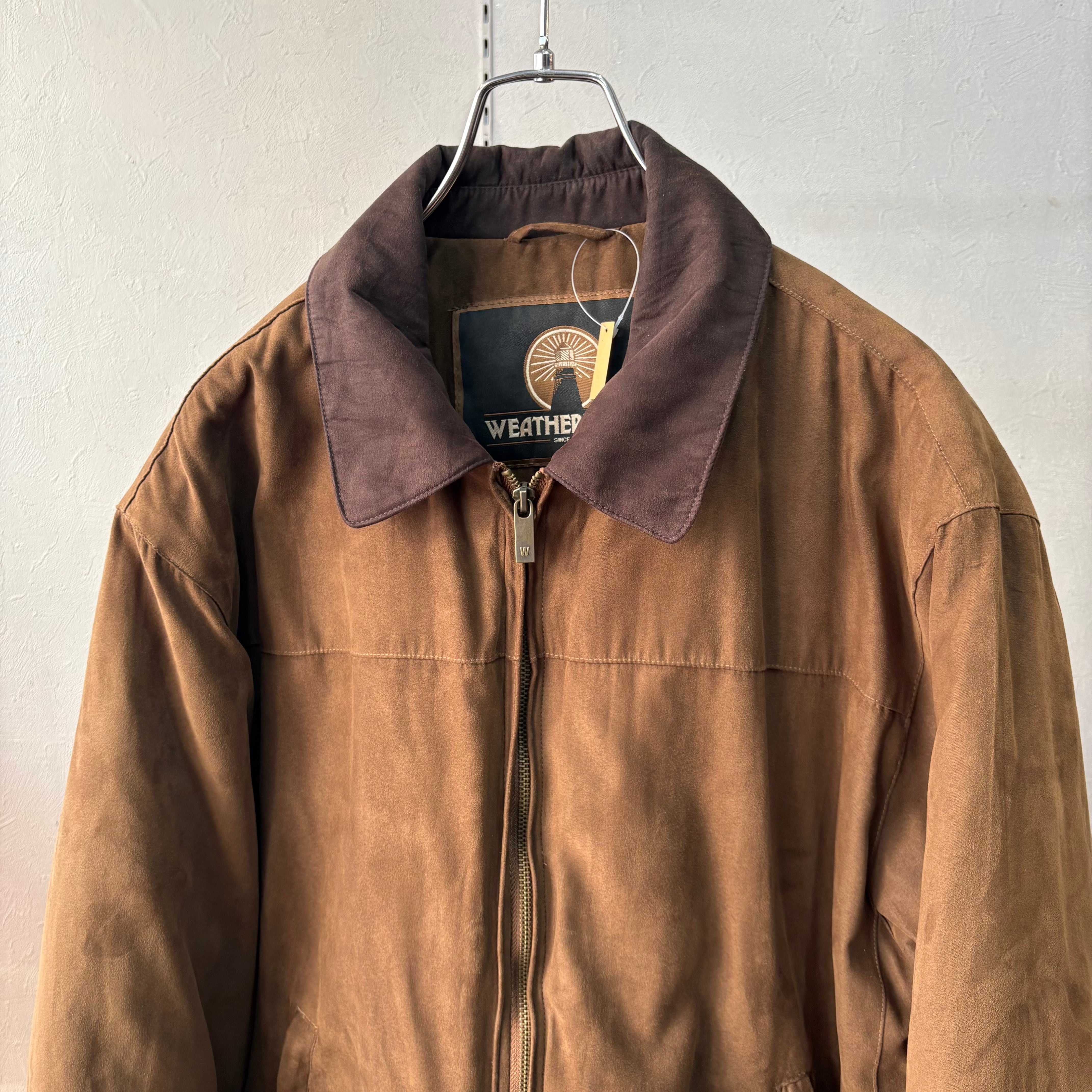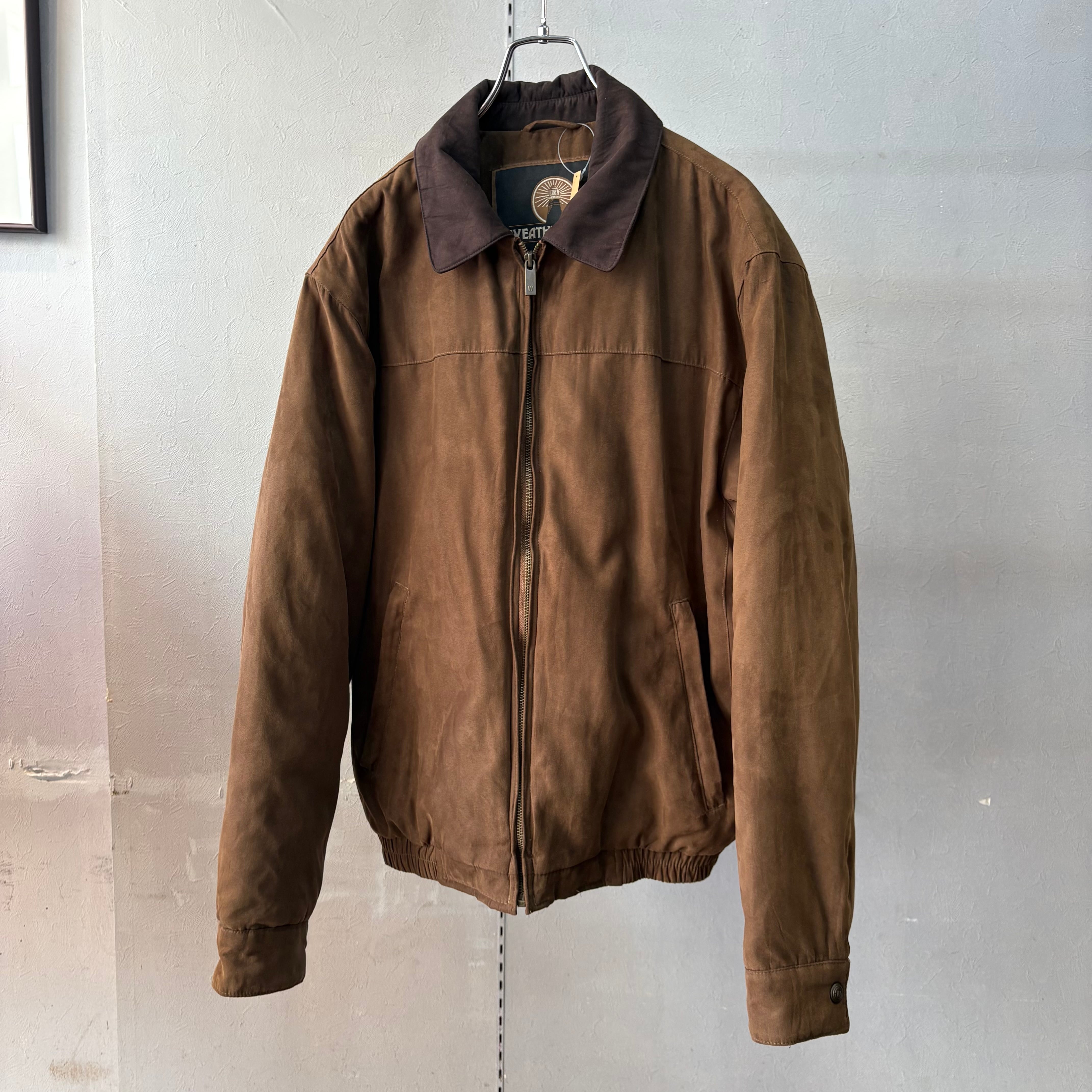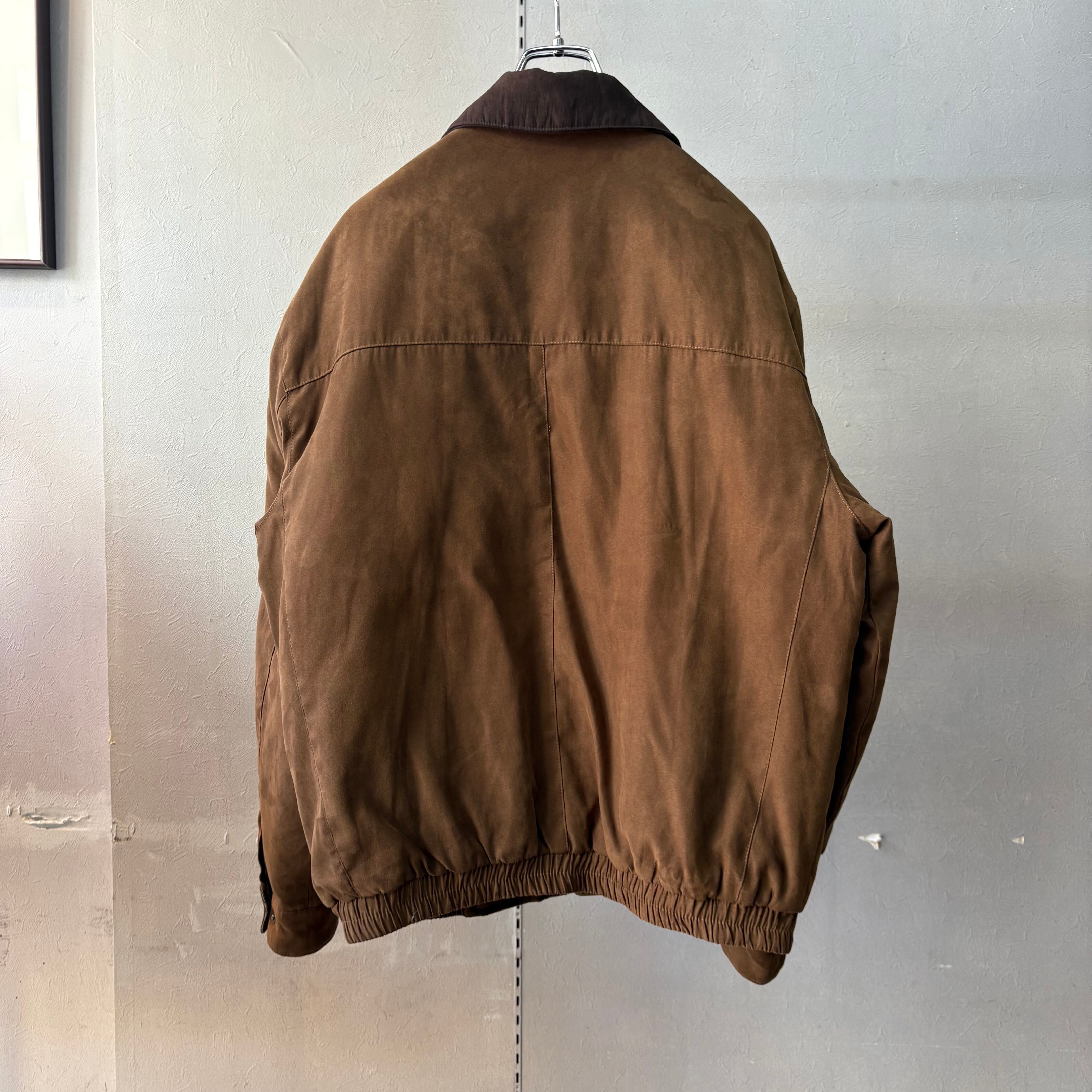 1990s ウェザープルーフ 襟レザー 2トーン 中綿入りブルゾン ブラウン M
