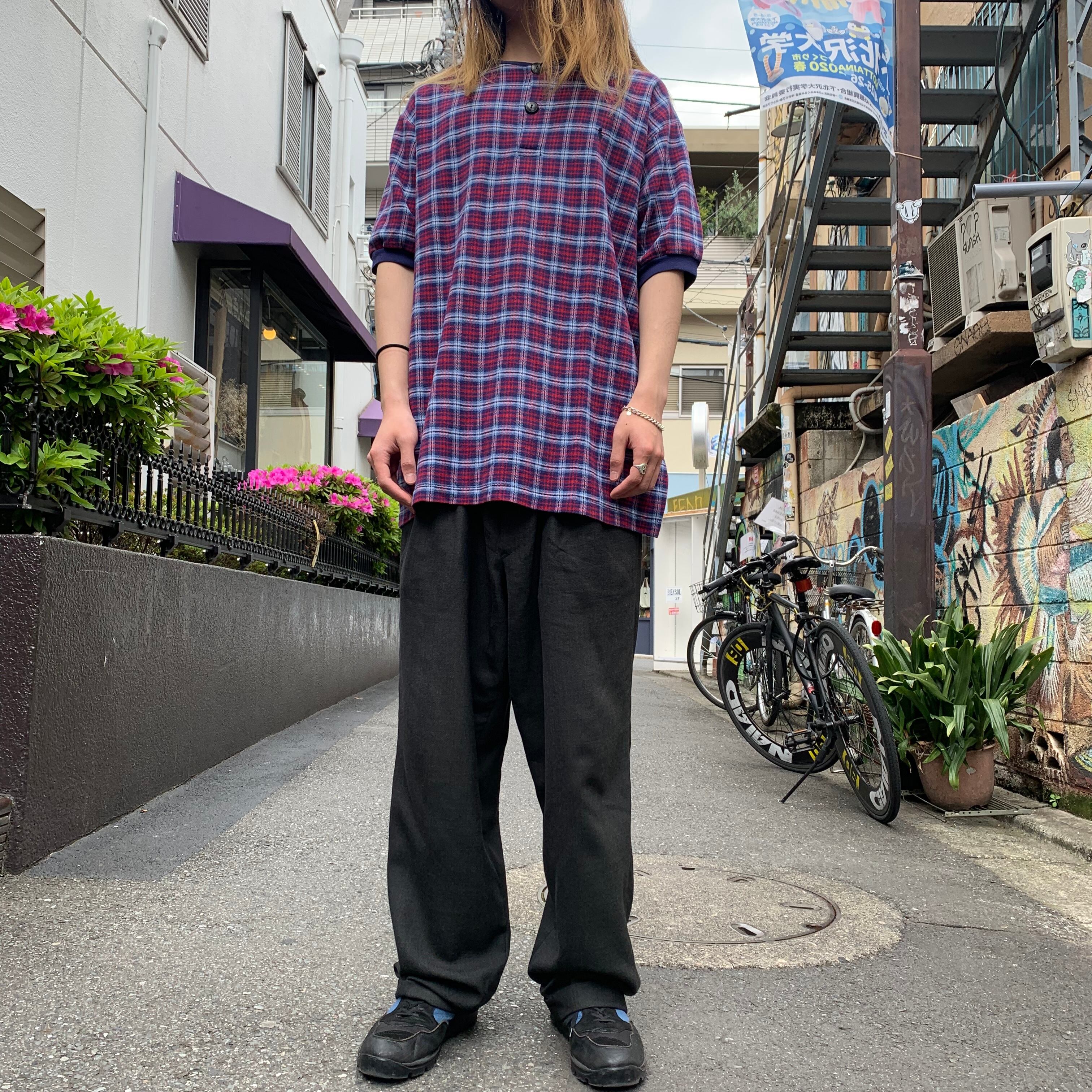 1990s ポロスポーツ タータンチェック ヘンリーネックTシャツ USA製 XL