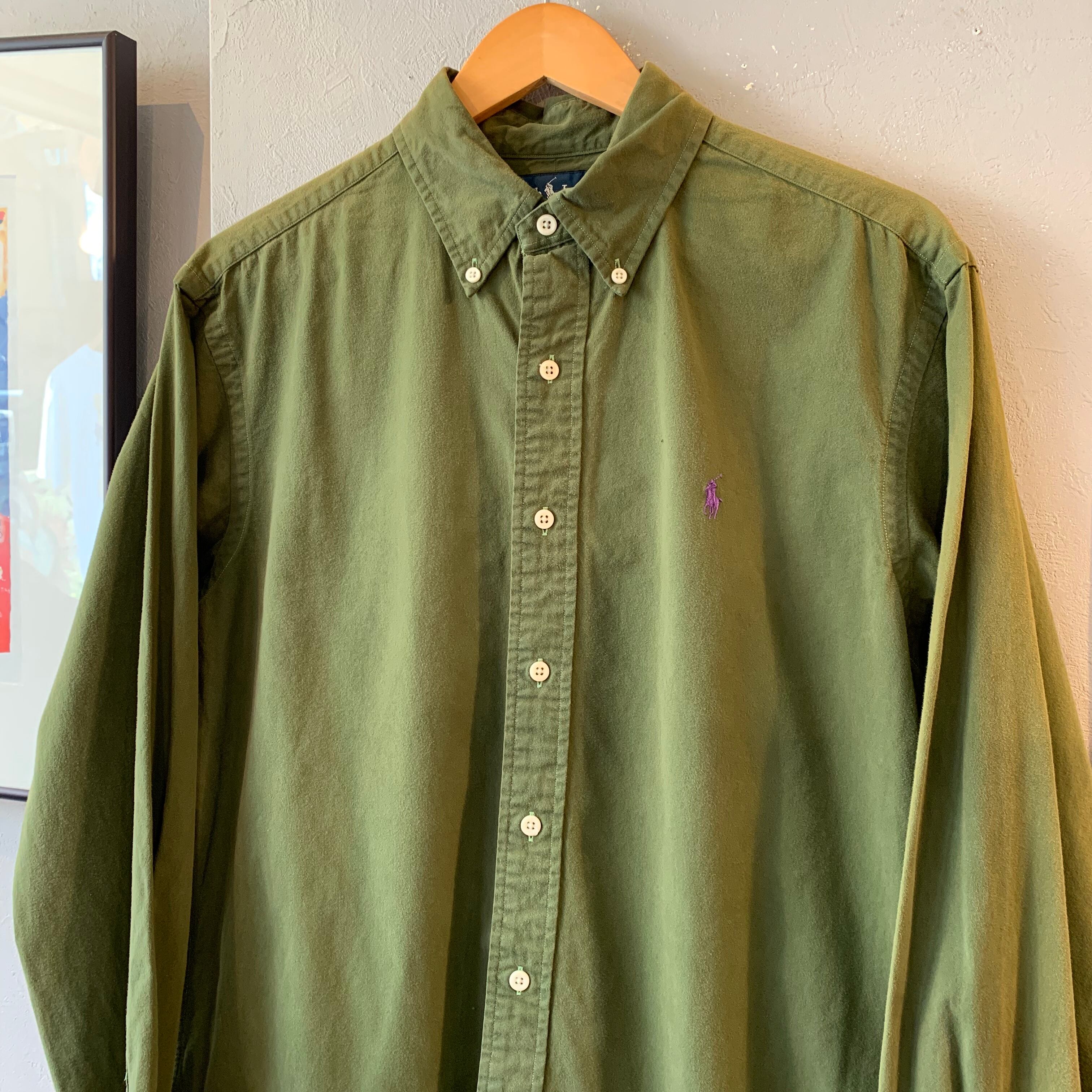 1990s ラルフローレン ワンポイント BDシャツ モスグリーン M